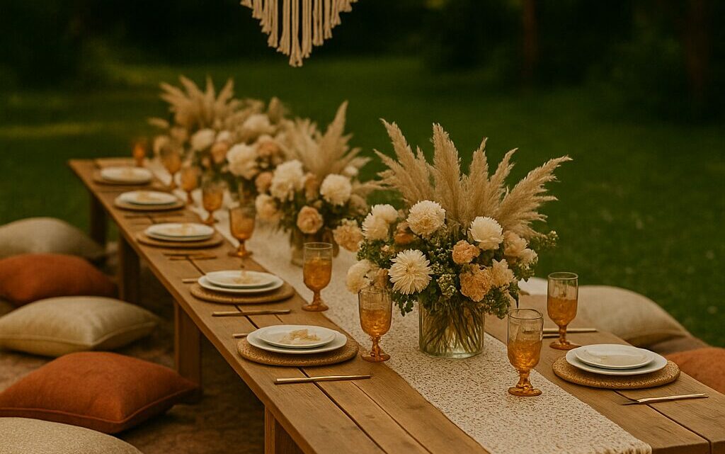 Stół to serce każdego przyjęcia, dlatego warto zadbać o jego oprawę. Kwiaty w wazonach lub dzbankach, świeże zioła w doniczkach, serwetki z motywem roślinnym – to wszystko podkreśli ogrodowy charakter spotkania. Drewniane deski do serwowania, szklane naczynia i naturalna ceramika będą stylowym dodatkiem.