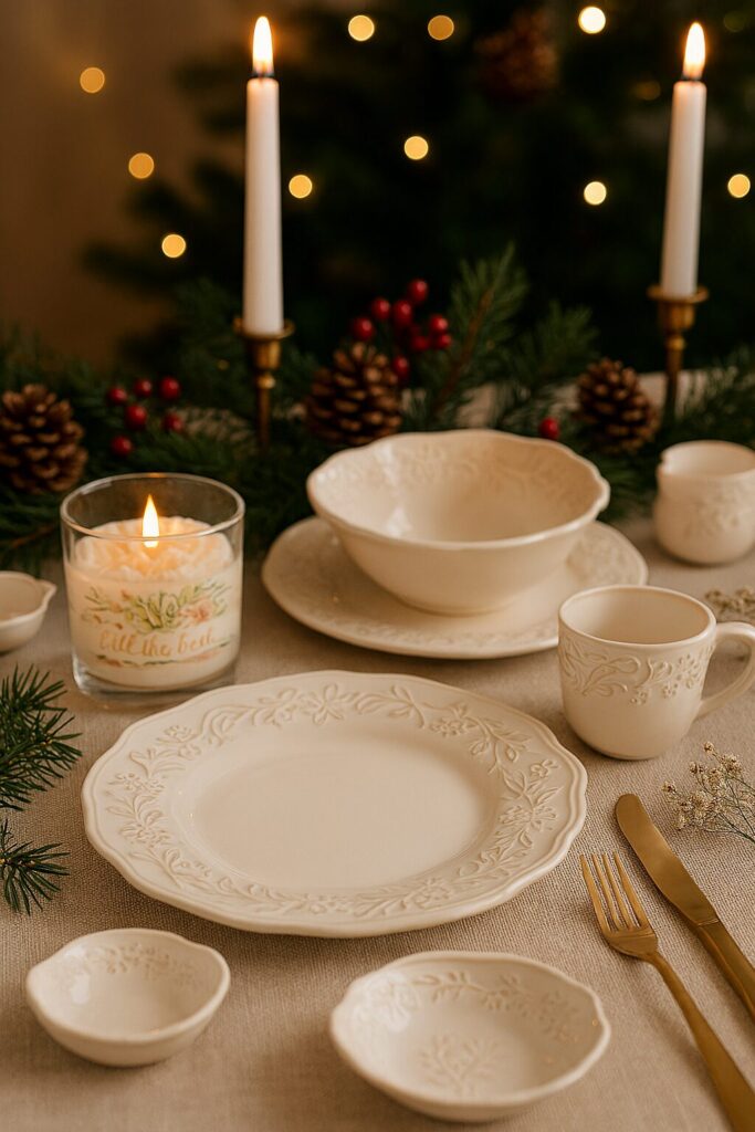 Porcelana to nie tylko naczynie – to nośnik emocji, tradycji i estetyki. Jej delikatne tłoczenia, falowane brzegi i florystyczne motywy wprowadzają subtelność, która nie dominuje, lecz dopełnia całość. Talerze, filiżanki, salaterki – każdy element porcelanowej zastawy może stać się bohaterem świątecznej aranżacji, jeśli zestawimy go z odpowiednimi dodatkami. W świątecznej aranżacji porcelana staje się bohaterką. Jej jasna kolorystyka – biel, krem, lawenda – stanowi idealne tło dla naturalnych dodatków. W połączeniu z lnianymi serwetkami, złotymi sztućcami i zielenią świerku tworzy kompozycję, która zachwyca, ale nie przytłacza.