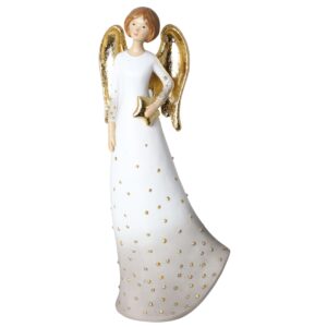 Anioł metalowy w białej sukience to delikatna i elegancka dekoracja, która doskonale sprawdzi się w różnych wnętrzach i okolicznościach. Biały anioł symbolizuje czystość, niewinność i spokój, dlatego może być używany jako ozdoba zarówno w czasie świąt, jak i przez cały rok.