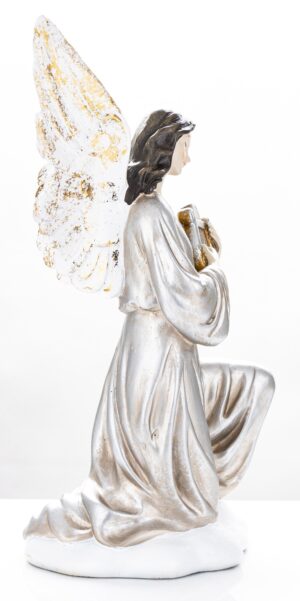 Anioły często kojarzone są z motywami duchowymi i symbolicznymi. Anioł stojący w kolorach czarnym i złotym może być umieszczony na stole, półce, parapecie, kominku lub jako centralna ozdoba na stole wigilijnym. Jego kolorystyka nadaje mu elegancki i stylowy charakter.