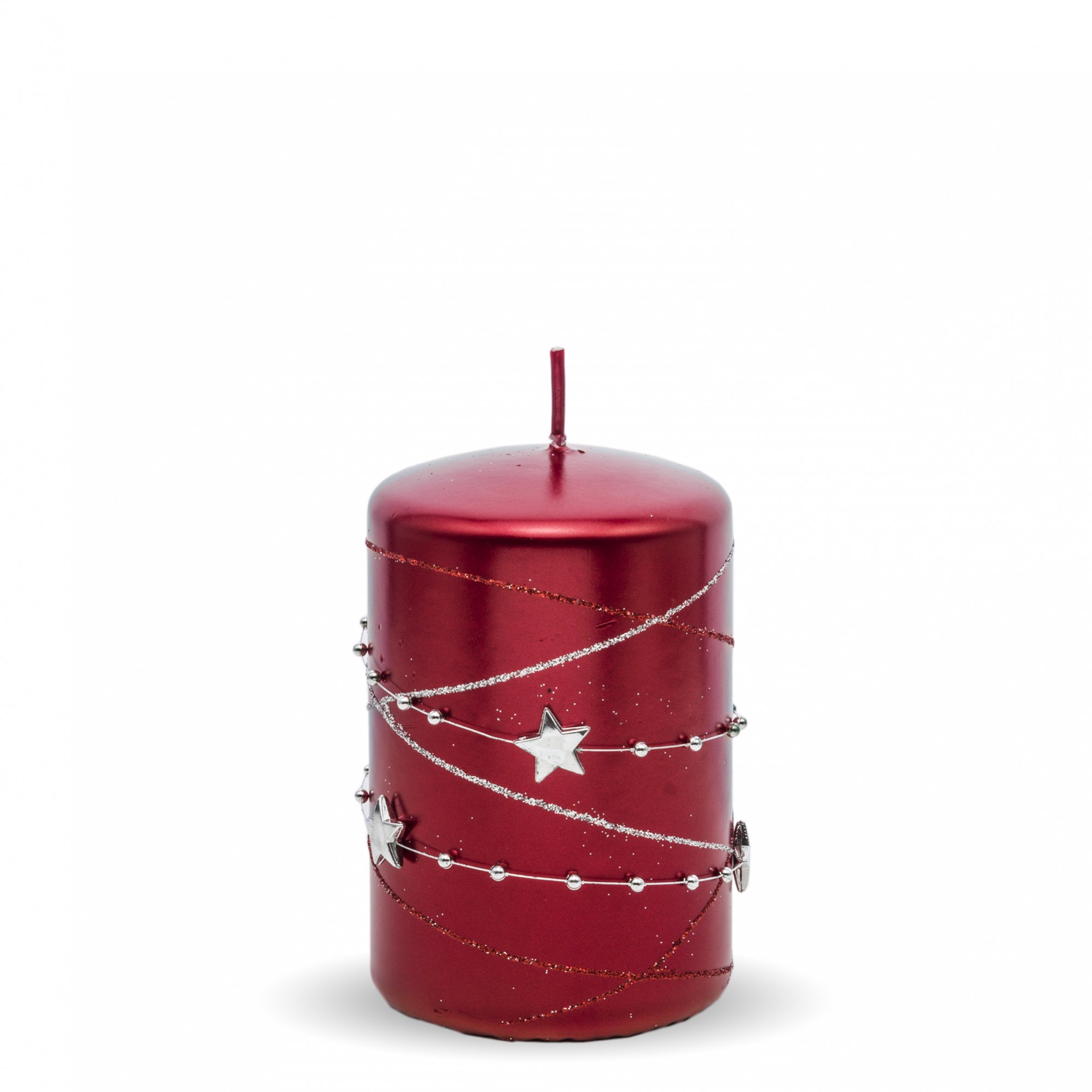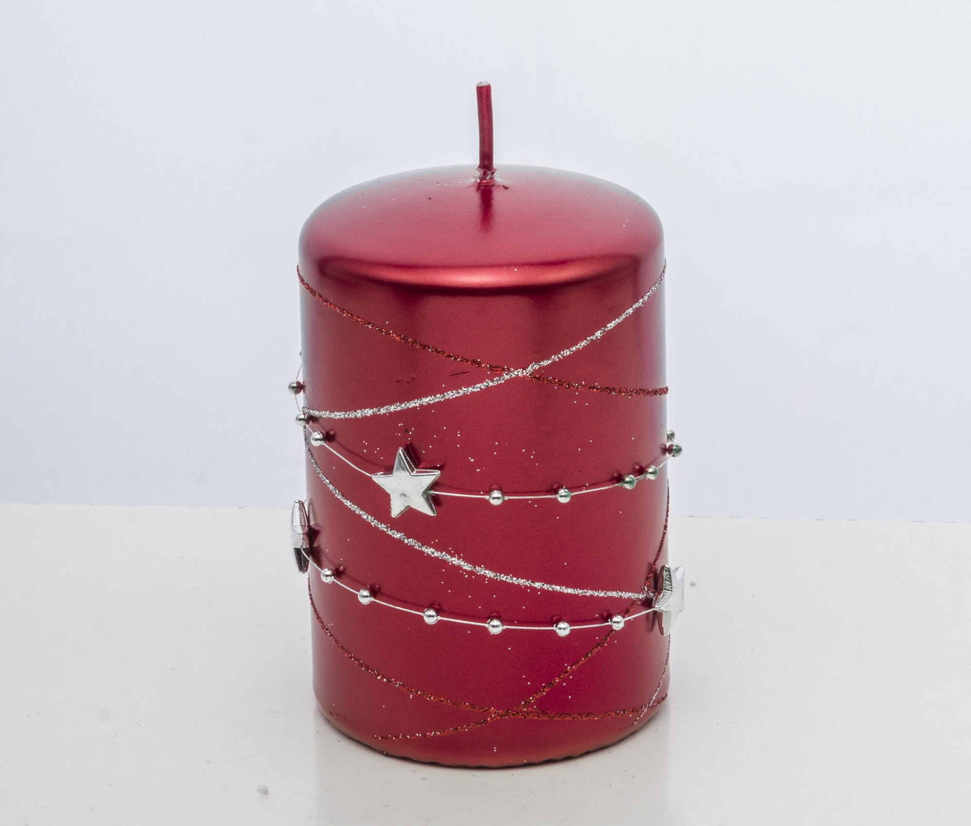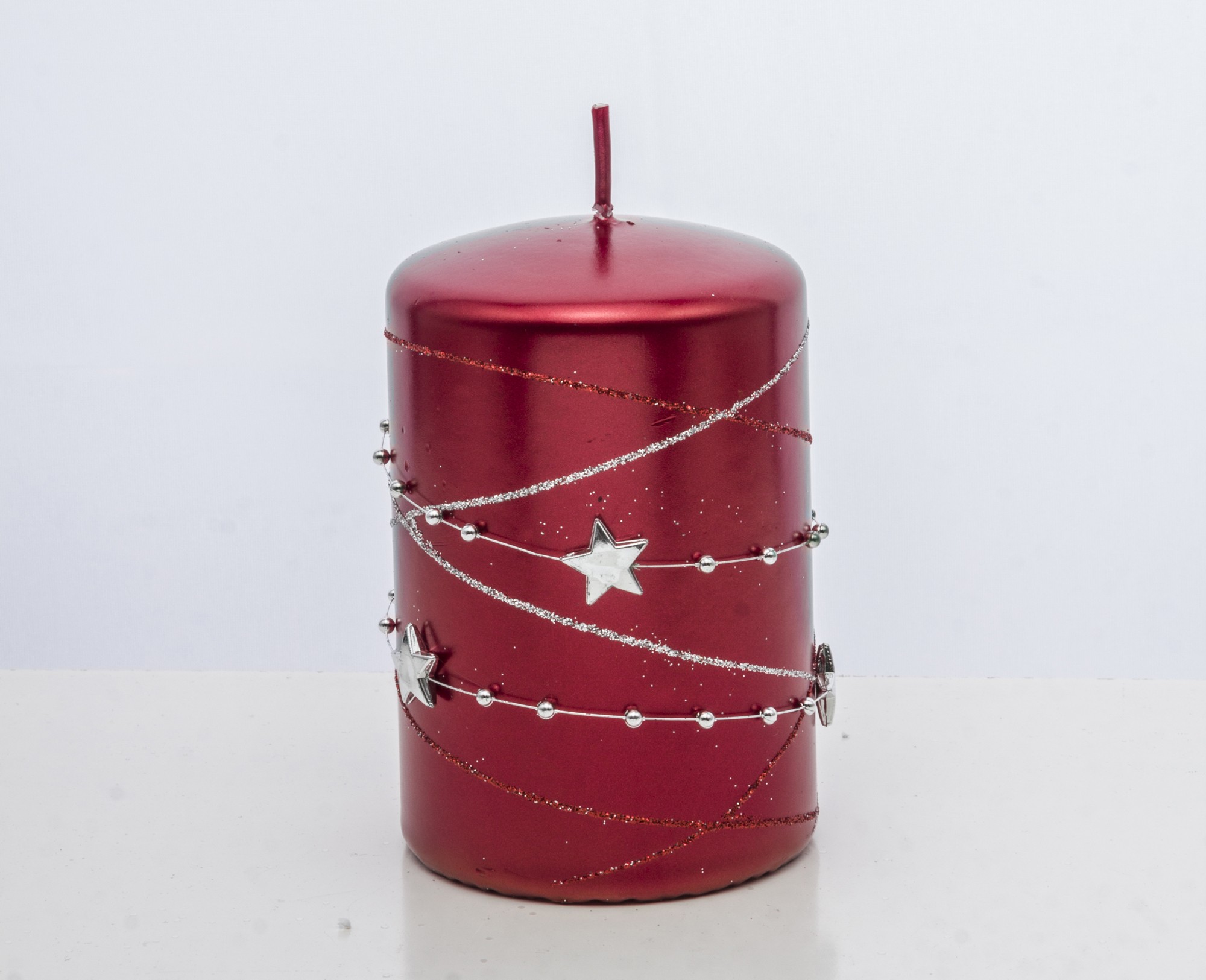 Świąteczna, czerwona świeczka KENNA o eleganckim wykończeniu doskonale podkreśla bożonarodzeniową atmosferę i dodaje wnętrzom przytulnego blasku.