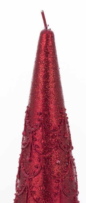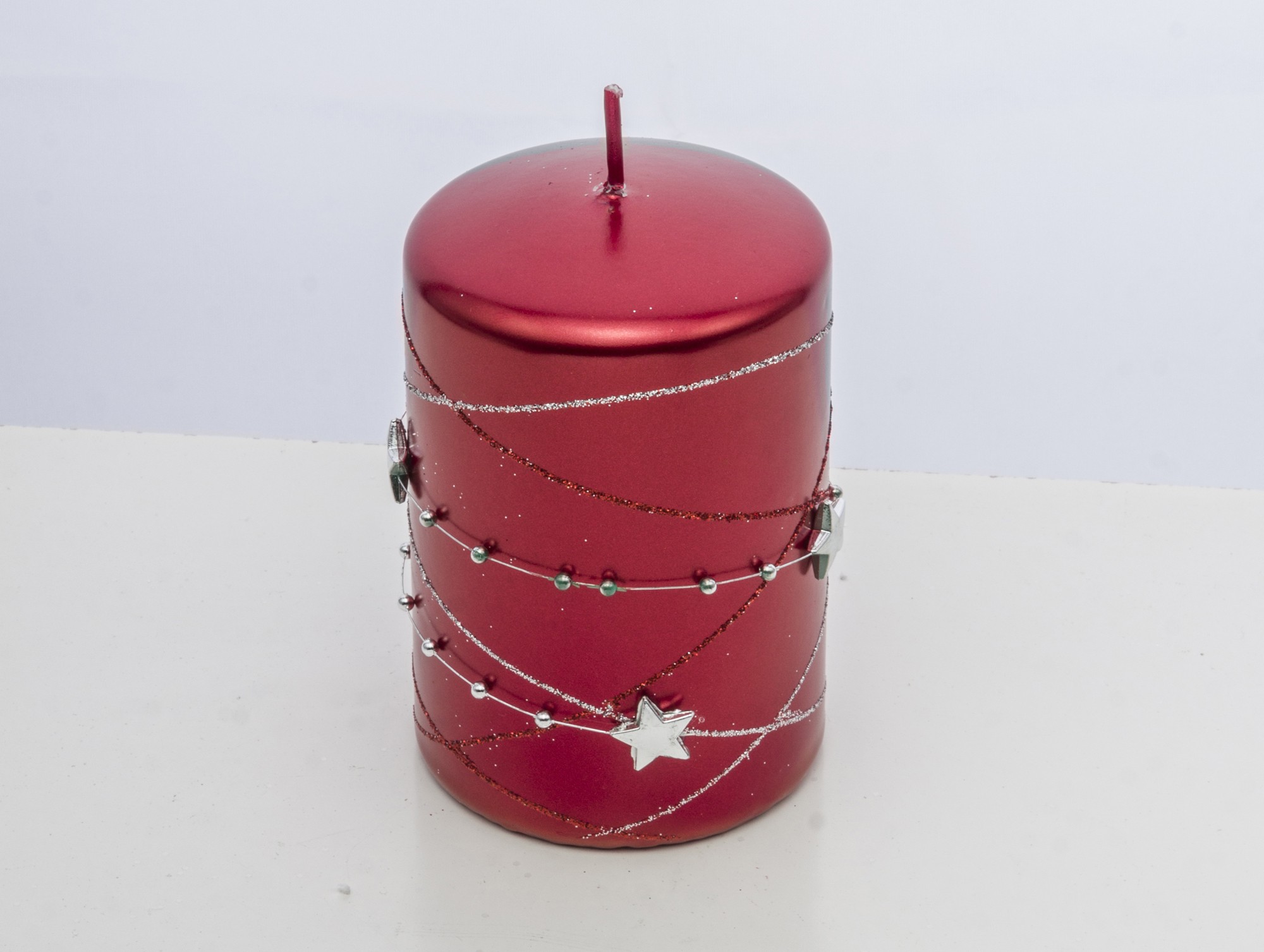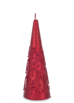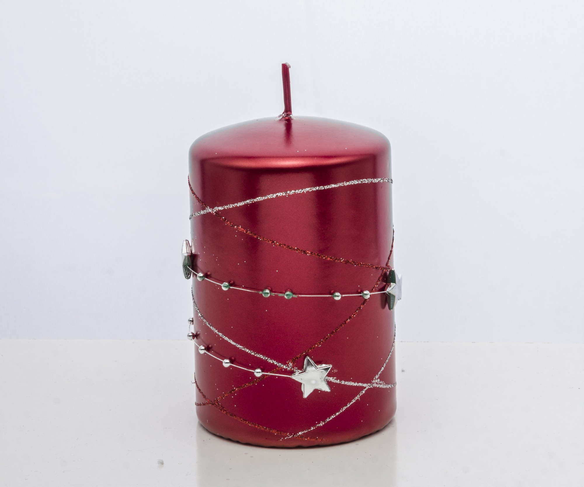 Świąteczna, czerwona świeczka KENNA o eleganckim wykończeniu doskonale podkreśla bożonarodzeniową atmosferę i dodaje wnętrzom przytulnego blasku.