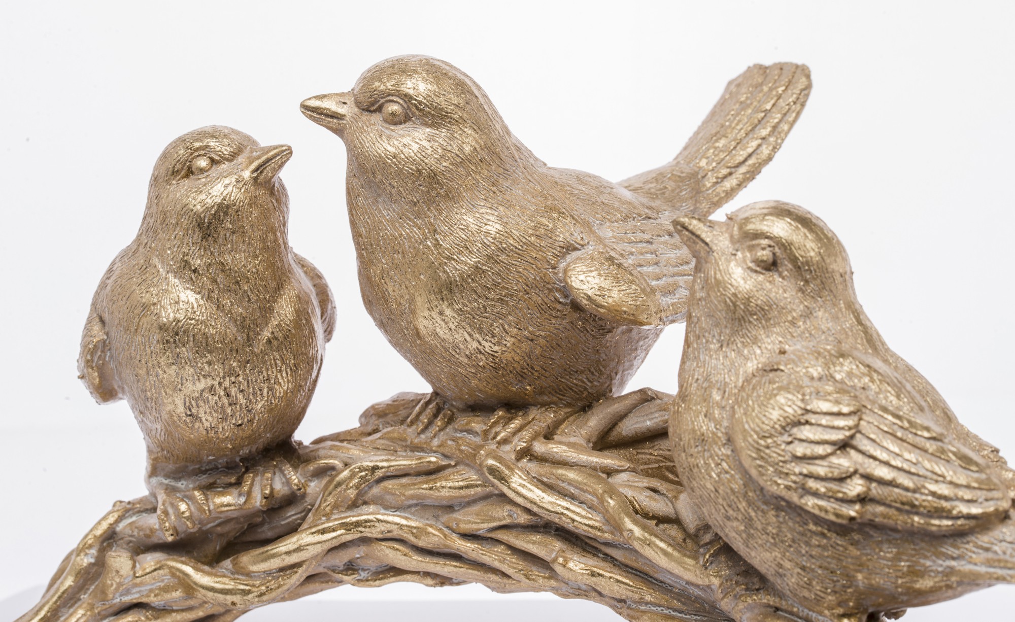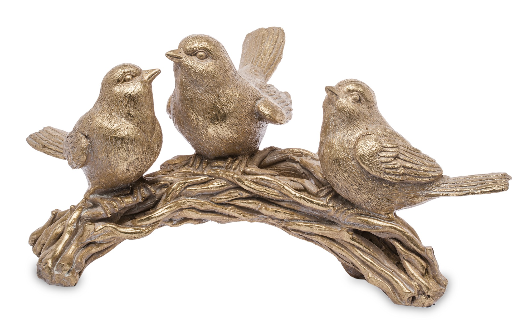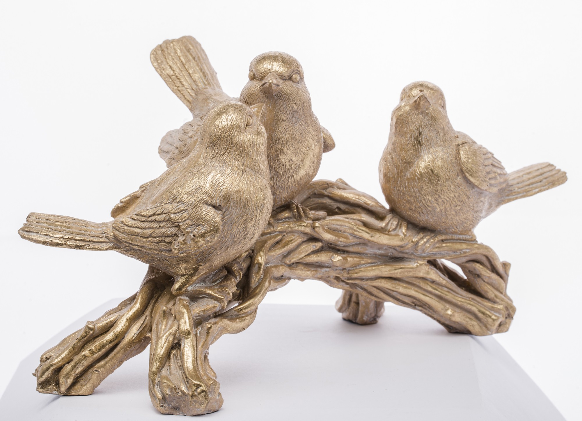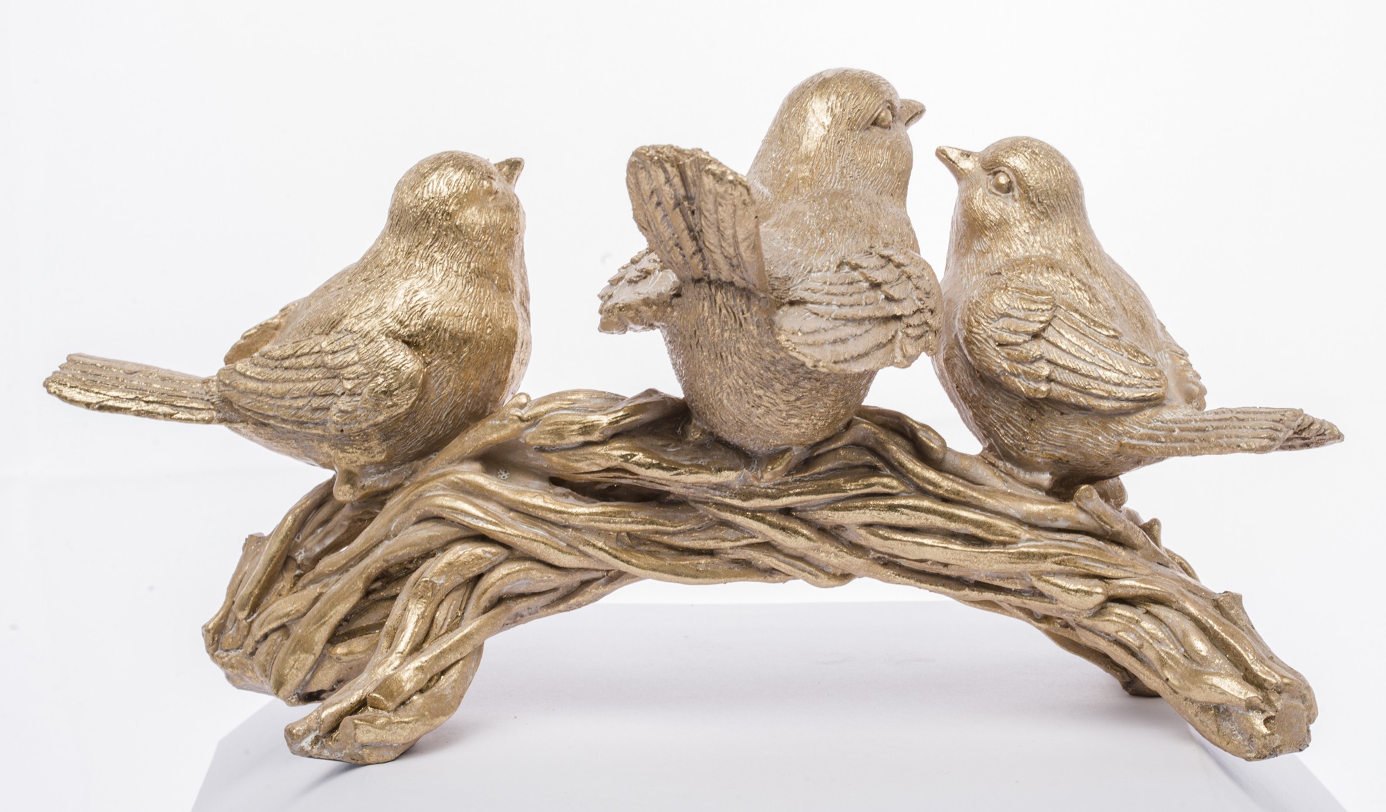 Śliczna figurka trzech złotych ptaszków na gałęzi to stylowa ozdoba, która doda uroku każdemu wnętrzu. Idealna jako dekoracja do salonu, sypialni lub biura.