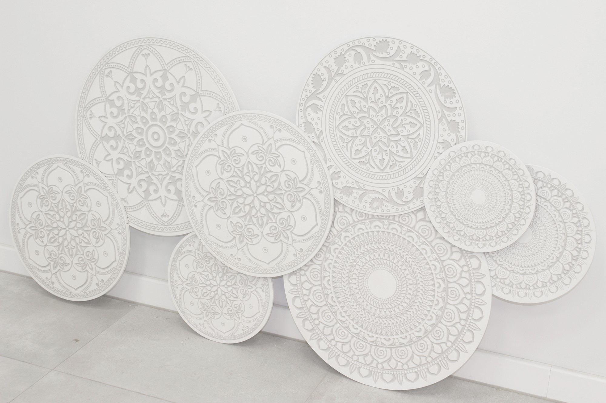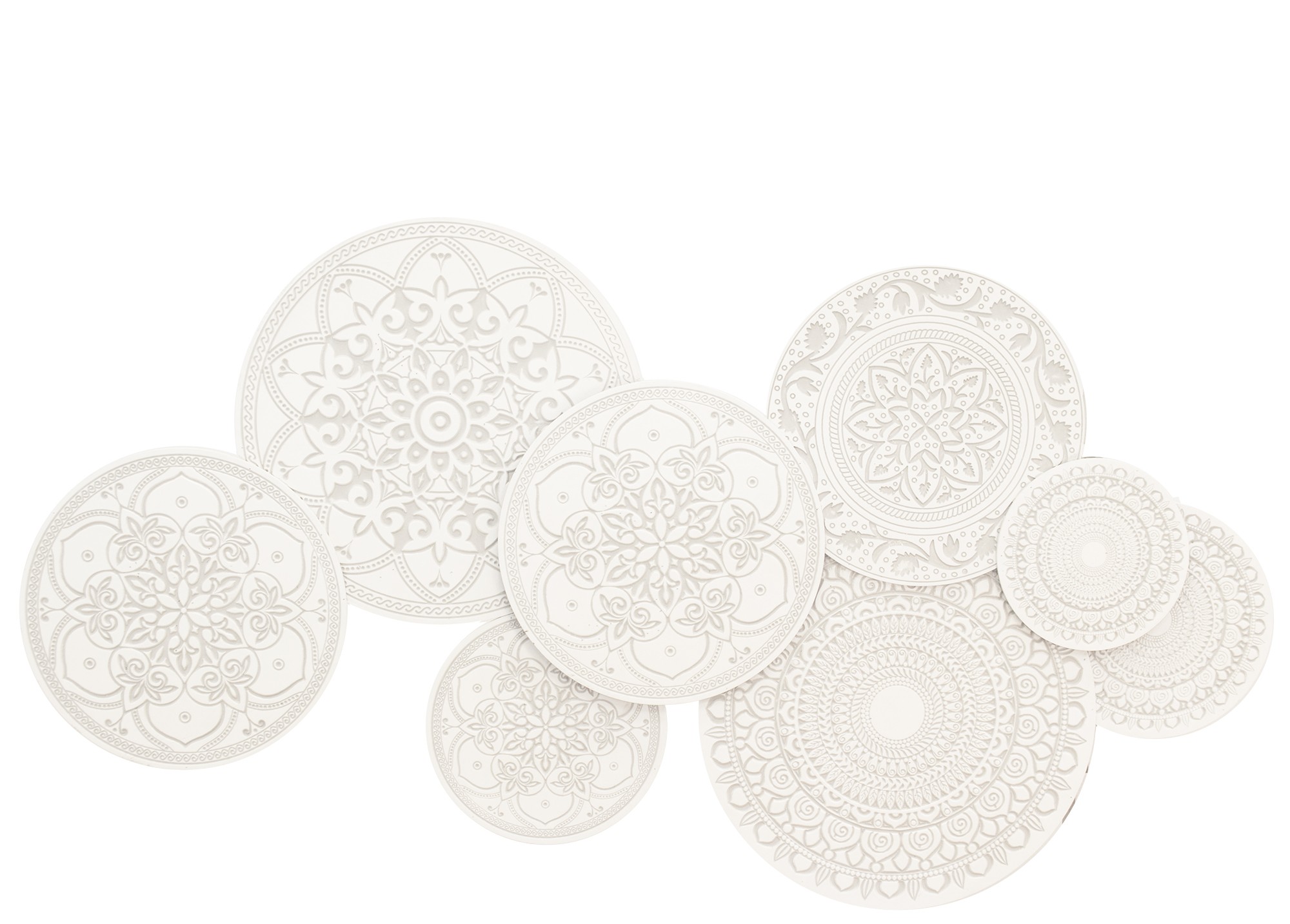 Odkryj potencjał aranżacyjny tkwiący w zestawie dekoracji ściennych CIRCLE. Te urocze, okrągłe panele to coś więcej niż ozdoby – to sposób na wprowadzenie do Twojego domu harmonii, spokoju i artystycznego wyrazu. Każdy panel z zestawu charakteryzuje się precyzyjnie wyciętym, ażurowym wzorem, który przypomina delikatną koronkę lub misterną mandalę. Wykonane z MDF i wykończone w uniwersalnym, białym kolorze z subtelnymi przetarciami (efekt shabby chic), panele te doskonale komponują się z naturalnymi materiałami i jasnymi wnętrzami. Zróżnicowane średnice paneli tworzą dynamiczną i interesującą kompozycję na ścianie.
