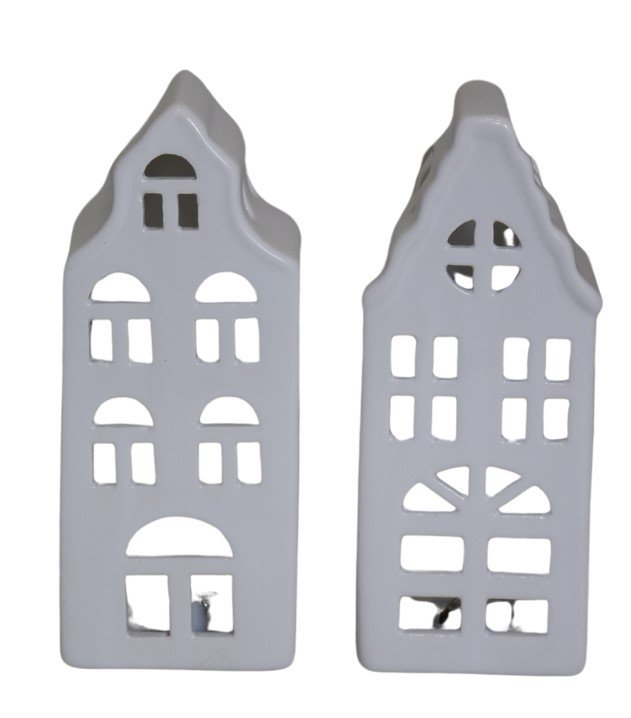 Stwórz wyjątkowy nastrój w swoim domu z zestawem dwóch białych ceramicznych domków led KLADE. Te minimalistyczne dekoracje zachwycają swoją prostą formą, delikatnymi wycięciami w kształcie okien i drzwi oraz ciepłym światłem LED, które wypełnia wnętrze domków, tworząc relaksującą atmosferę.