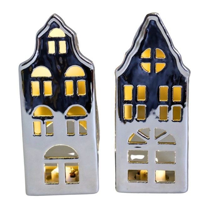 Te srebrne domki LED to idealna dekoracja na wieczory, a także oryginalny pomysł na prezent. Ustaw je na kominku, parapecie lub stoliku kawowym, aby wprowadzić do swojego domu niepowtarzalny urok i elegancję!