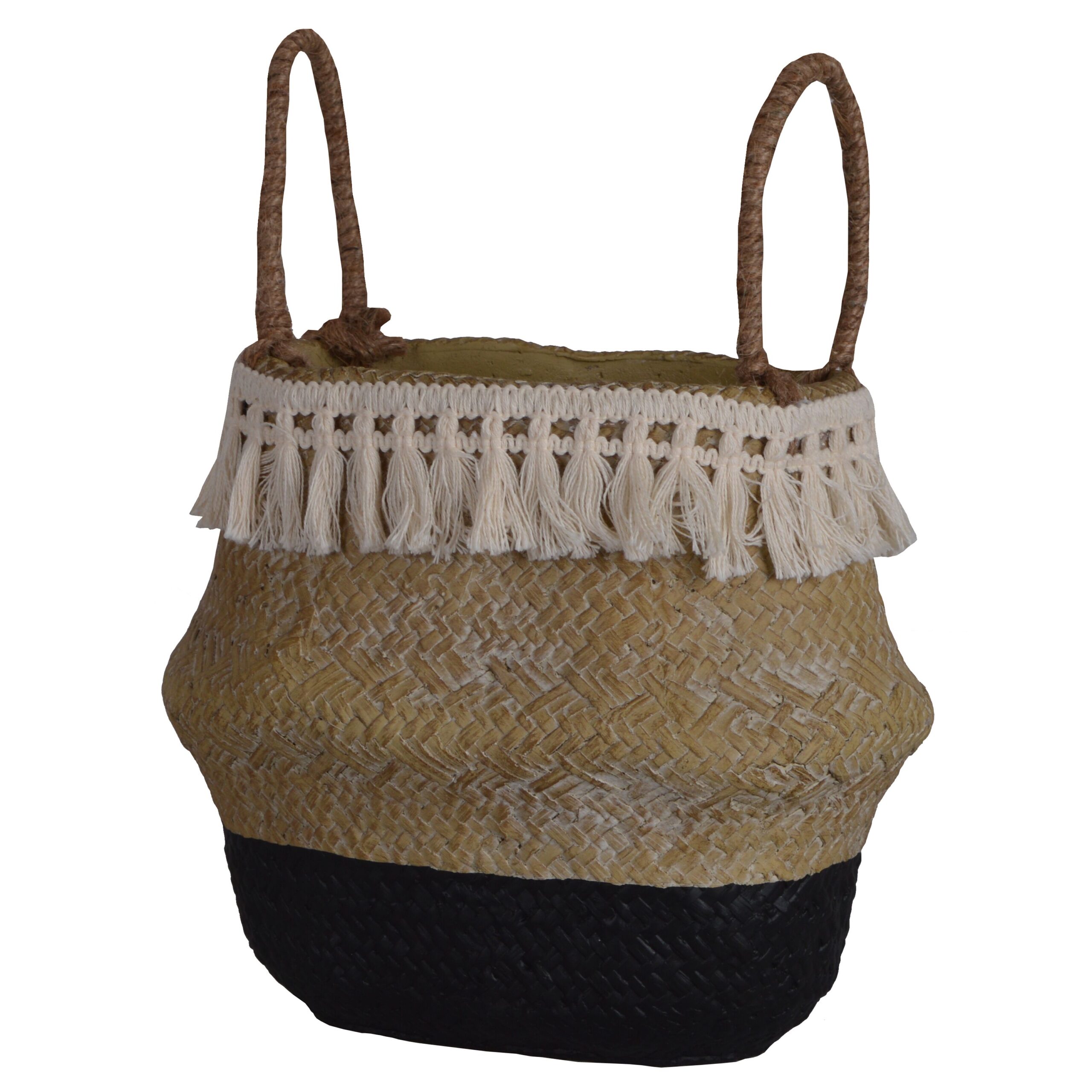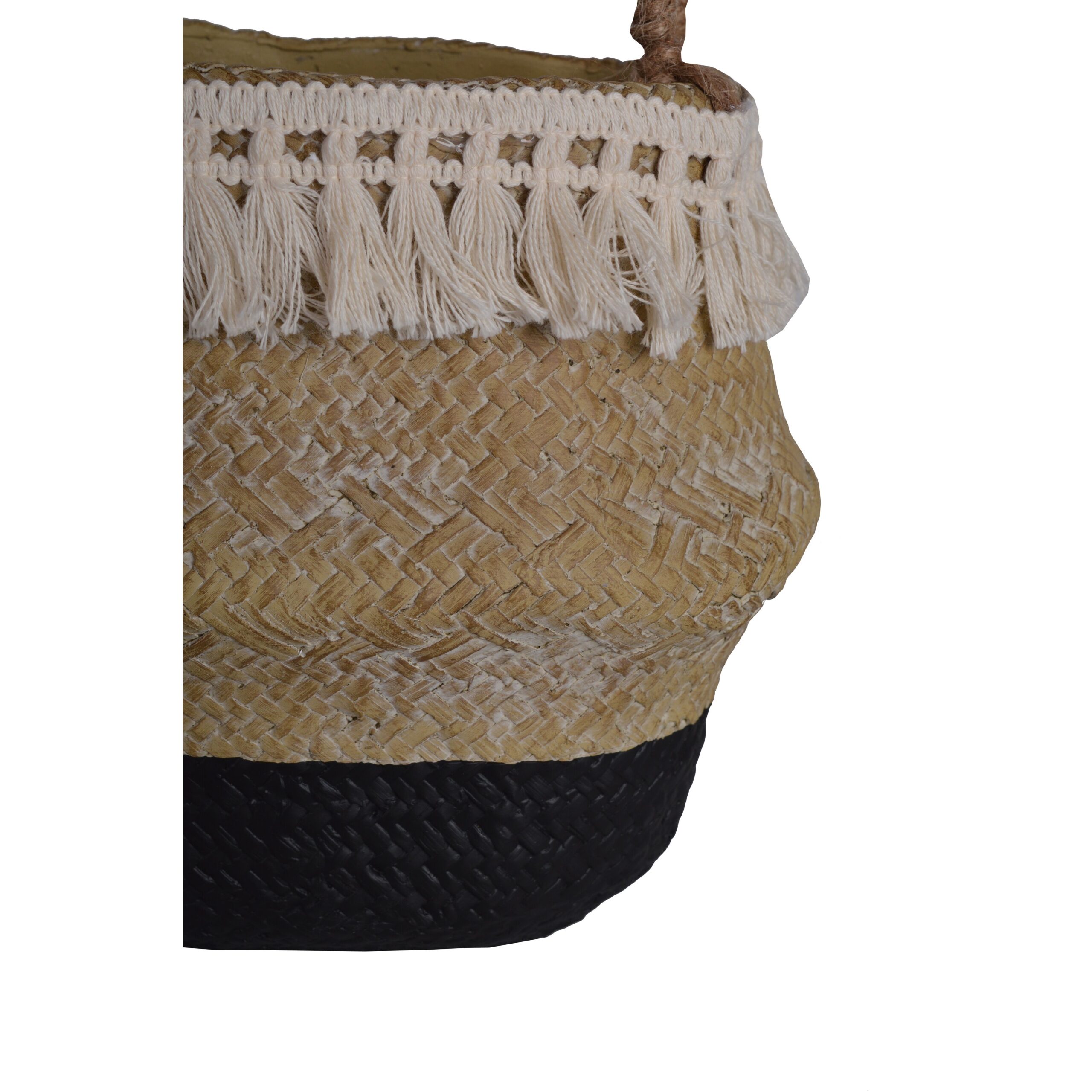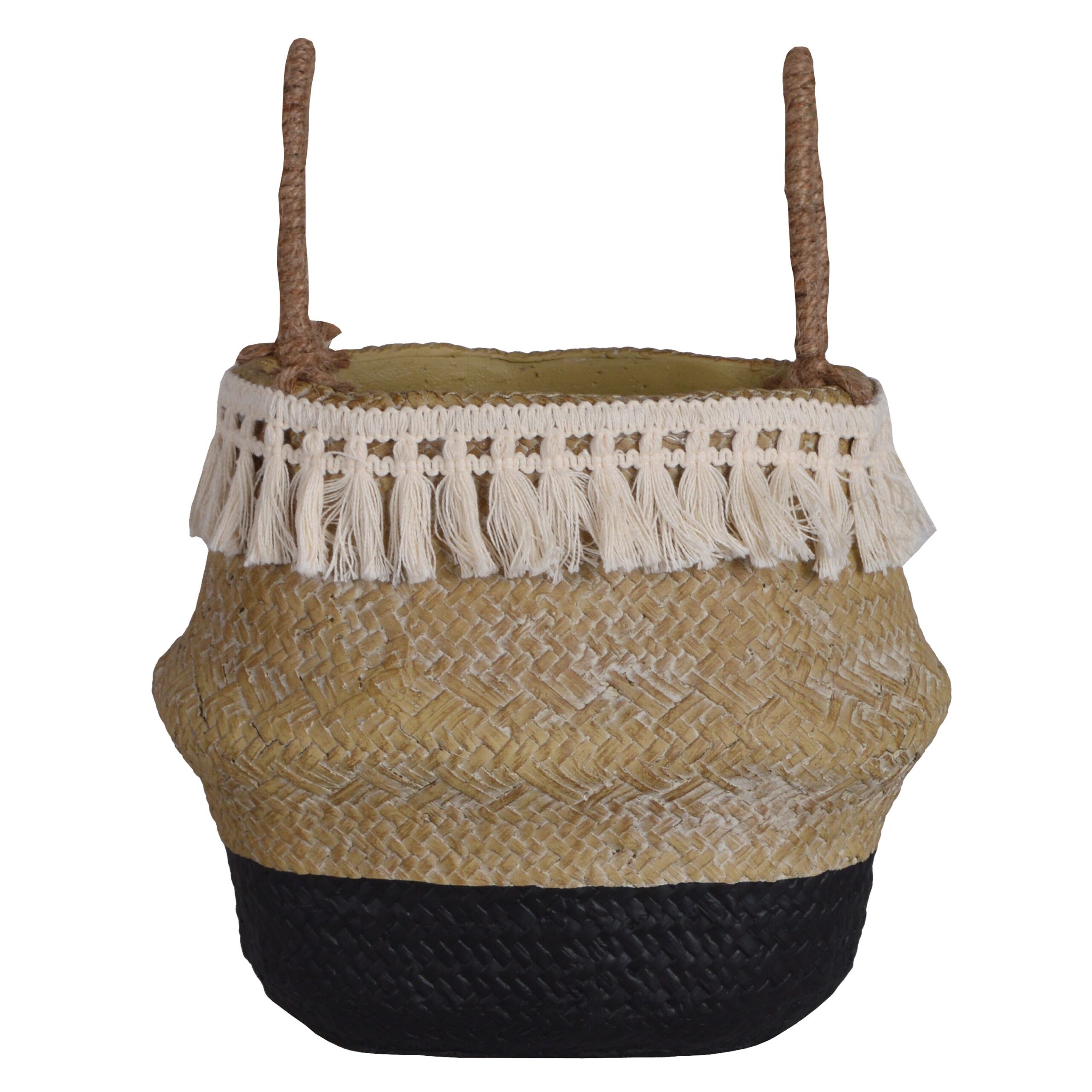 Doniczka ceramiczna w stylu boho o średnich rozmiarach i kolorach beżu i czerni to urzekający element dekoracyjny, który doskonale wpasowuje się w różnorodne aranżacje wnętrz.