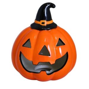 Ceramiczna dynia LED pomarańczowo-czarna to idealna ozdoba na jesienne dni, wprowadzająca przytulny klimat i doskonała zarówno na Halloween, jak i do całorocznych aranżacji z jesiennym akcentem. Wykonana z trwałej ceramiki, zachwyca klasycznym kształtem dyni oraz doskonale dobraną kolorystyką – dominujący pomarańcz przełamany elegancką czernią dodaje charakteru każdemu pomieszczeniu. Wbudowane oświetlenie LED subtelnie rozświetla przestrzeń, tworząc ciepły, przyjemny blask, który świetnie sprawdzi się w wieczornych aranżacjach świetlnych.