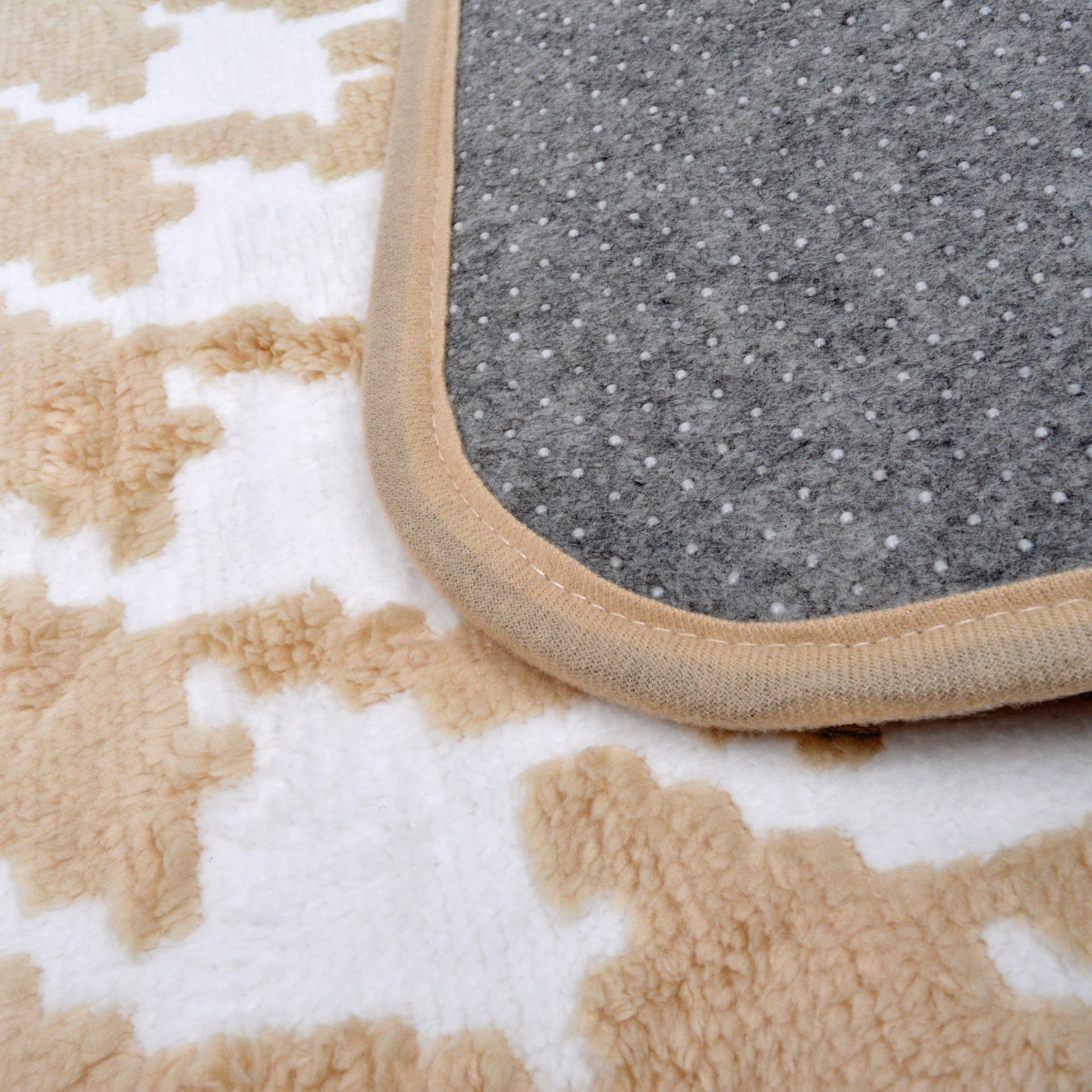 Zastosowane obszycie tasiemką podkreśla staranność wykonania i dbałość o detale. Dzięki silikonowym kropeczkom umieszczonym na spodzie dywanika, zyskujemy pewność, że dywanik pozostanie na swoim miejscu, nawet na gładkich powierzchniach podłogowych. Jest to szczególnie istotne w codziennym użytkowaniu, gdzie stabilność dywanika przekłada się na bezpieczeństwo.
