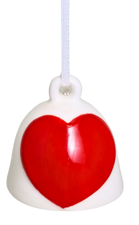 Dzwoneczek ceramiczny biały z czerwonym sercem display AMOUR