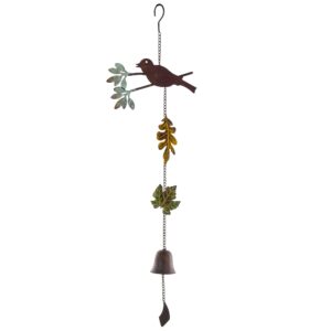 Metalowa dekoracja wisząca z centralnym elementem w postaci ptaka siedzącego na gałązce to wyjątkowy dodatek do każdego ogrodu lub balkonu. Ptakowi towarzyszy dzwonek, który delikatnie pobrzękuje na wietrze. Ta subtelna ozdoba dodaje uroku i przyciąga wzrok. Idealna do wnętrz i przestrzeni na świeżym powietrzu.