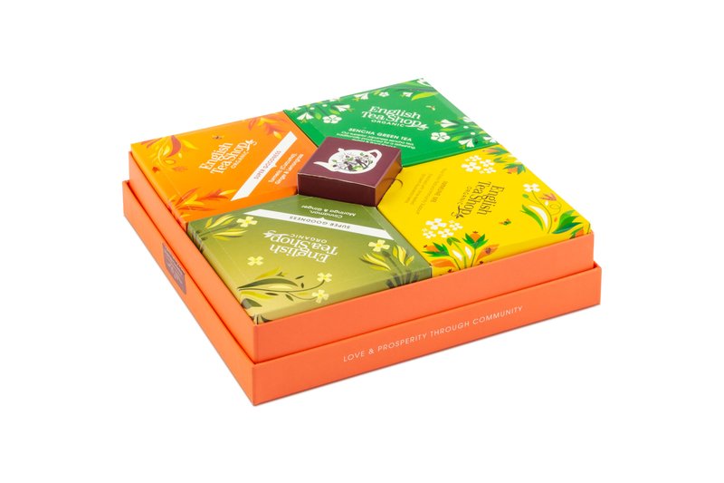 English Tea Shop – Uplifting Moments to zestaw 32 saszetek z 4 różnymi smakami, który pozwoli Ci na delektowanie się różnorodnymi i aromatycznymi herbatkami. W zestawie znajdują się ekologiczne herbatki, które zostały stworzone z myślą o tym, aby dostarczyć Ci nie tylko niezapomnianych smakowych doznań, ale również pozytywnych emocji i wzmocnienia ducha.