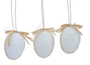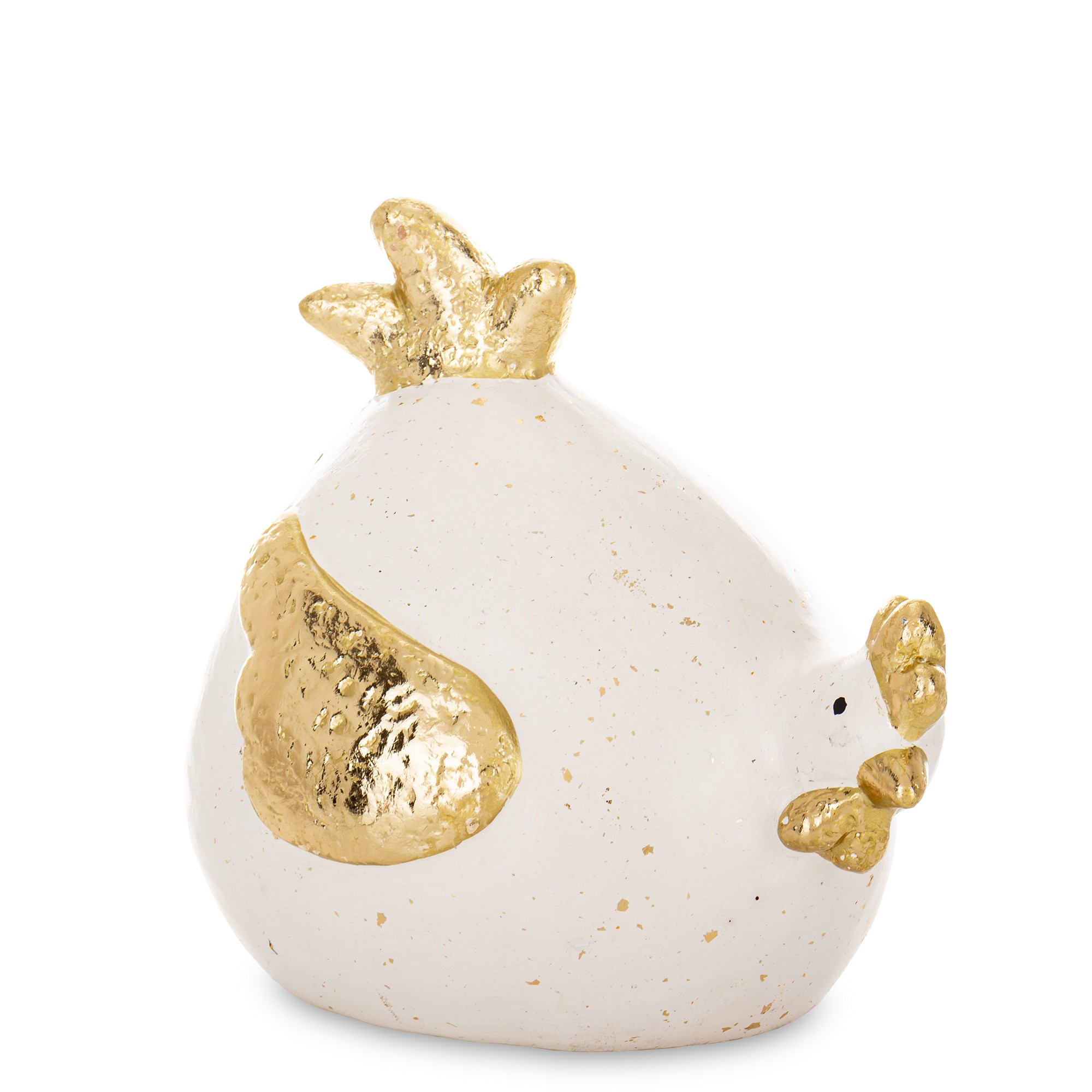Urocza figurka wielkanocna GALLO w kształcie kury, wykonana w białym kolorze z eleganckimi złotymi akcentami. Doskonała ozdoba świąteczna do każdego wnętrza.