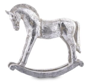 Figurka Koń Na Biegunach SREBRNY to dekoracja, która wnosi do wnętrza nutę elegancji i klasy. Dzięki starannemu wykonaniu, figurka zachwyca nawet najbardziej wymagających miłośników designu, stanowiąc zasłużone miejsce w kolekcji dekoracji wnętrz.