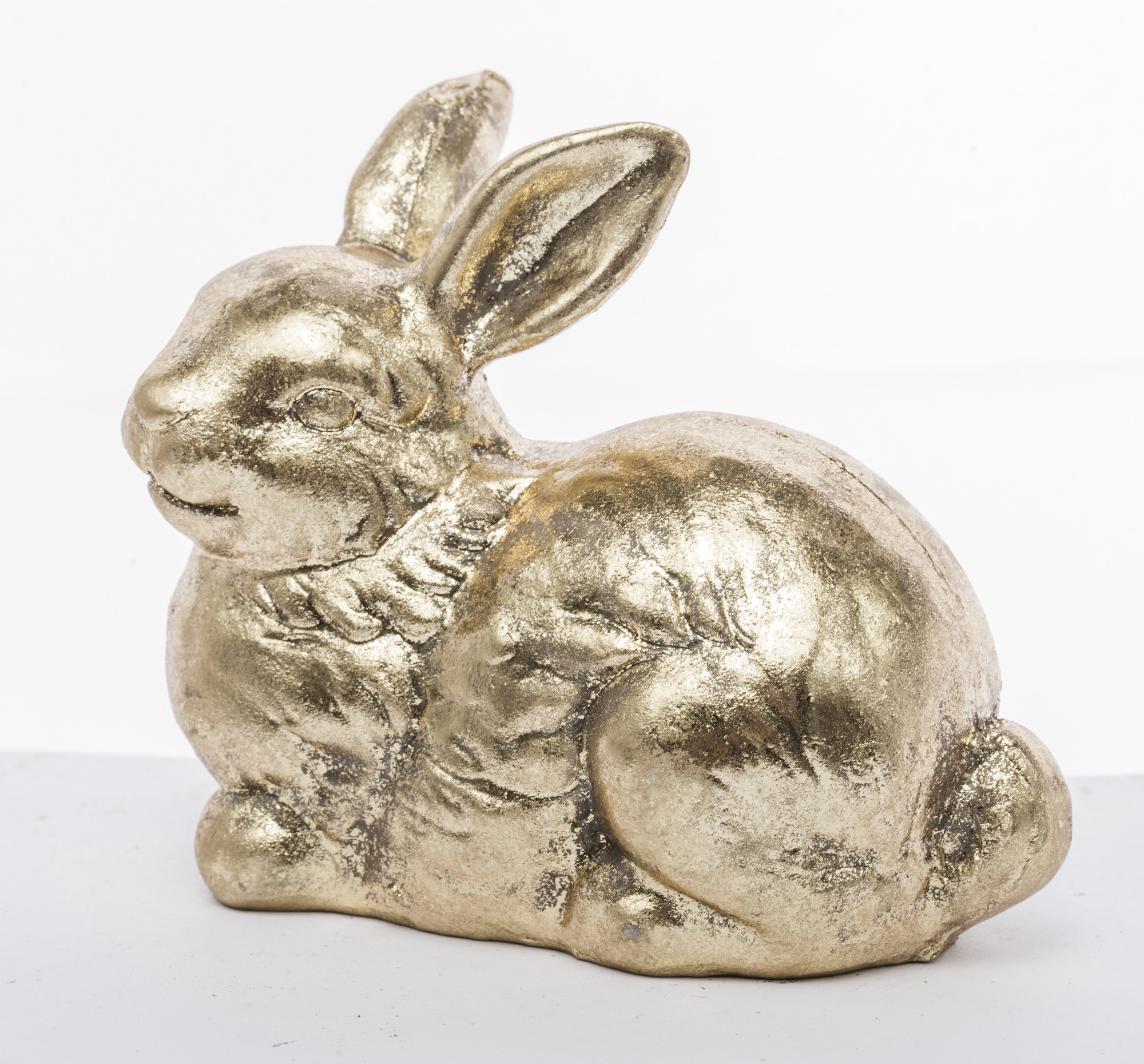 Figurka Królik AURABBIT to wyjątkowa dekoracja, która łączy prostotę formy z luksusowym wykończeniem. Siedzący królik o subtelnie teksturowanej powierzchni został pokryty złotą powłoką o metalicznym połysku, która pięknie odbija światło i nadaje całości szlachetnego charakteru. Ustawiony w spokojnej pozie, z uszami skierowanymi ku górze, emanuje aurą wyciszenia i elegancji.