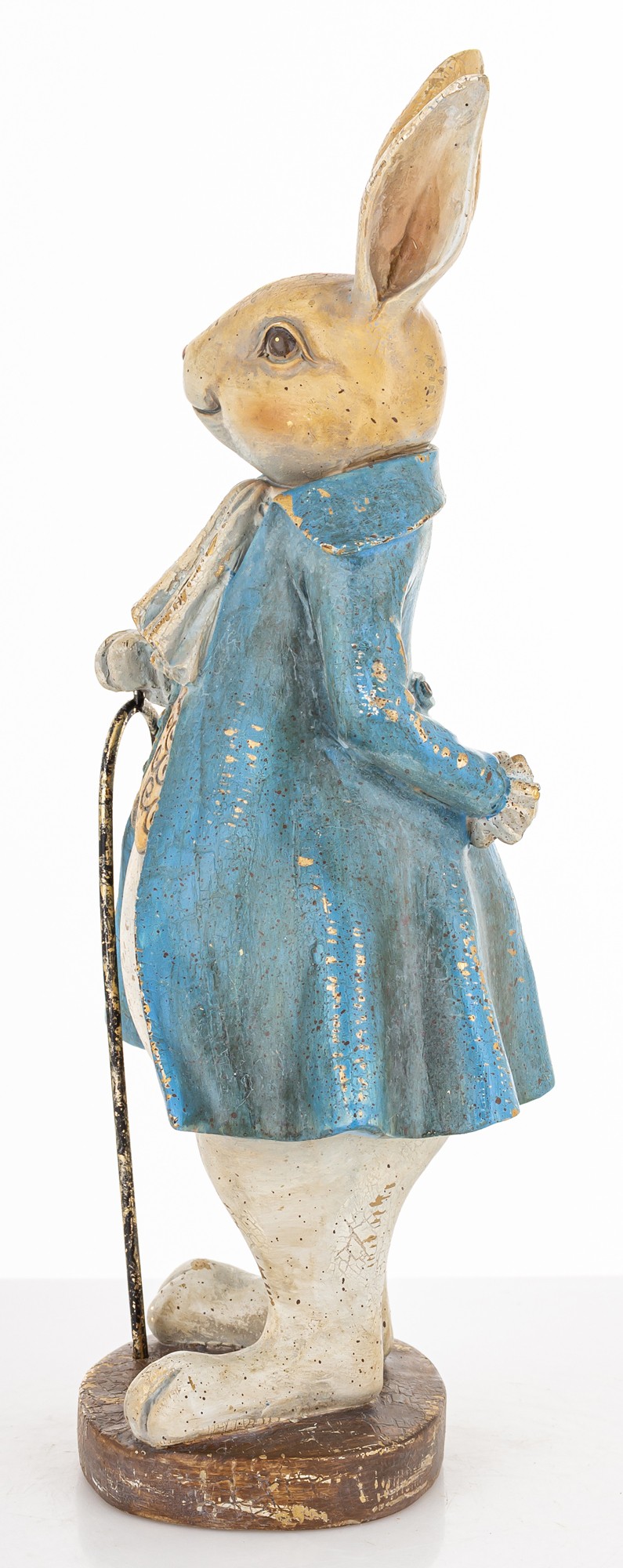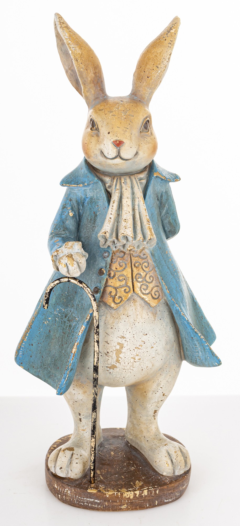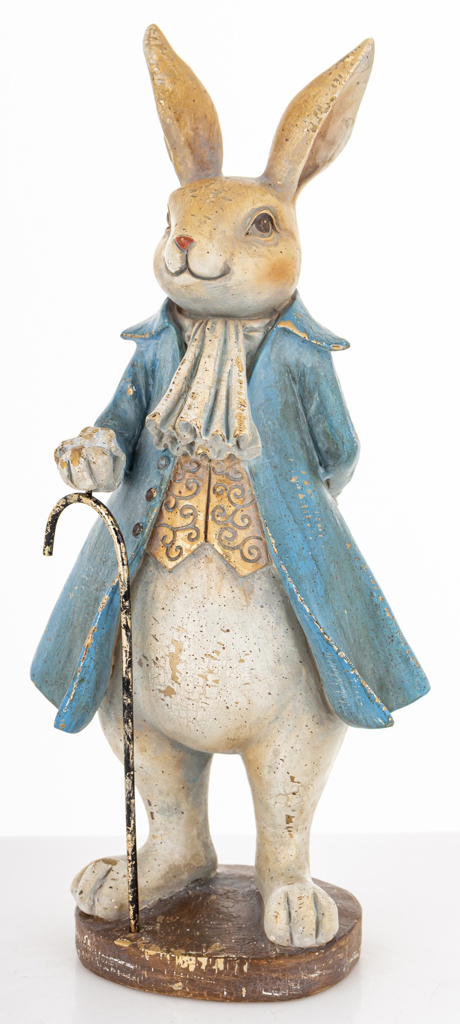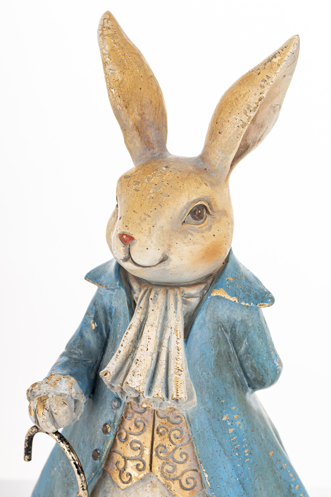Figurka Królik BEAU to stylizowany dżentelmen w złocistym fraku i z laską — dekoracja pełna klasy, idealna do wnętrz z charakterem i nutą teatralnego uroku.