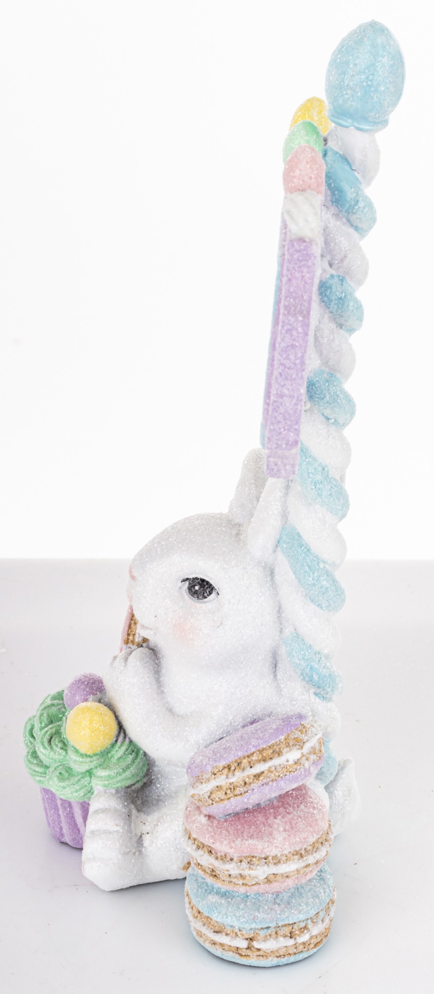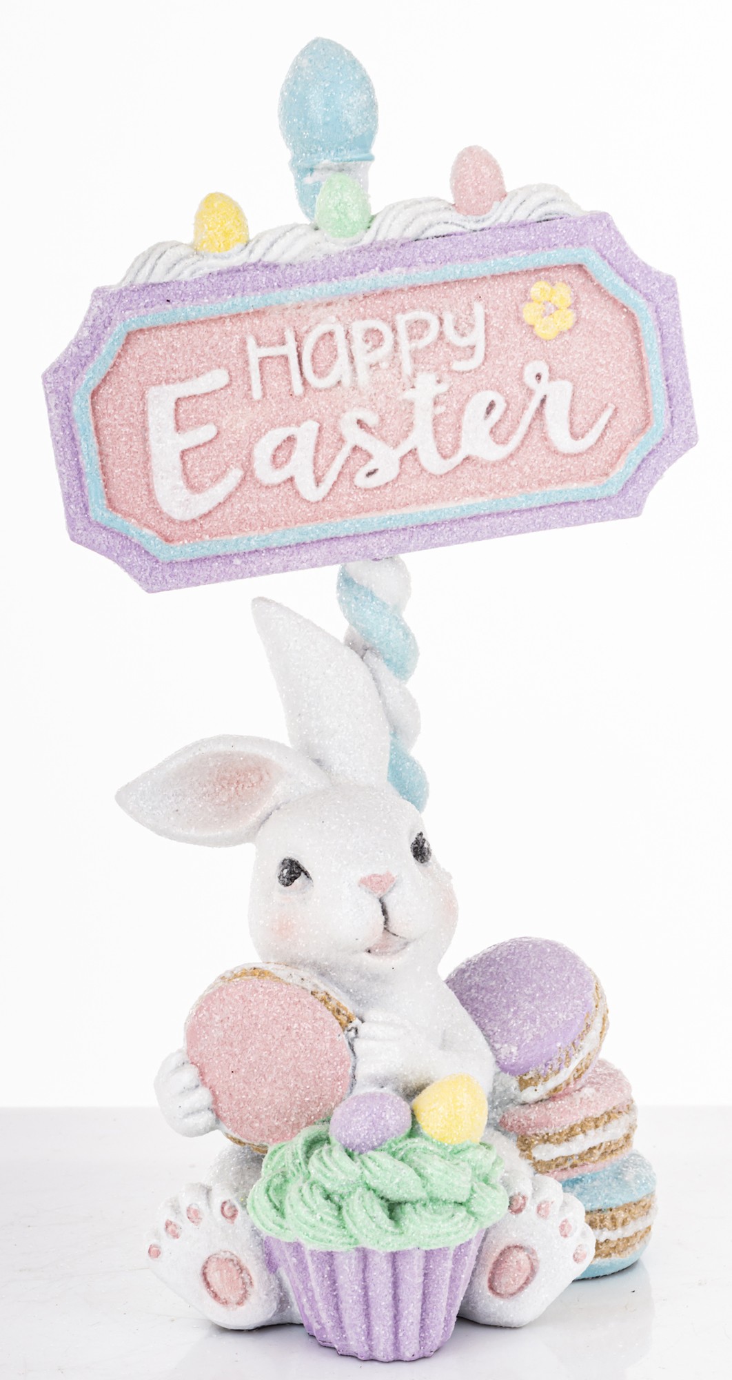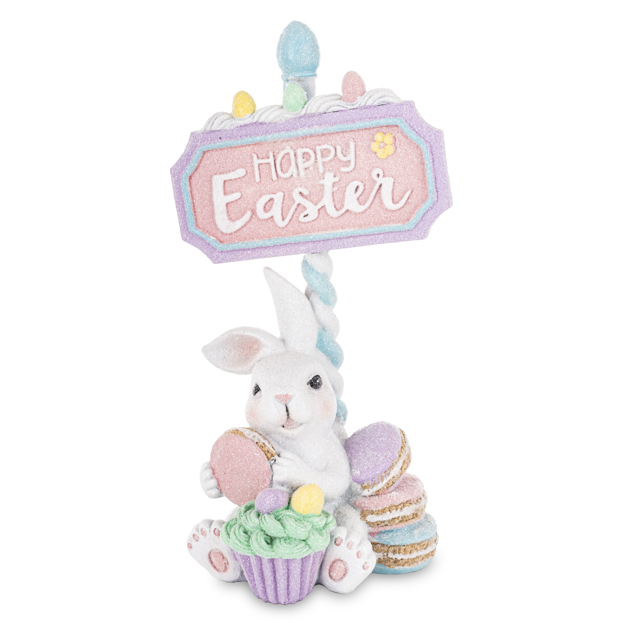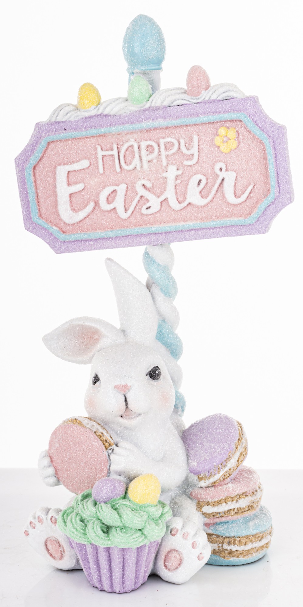 Figurka Królik EASTER to dekoracyjna scena z króliczkiem, makaronikami i tabliczką „Happy Easter”. Idealna do pastelowych aranżacji wielkanocnych — słodka, kolorowa i pełna świątecznego wdzięku.