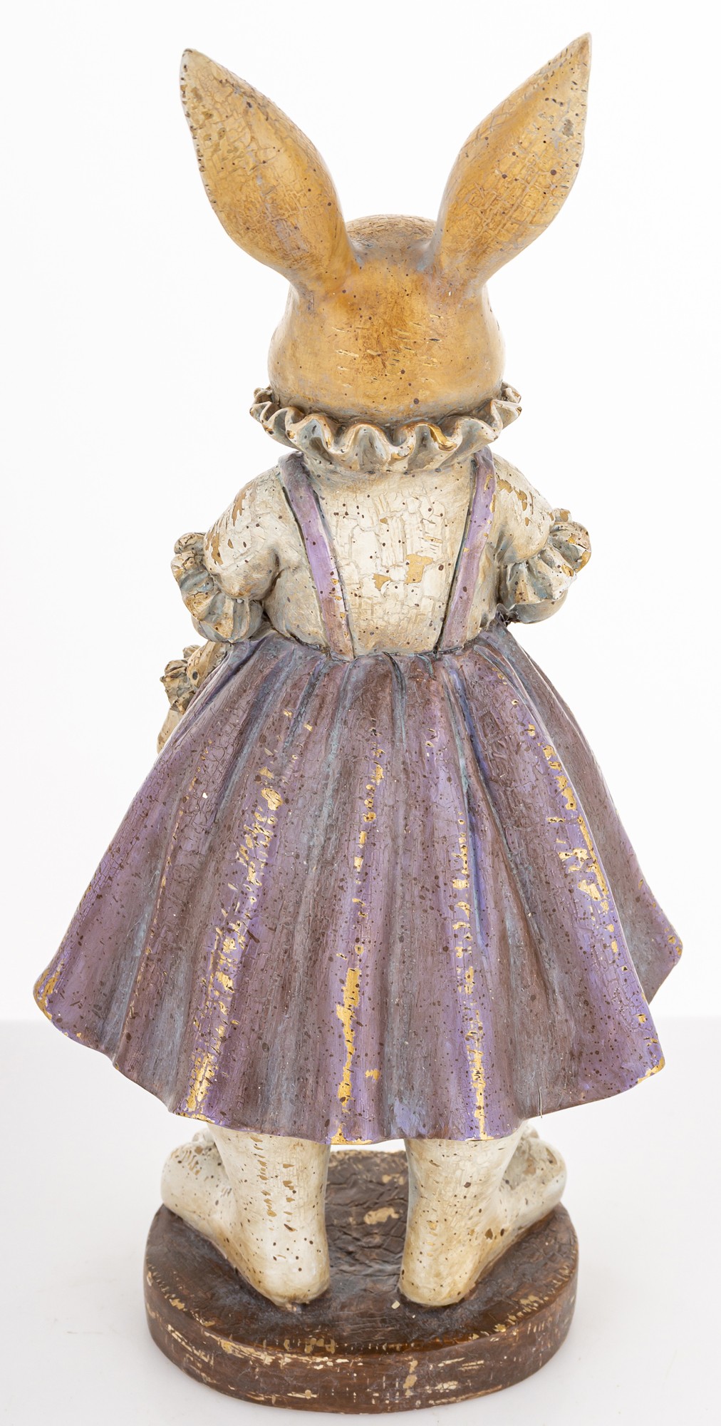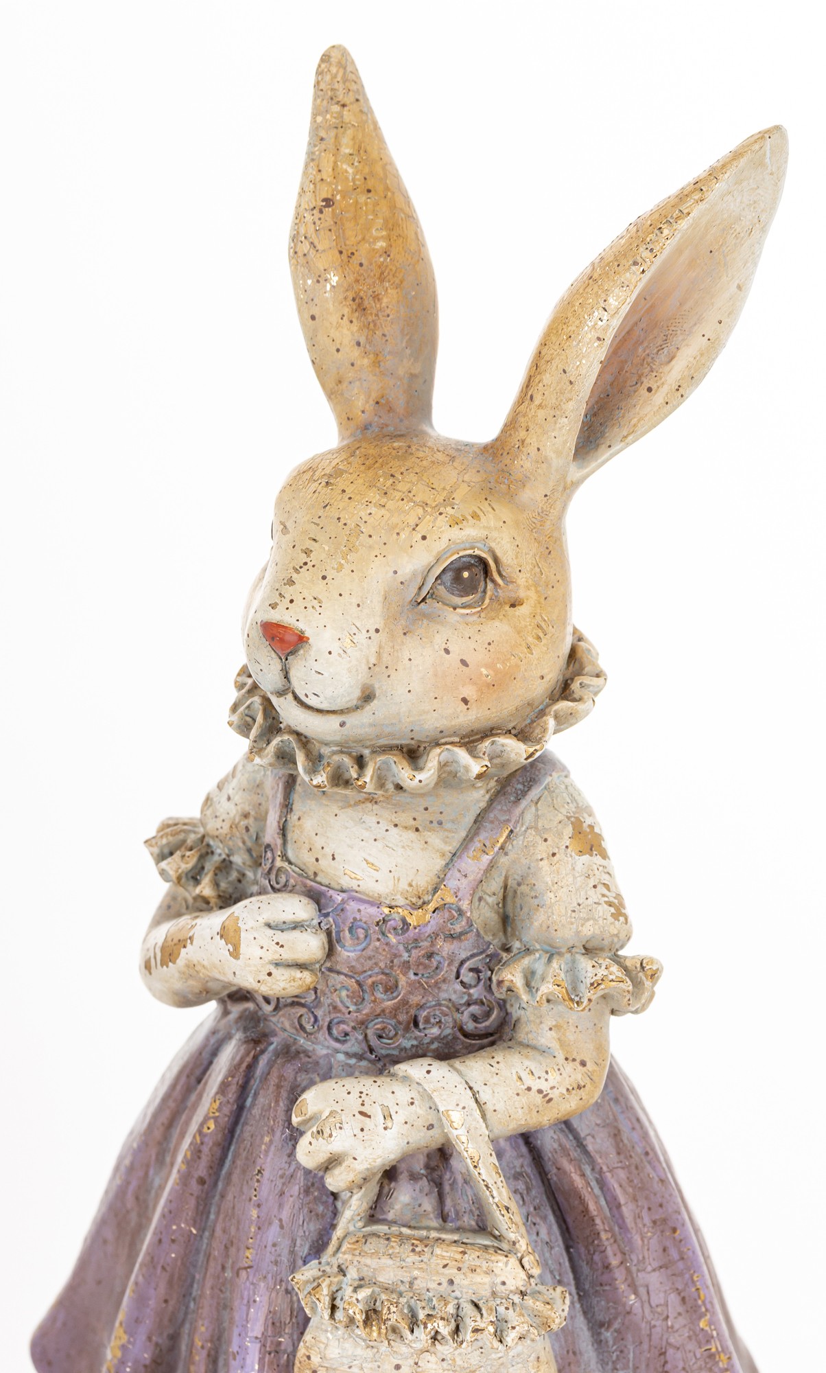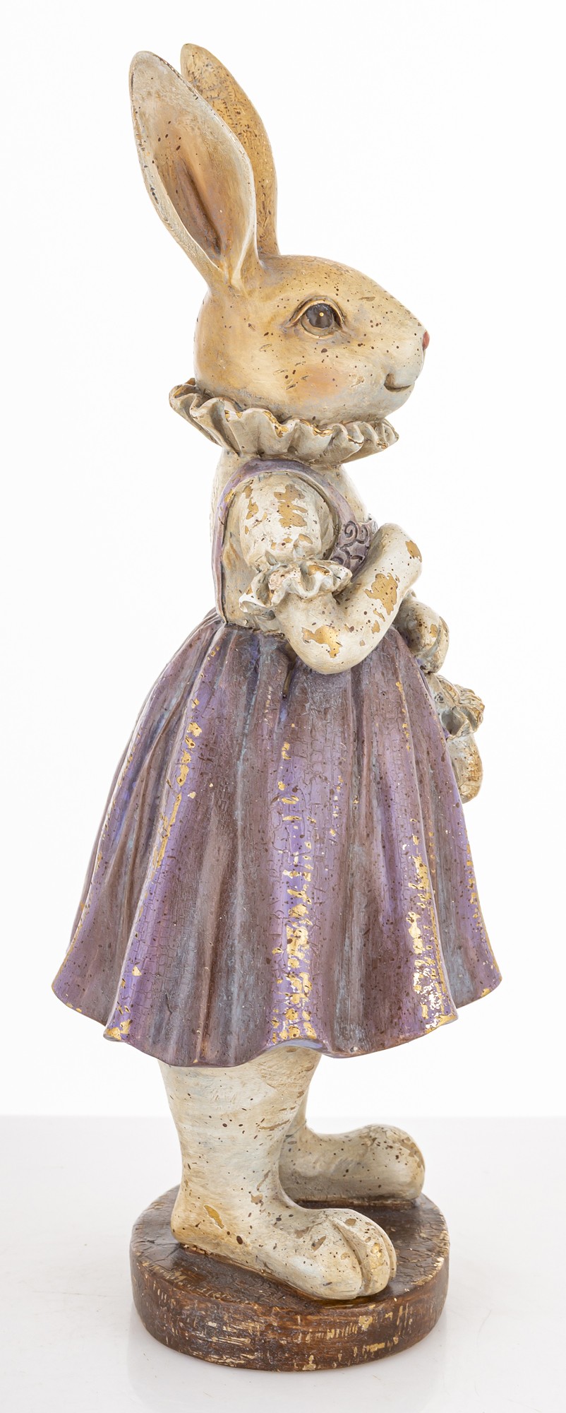 Figurka Królik LAVENDA to urocza dekoracja w stylu vintage — królik w fioletowej sukience z koszyczkiem, idealny do wiosennych aranżacji i wielkanocnych stylizacji.