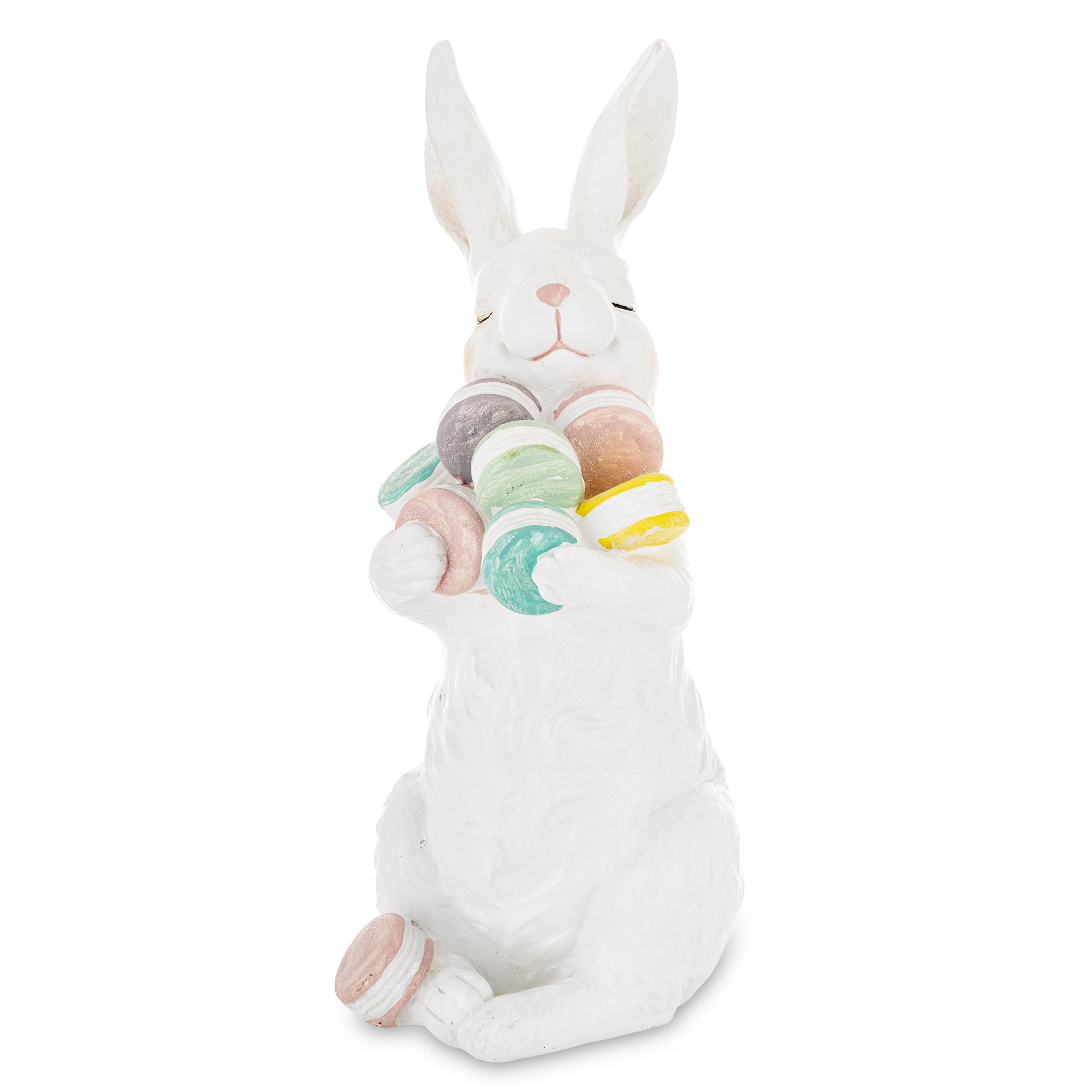 Figurka Królik MACAROSE to dekoracyjny króliczek z pastelowymi makaronikami. Idealna do wielkanocnych aranżacji w stylu cukierkowym, dziecięcym i romantycznym — słodka, spokojna, urocza.