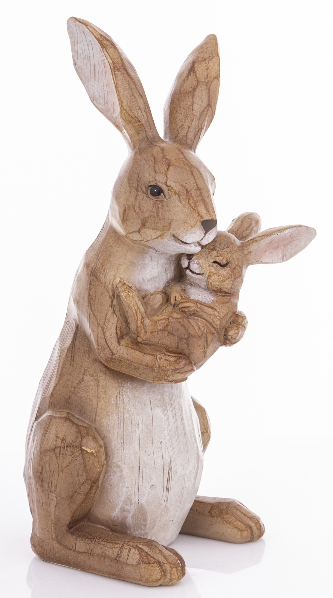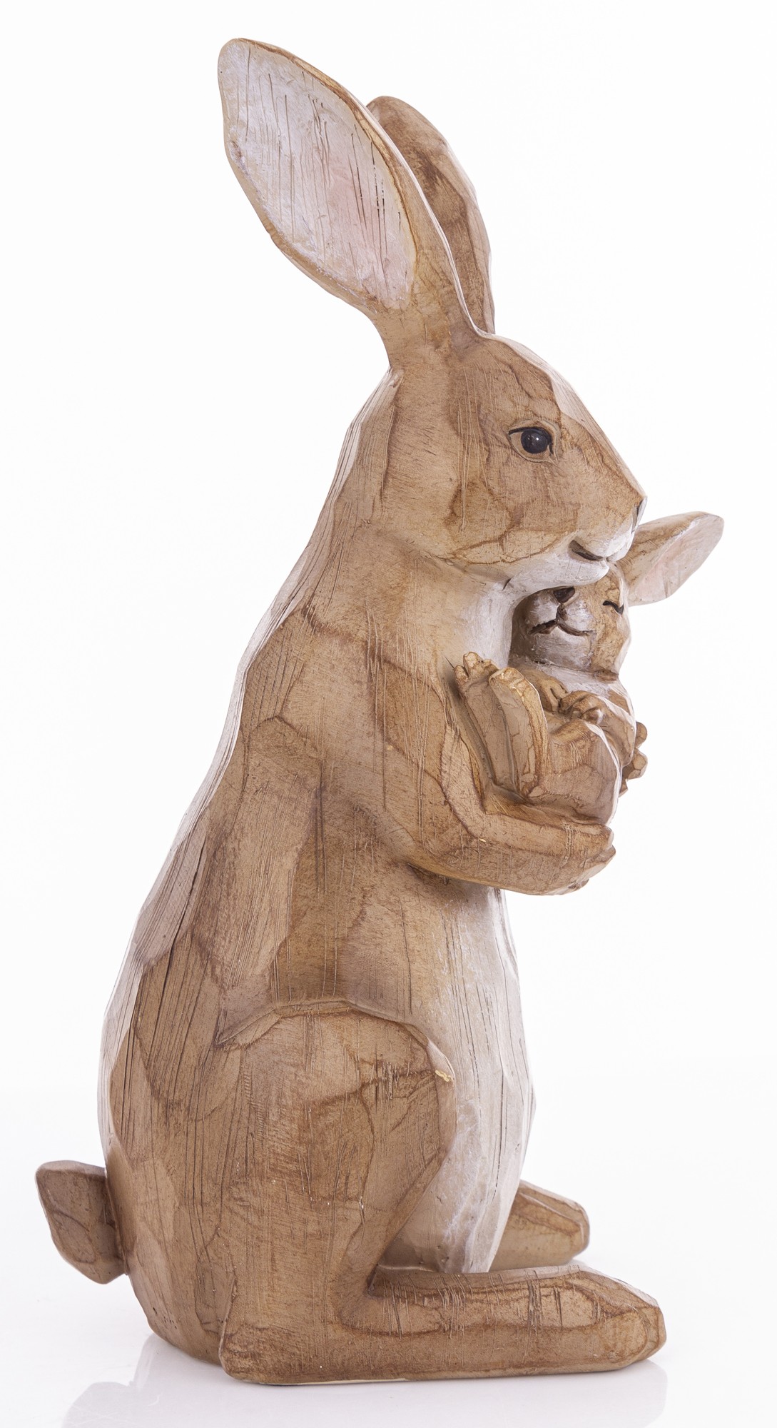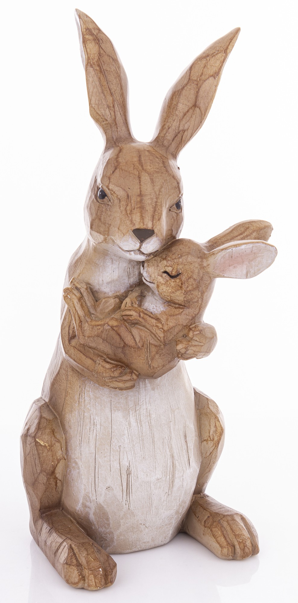 Figurka Króliki MOTHERLY LOVE to rzeźba z naturalnym wykończeniem, przedstawiająca matkę tulącą małego królika. Idealna dekoracja do wnętrz, które cenią emocje, prostotę i rękodzielniczy styl.