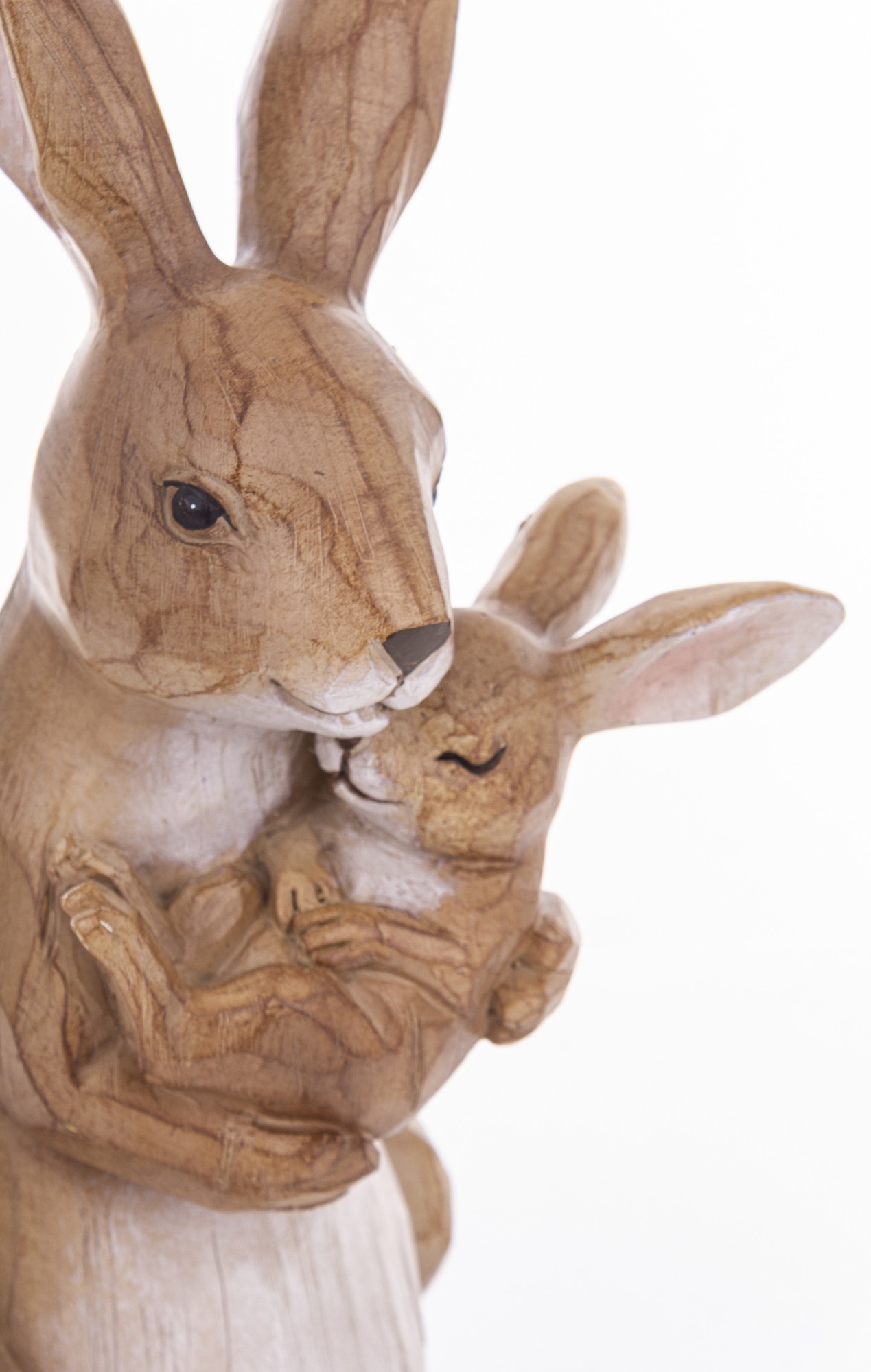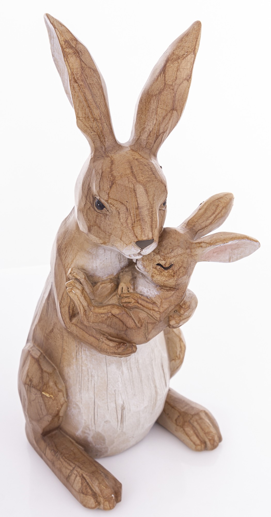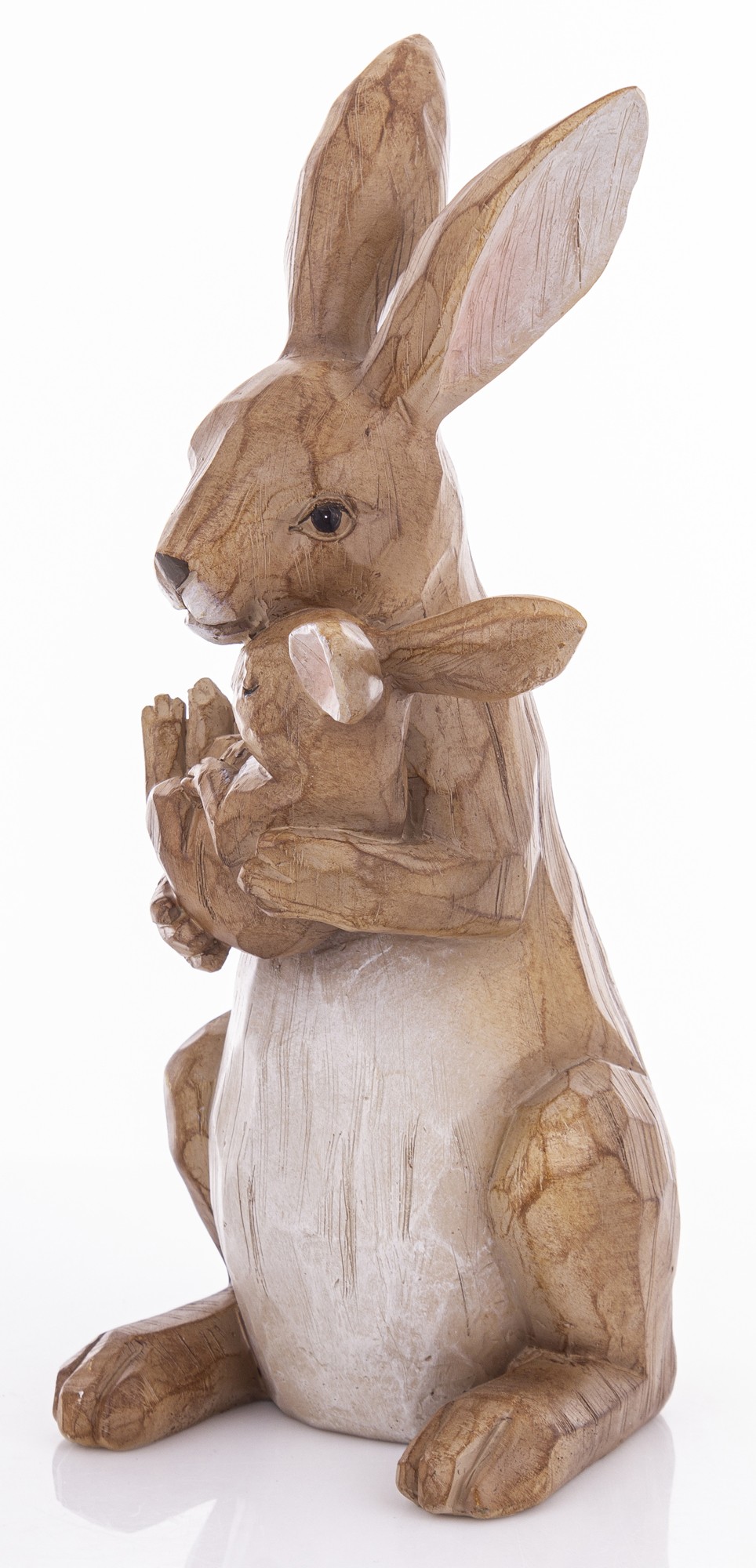 Figurka Króliki MOTHERLY LOVE to rzeźba z naturalnym wykończeniem, przedstawiająca matkę tulącą małego królika. Idealna dekoracja do wnętrz, które cenią emocje, prostotę i rękodzielniczy styl.