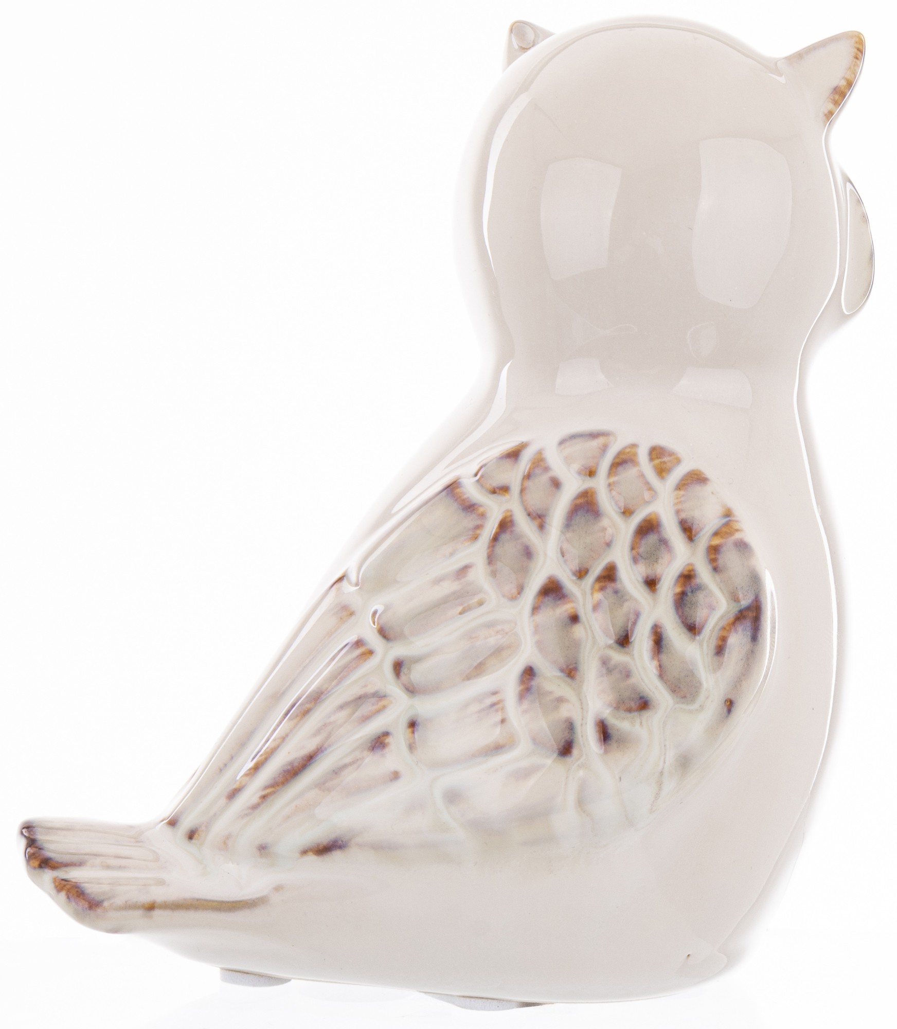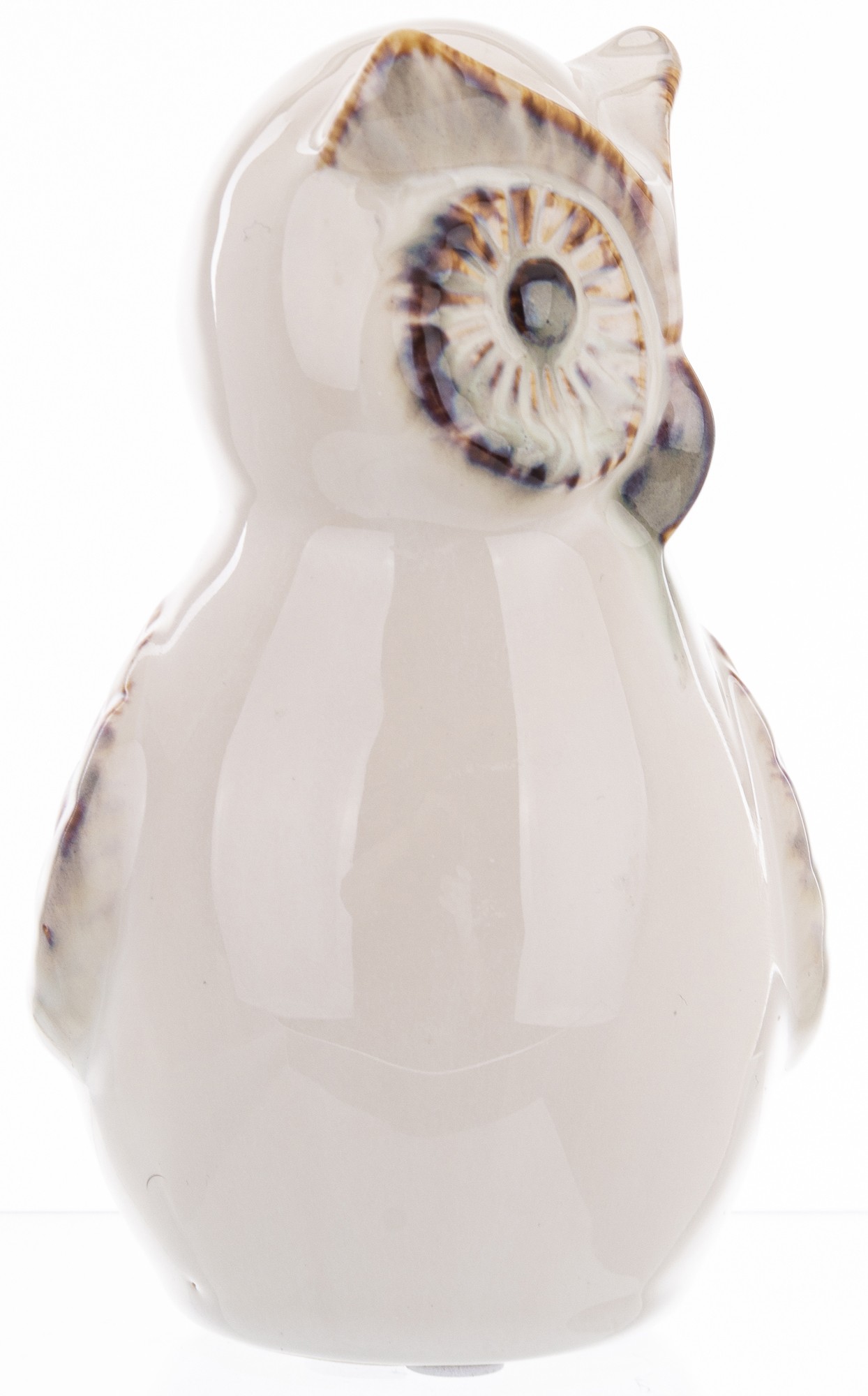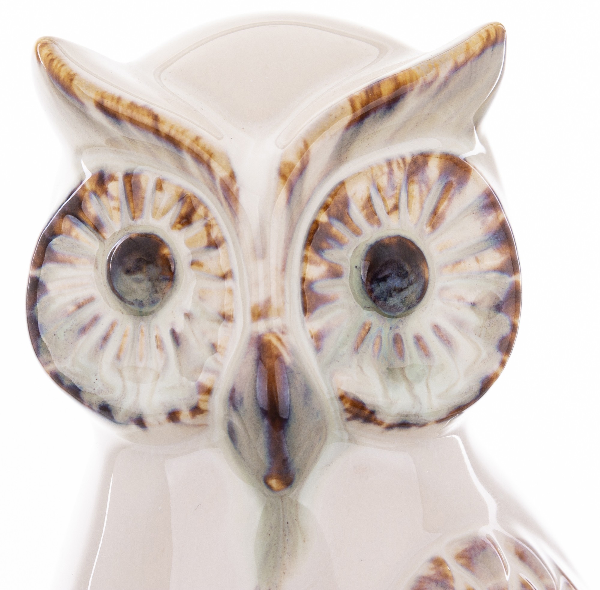 Kremowa ceramiczna figurka sowy o wymiarach 13,5x12x8 cm to uroczy element dekoracyjny. Ciemniejsze detale na skrzydłach, oczach i dziobie dodają jej naturalnego uroku. Momoże wprowadzić przytulną atmosferę we wnętrzu, jednocześnie będąc bardzo subtelnym dodatkiem.