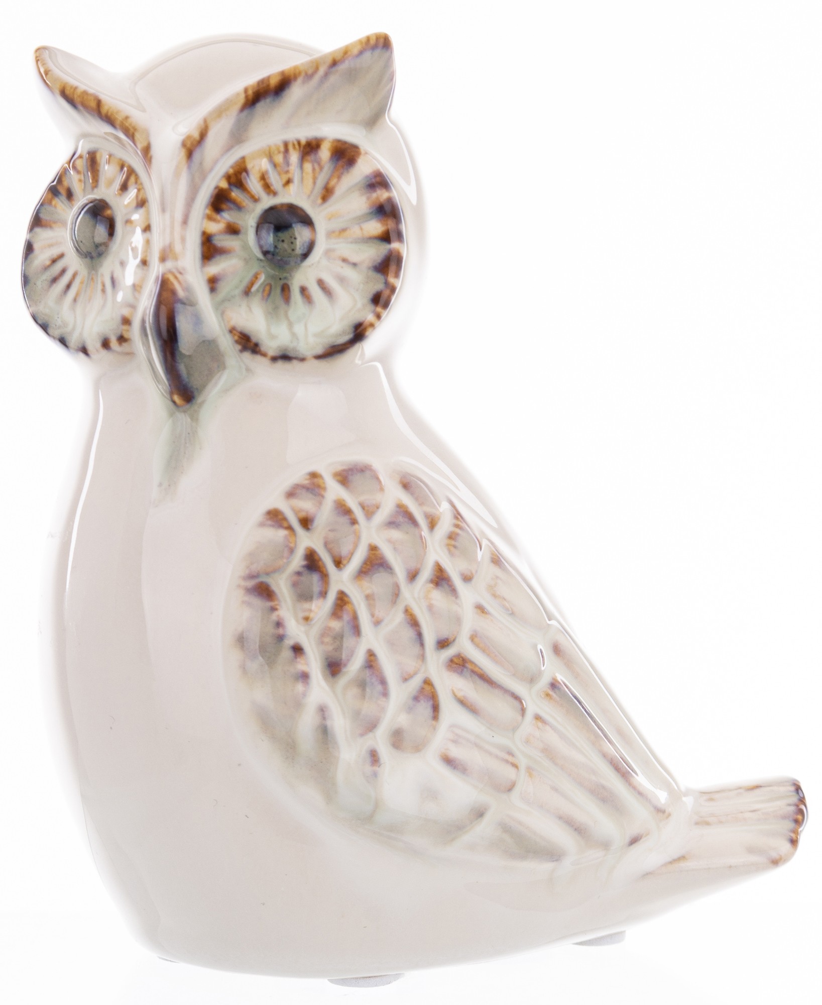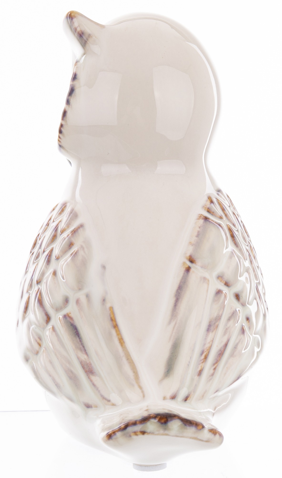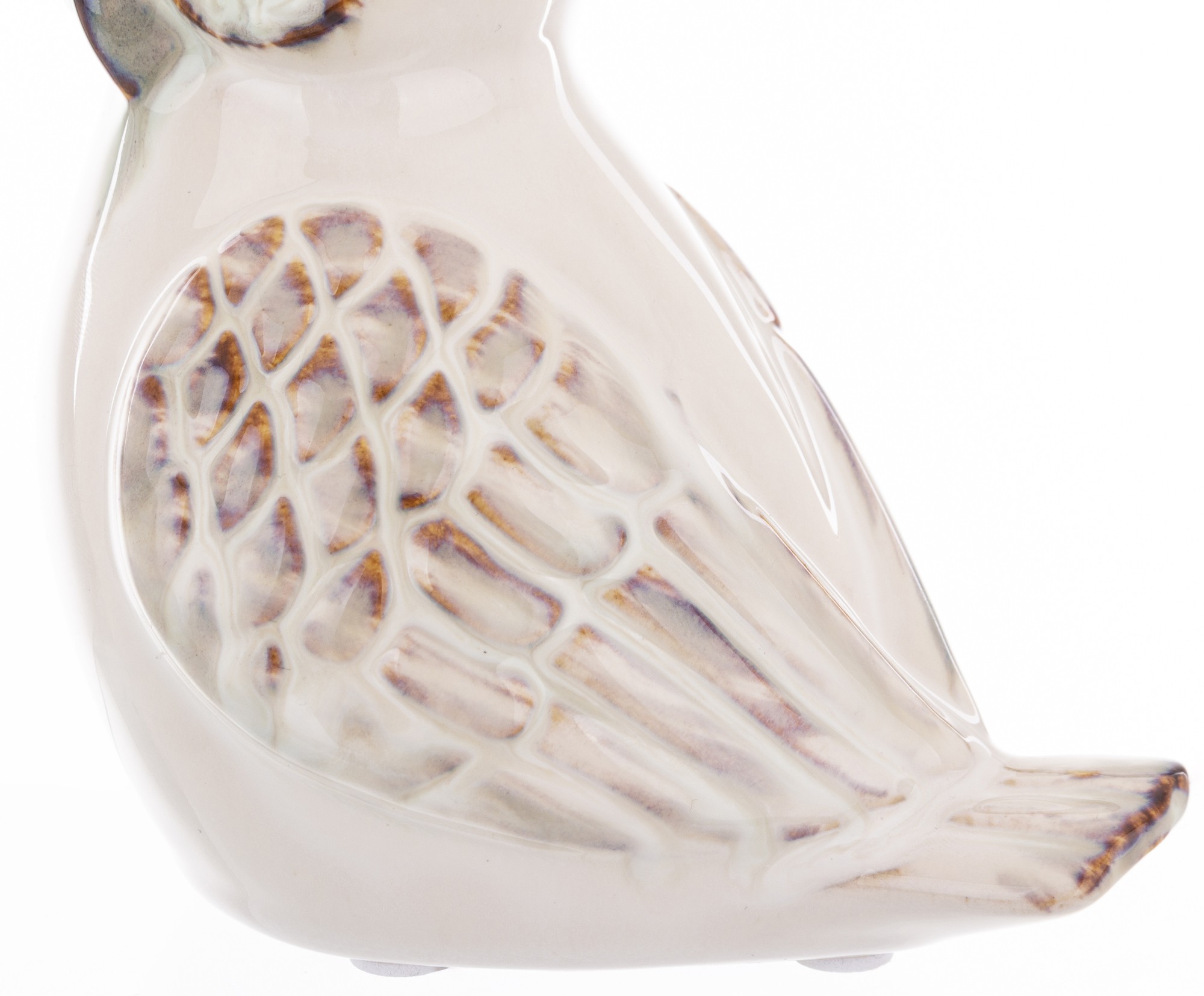 Kremowa ceramiczna figurka sowy o wymiarach 13,5x12x8 cm to uroczy element dekoracyjny. Ciemniejsze detale na skrzydłach, oczach i dziobie dodają jej naturalnego uroku. Momoże wprowadzić przytulną atmosferę we wnętrzu, jednocześnie będąc bardzo subtelnym dodatkiem.