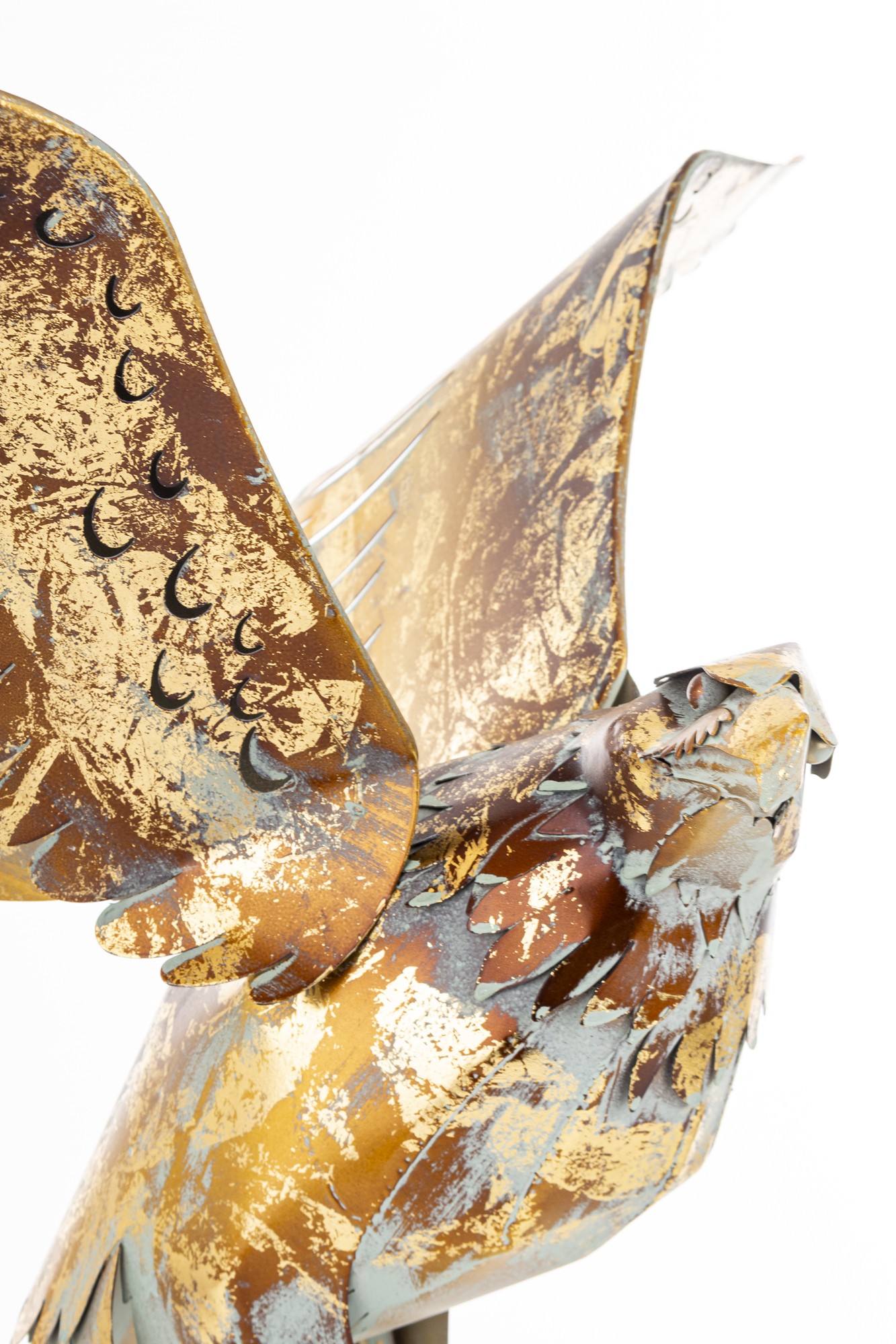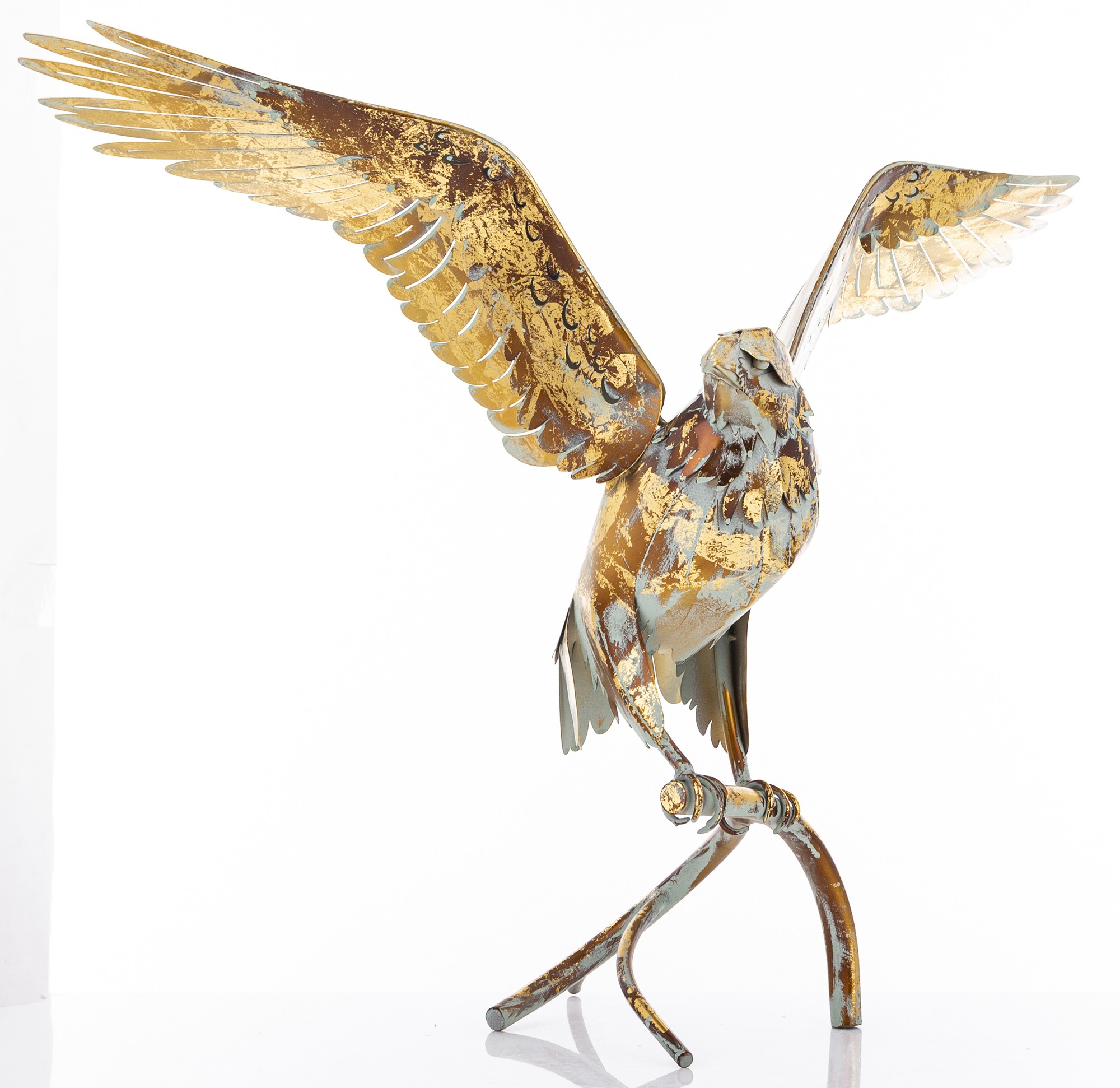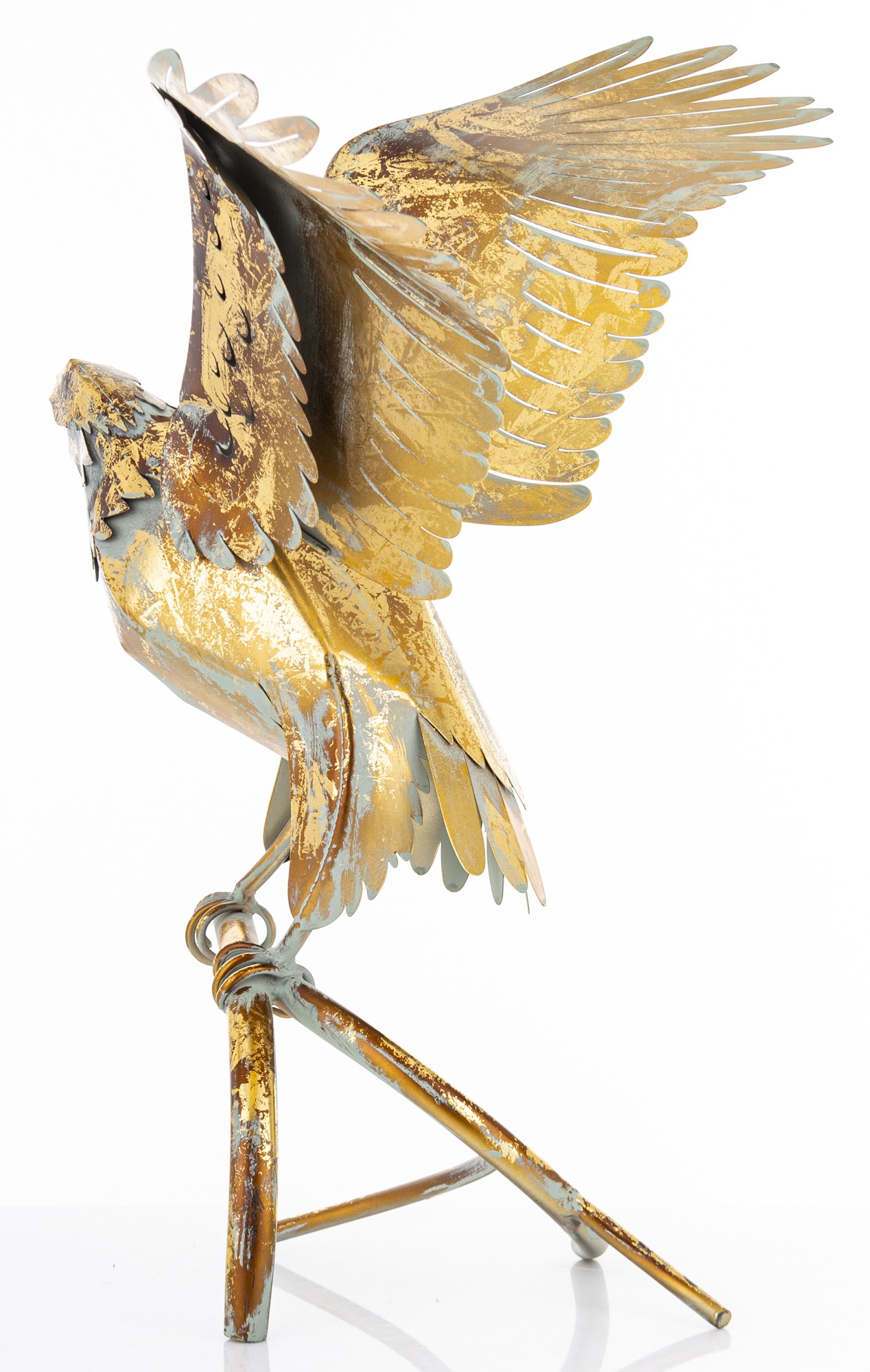 Figurka Ptak metalowa złota FAGEL to doskonała propozycja dla osób poszukujących unikalnych elementów dekoracyjnych do swojego wnętrza. Jej elegancka forma oraz złote wykończenie sprawiają, że idealnie komponuje się w nowoczesnych, jak i klasycznych aranżacjach. Dzięki zastosowaniu wysokiej jakości metalu, figura jest nie tylko atrakcyjna wizualnie, ale również odporna na uszkodzenia, co zapewnia jej długowieczność. Ten ręcznie wykonany element dekoracyjny przyciąga uwagę i staje się centralnym punktem każdego pomieszczenia, w którym się znajduje.