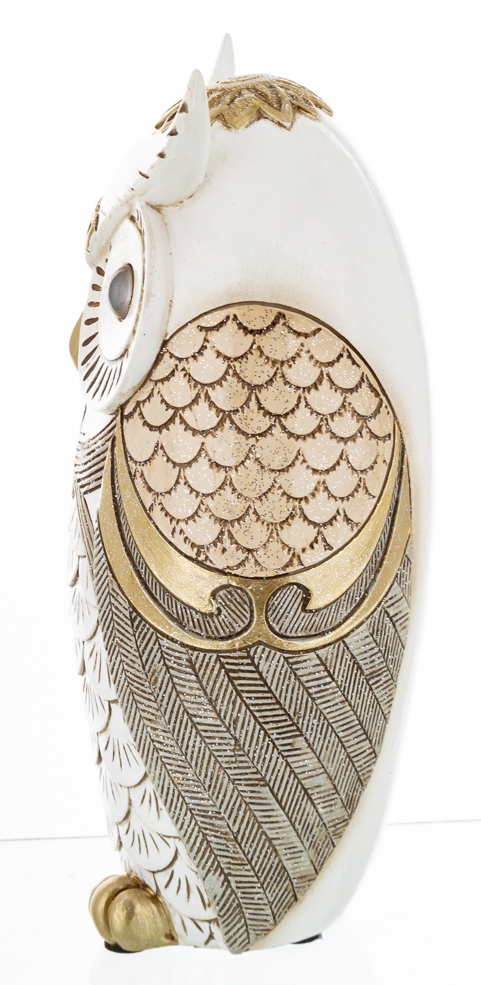 Figurka Sowa OWE to elegancka dekoracja, która doskonale wkomponuje się w każde wnętrze, dodając mu niepowtarzalnego charakteru. Wykonana z wysokiej jakości materiałów, oferuje estetyczne detale oraz staranne wykończenie, które przyciąga wzrok. Ta unikalna ozdoba przedstawia sowę w realistyczny sposób, co sprawia, że jest idealnym wyborem zarówno do domowych przestrzeni, jak i biur czy lokali usługowych. Dzięki swojemu uniwersalnemu stylowi, Figurka Sowa OWE świetnie sprawdzi się jako element dekoracyjny na półkach, komodach czy biurkach, wprowadzając do pomieszczenia przytulną atmosferę. Niezależnie od aranżacji, ta figura będzie zachwycać swoimi walorami estetycznymi oraz stanowić doskonały temat do rozmów. Wybierz Figułę Sowa OWE, aby wzbogacić swoje otoczenie o wyjątkowe akcenty dekoracyjne.