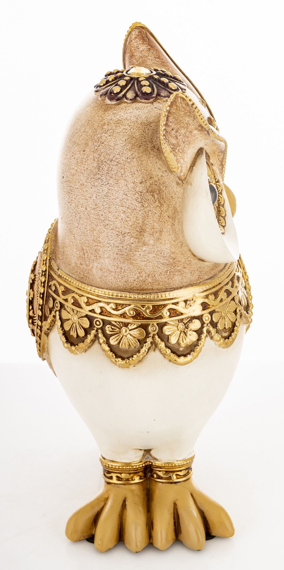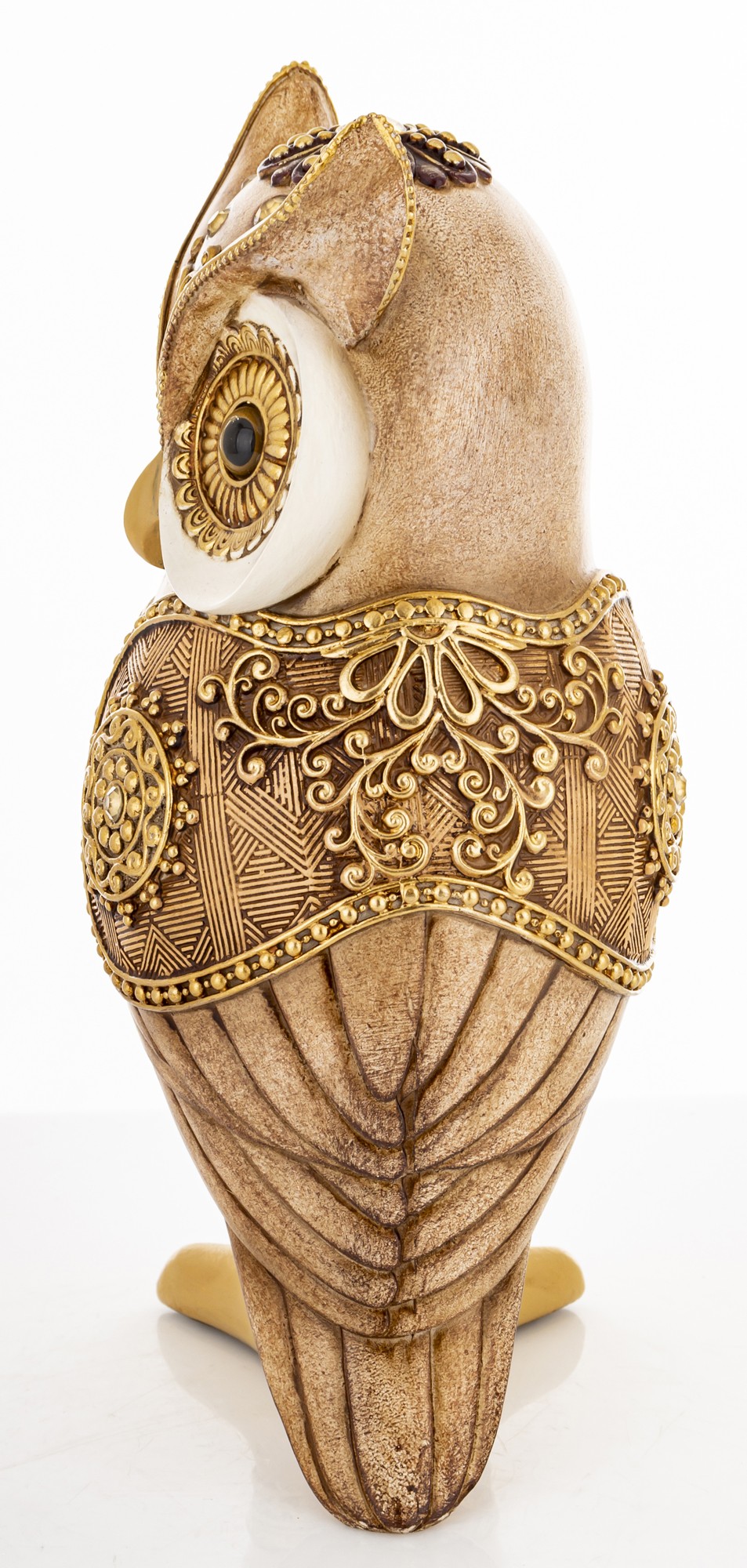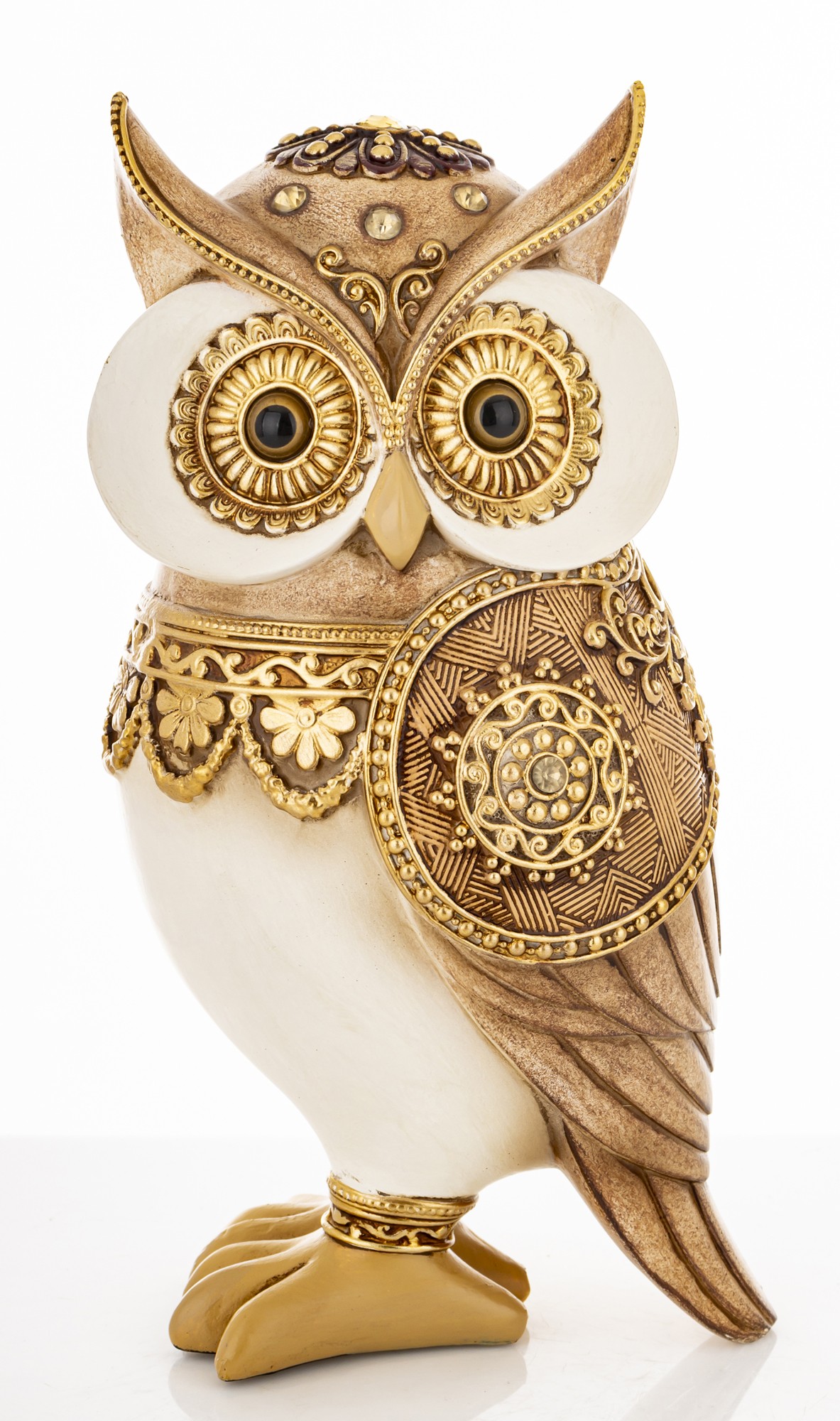 Figurka Sowa OWEL to unikalna dekoracja, która doda charakteru każdemu wnętrzu. Wykonana z wysokiej jakości materiałów, figura jest starannie wykonana, co zapewnia jej trwałość i elegancki wygląd. Idealnie sprawdzi się zarówno w nowoczesnych, jak i klasycznych aranżacjach. Sowa, jako symbol mądrości i wiedzy, będzie doskonałym dodatkiem do biura, salonu czy biblioteki. Dzięki swoim estetycznym walorom, figurka ta nie tylko ozdobi przestrzeń, ale także stanie się jej ciekawym akcentem, przyciągającym wzrok gości. Oferujemy produkt, który łączy w sobie funkcję dekoracyjną oraz unikalny design – idealny dla osób ceniących sobie piękno i estetykę w swoim otoczeniu.