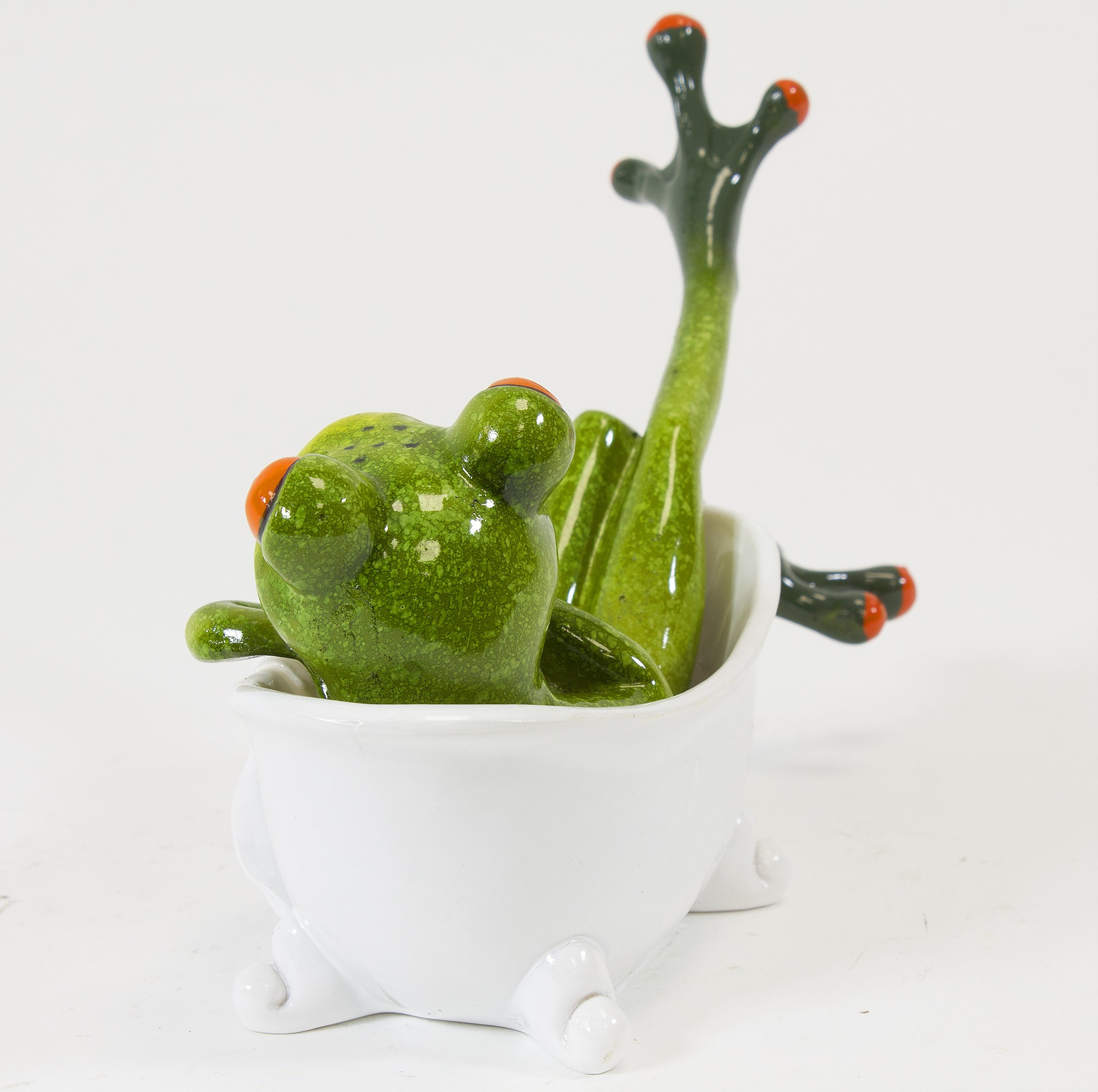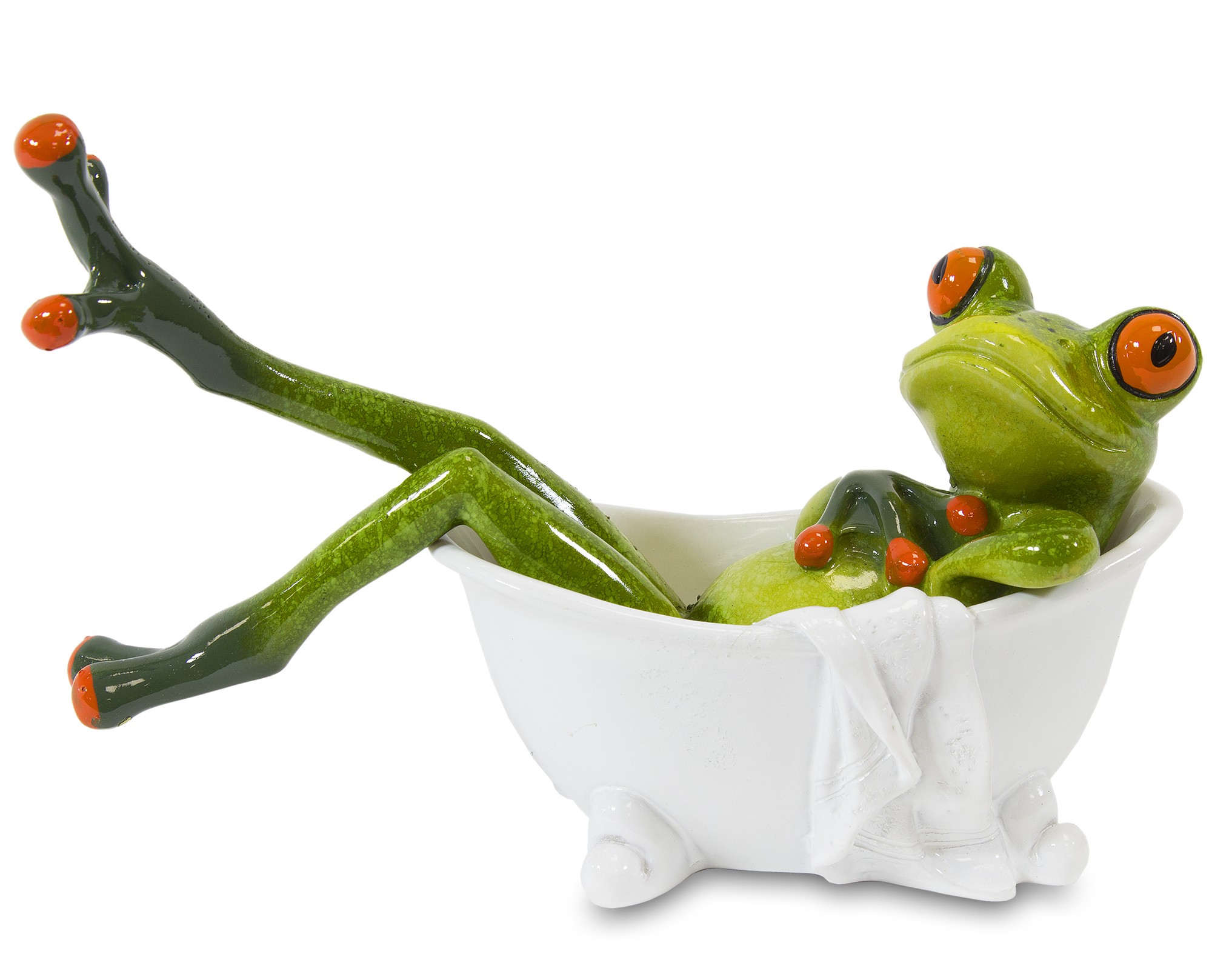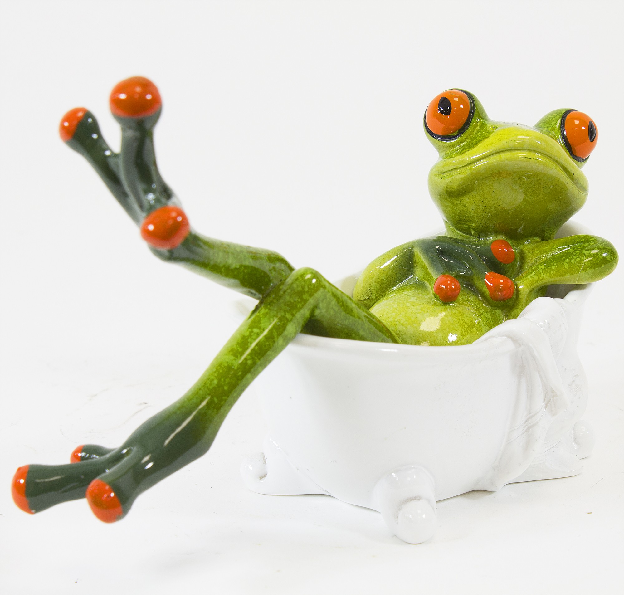 Figurka Żaba RELAKS – urocza dekoracja, która wniesie odrobinę humoru i luzu do każdego wnętrza. Zielona żaba w wannie to idealny akcent dla miłośników nietuzinkowych ozdób.