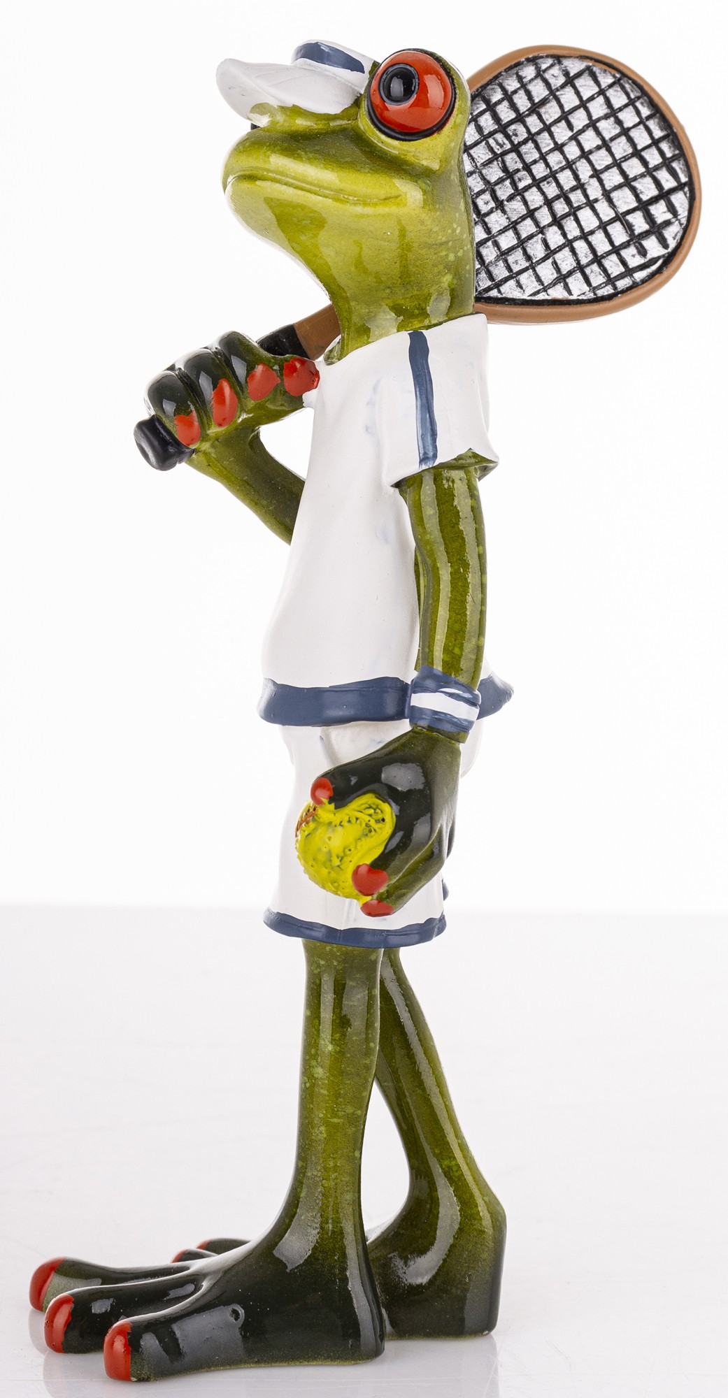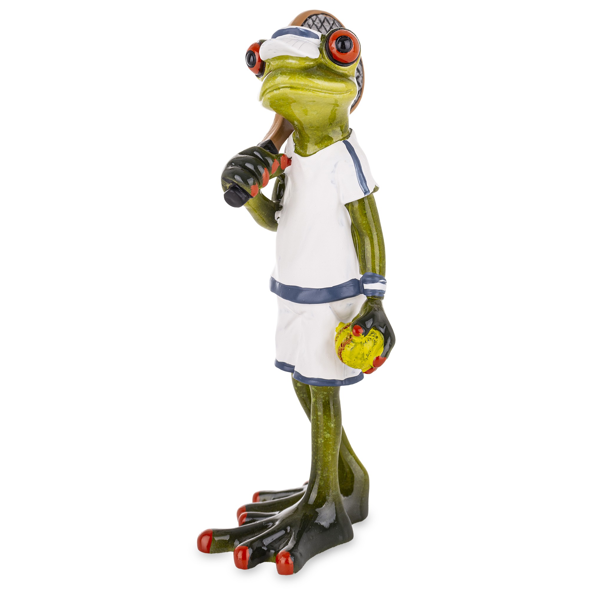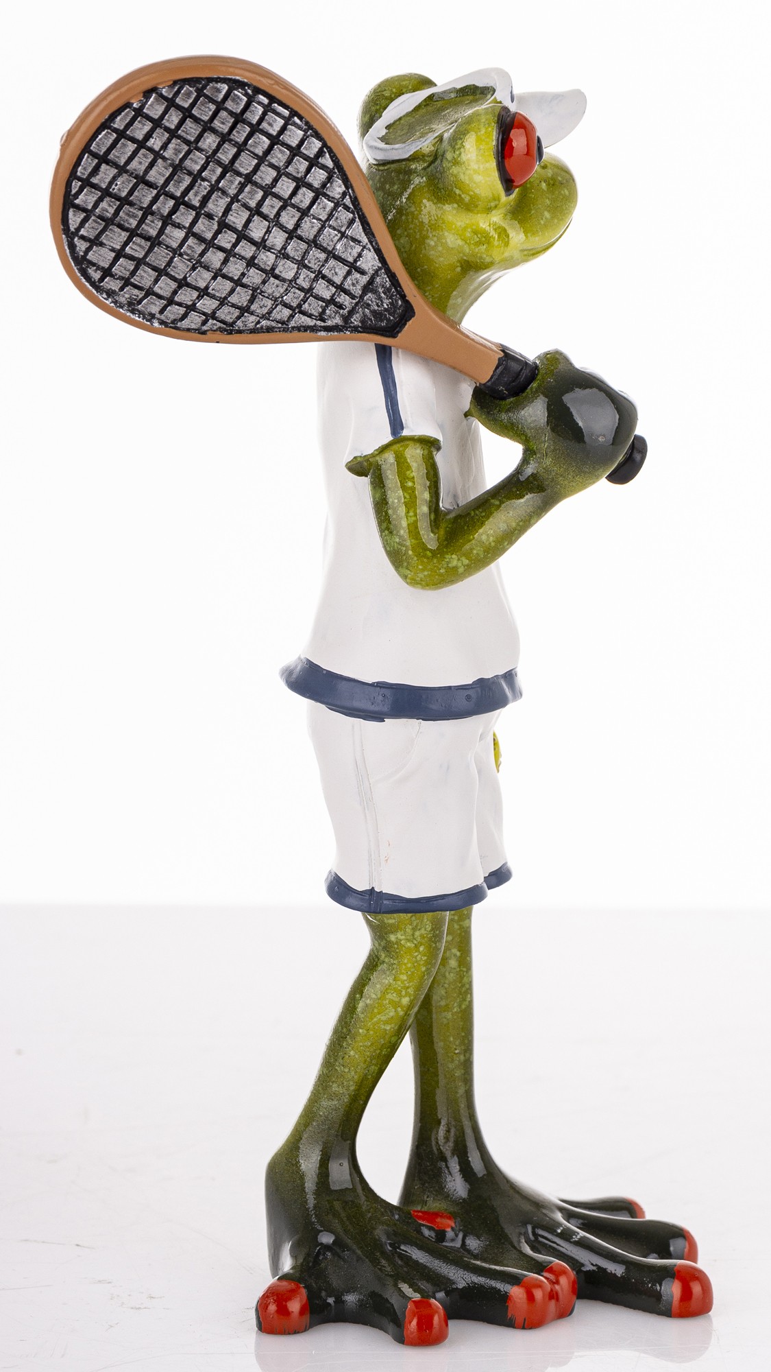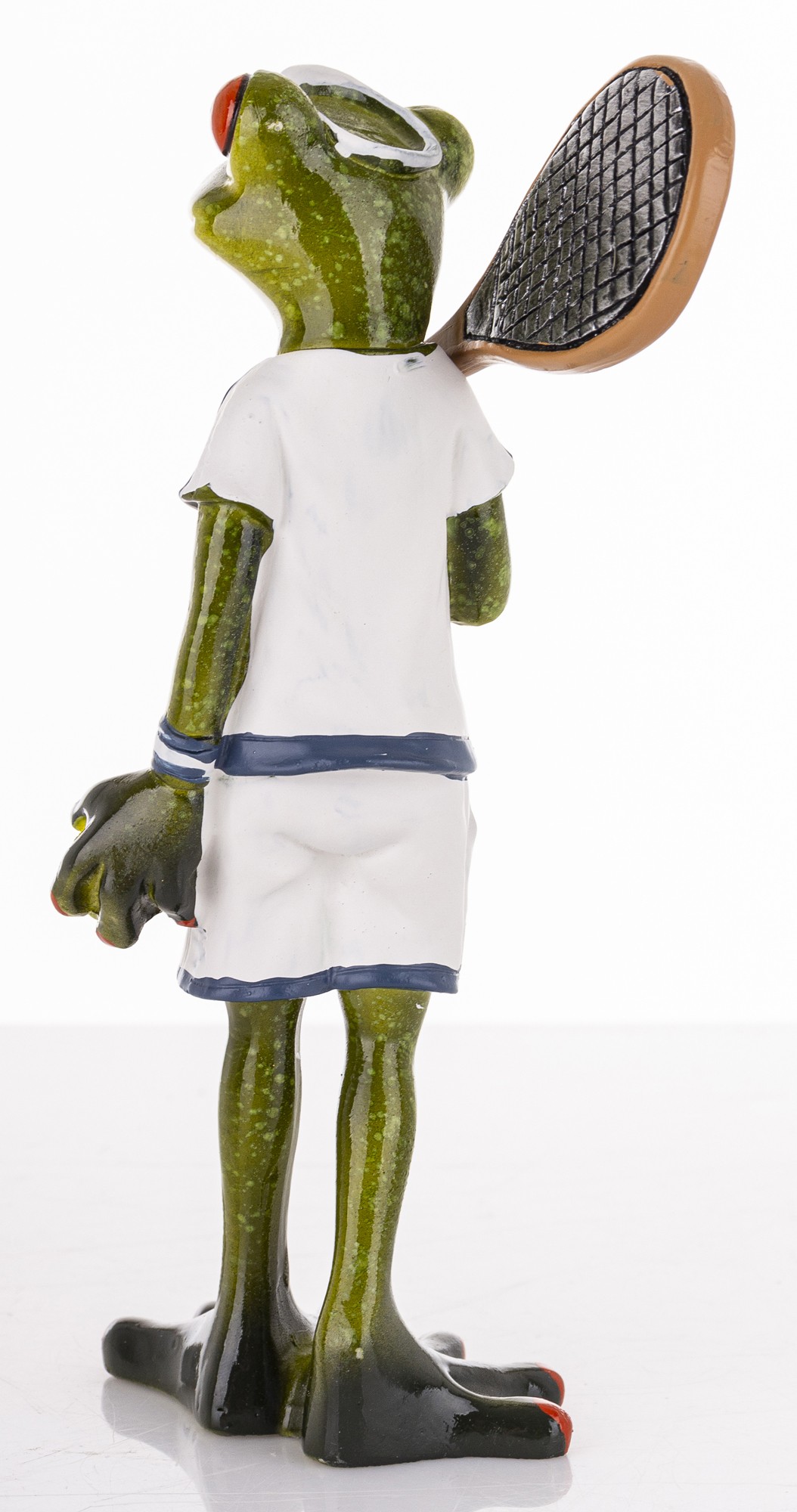 Figurka Żaba TENIS to pełna energii dekoracja przedstawiająca żabkę w stroju tenisowym, gotową do gry. Z rakietą na ramieniu i piłką w dłoni, wnosi do wnętrza sportowy klimat i odrobinę humoru. Idealna dla fanów tenisa i niebanalnych dodatków.