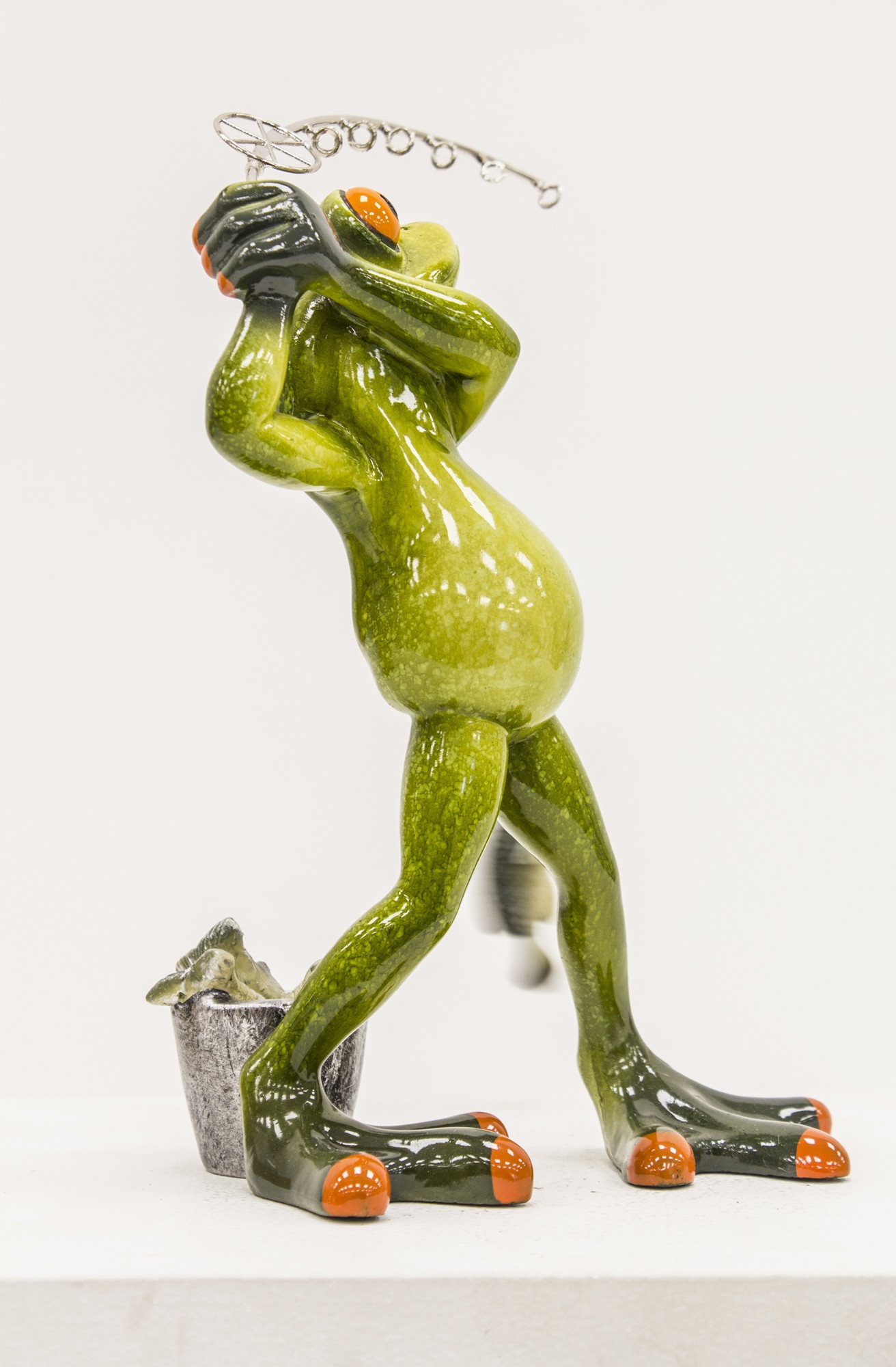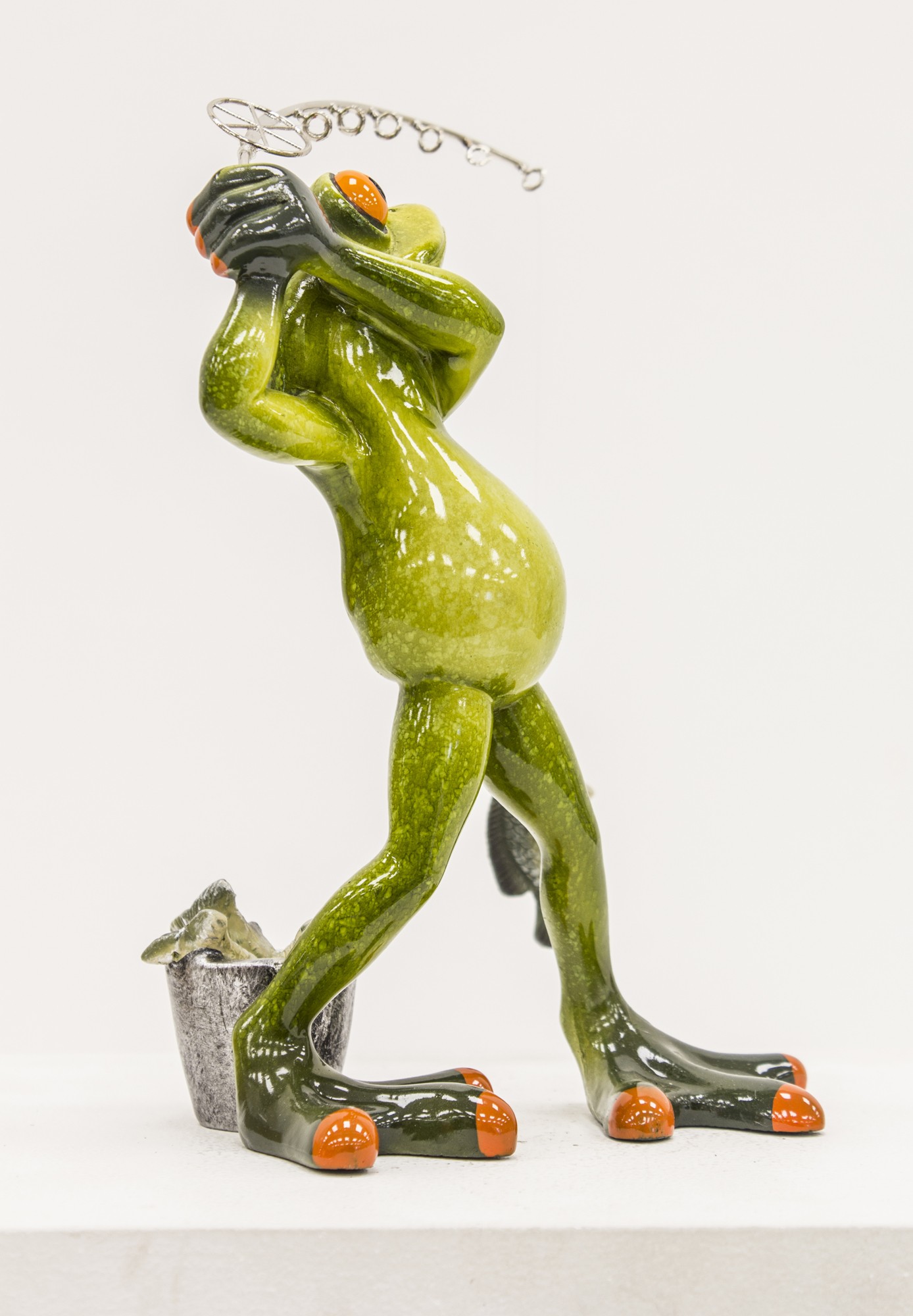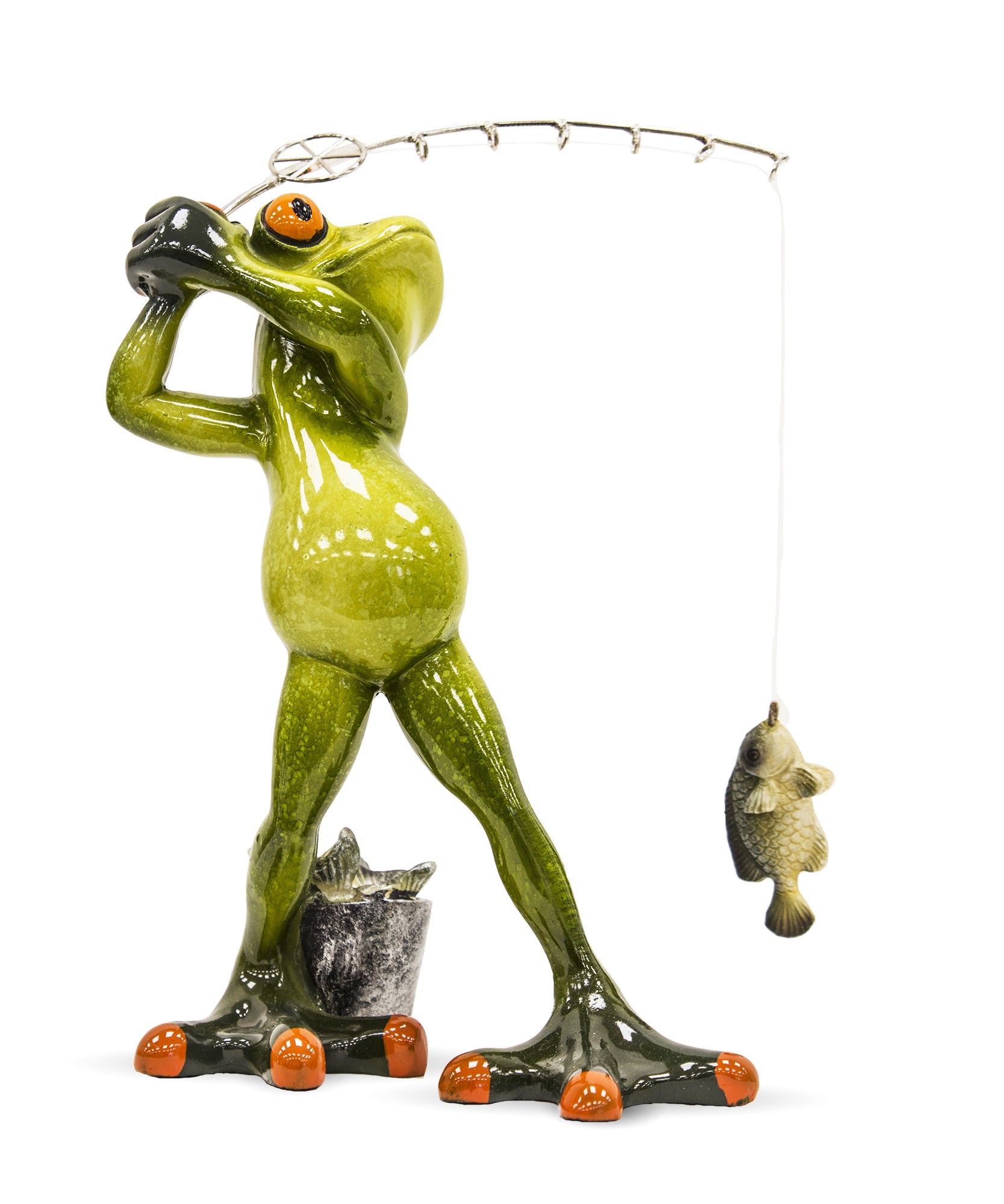 Dzięki dynamicznej pozie, starannie wykonanym detalom i błyszczącemu wykończeniu, figurka przyciąga wzrok i wywołuje uśmiech. Idealna jako prezent dla zapalonego wędkarza, ozdoba domku letniskowego, altany, łazienki lub biurka – wszędzie tam, gdzie liczy się charakter i poczucie humoru.