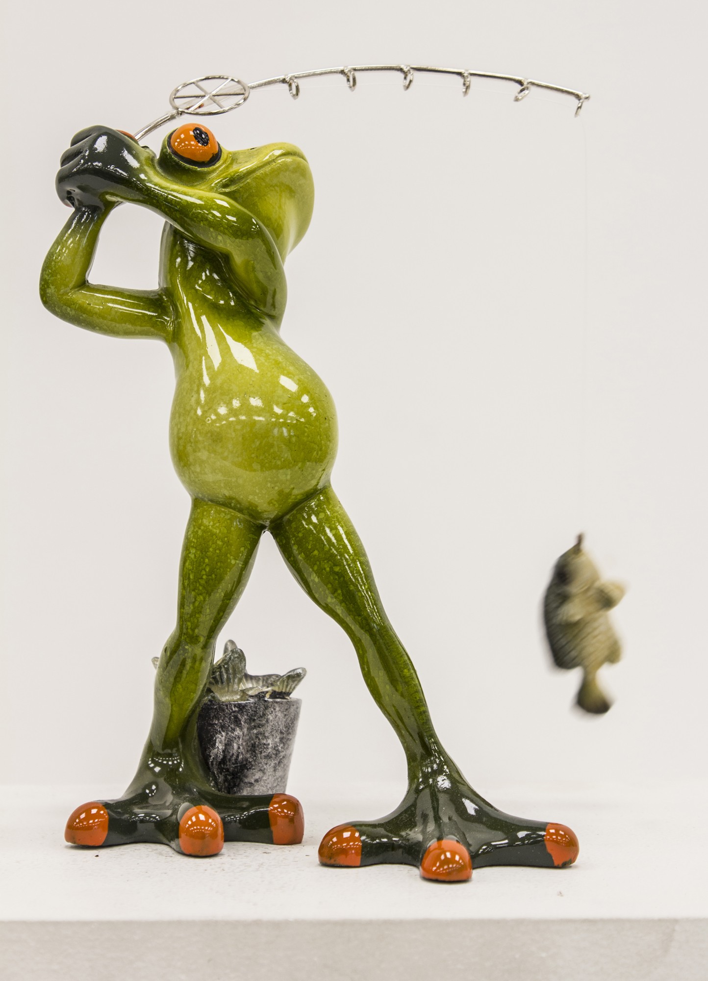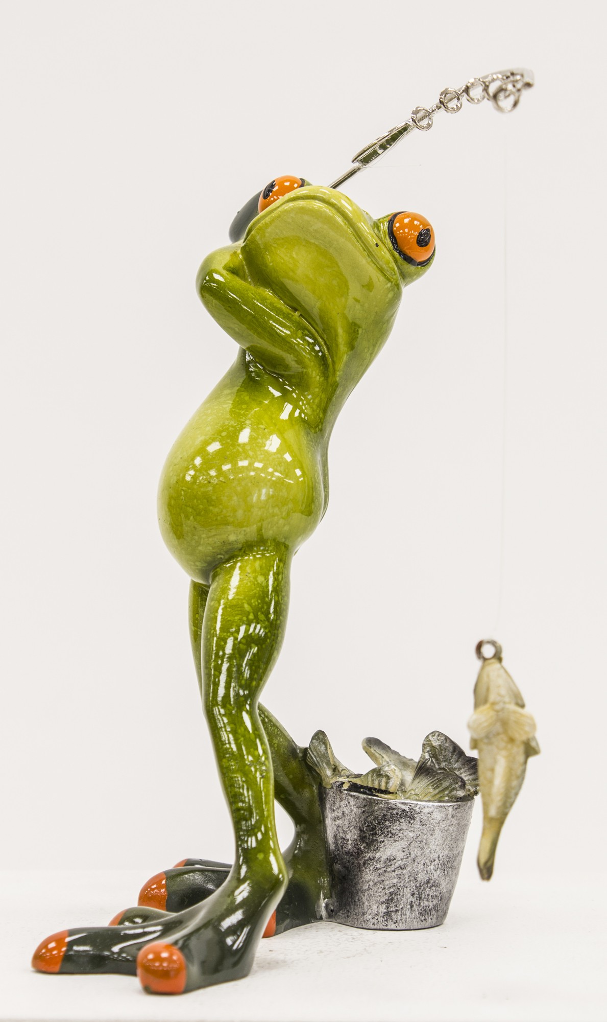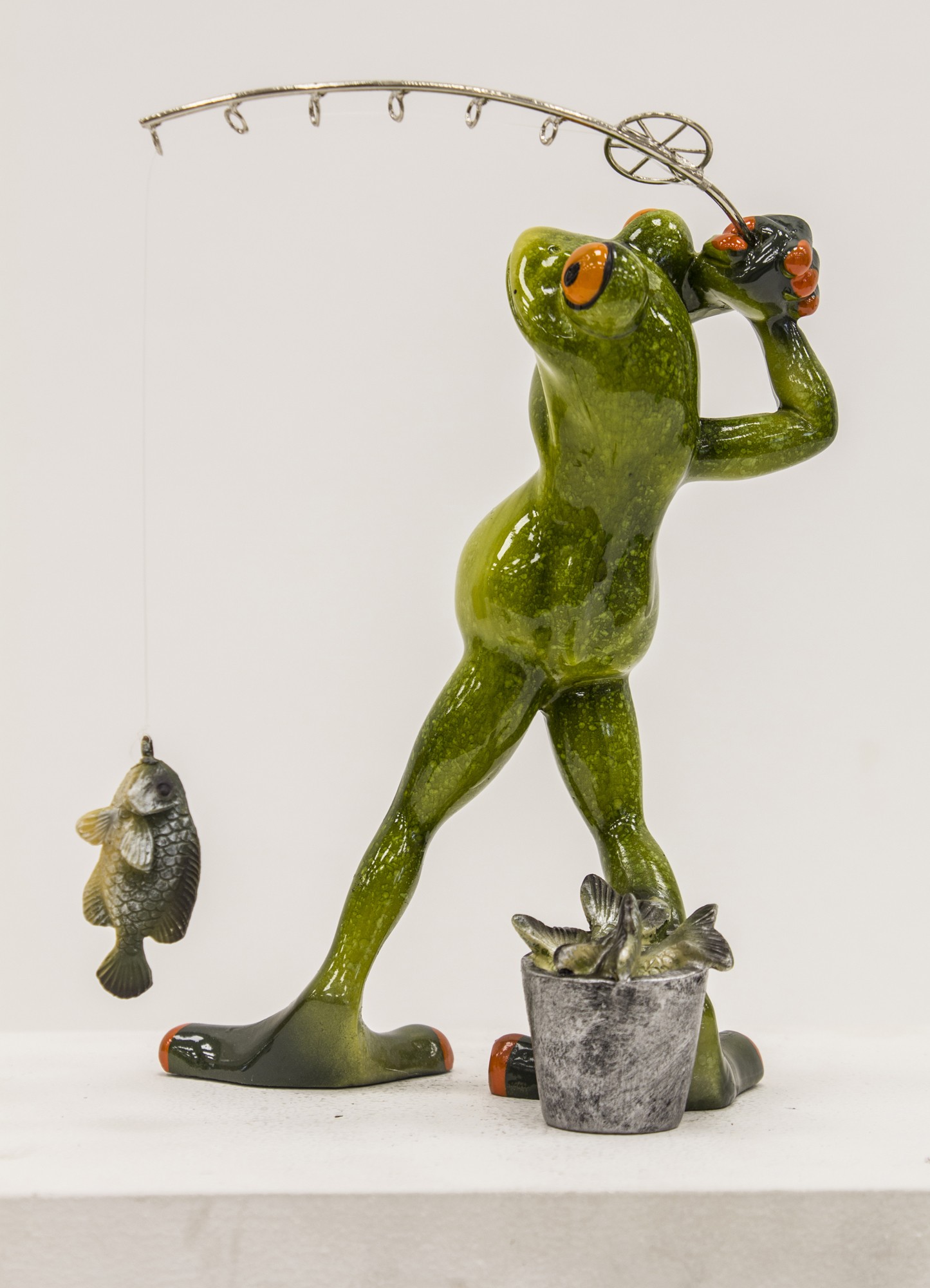 Dzięki dynamicznej pozie, starannie wykonanym detalom i błyszczącemu wykończeniu, figurka przyciąga wzrok i wywołuje uśmiech. Idealna jako prezent dla zapalonego wędkarza, ozdoba domku letniskowego, altany, łazienki lub biurka – wszędzie tam, gdzie liczy się charakter i poczucie humoru.