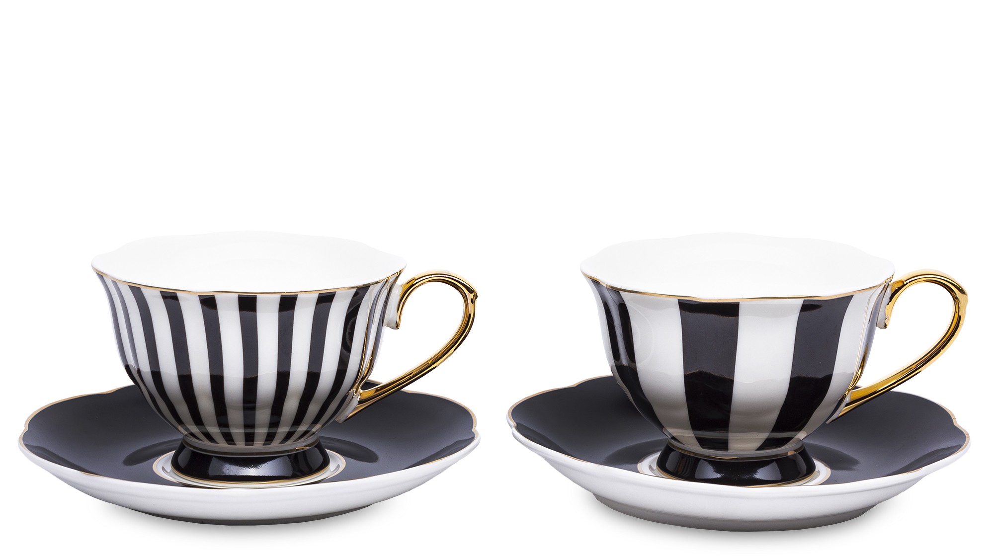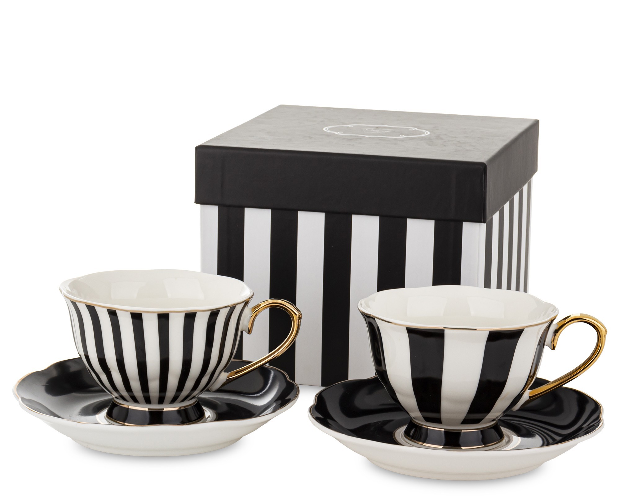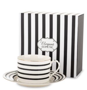 Filiżanka Ze Spodkiem Kpl. 2 Szt. czarno-biała w paski TAZI