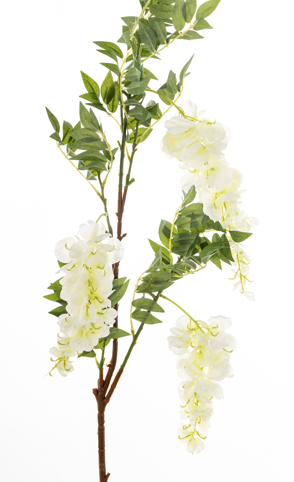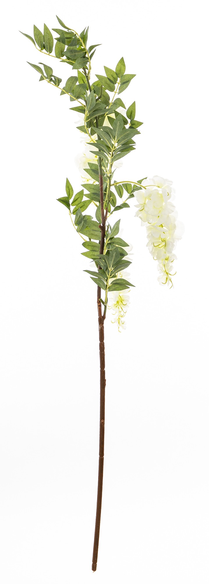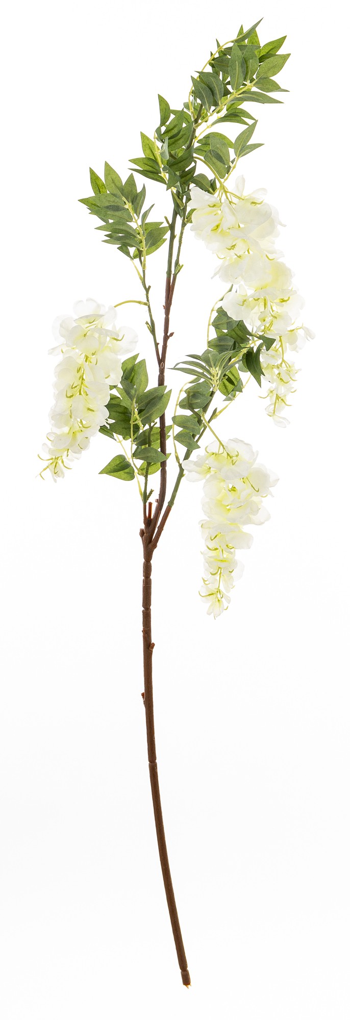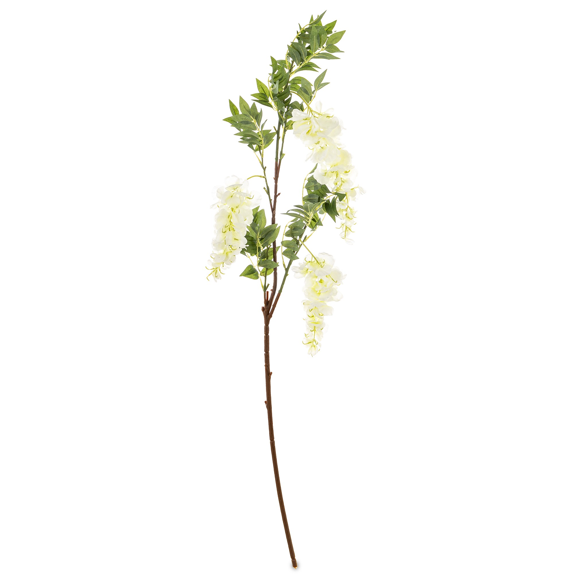 Gałązka WISTERIA BIAŁA – Ożyw Swoje Wnętrze Magią Wiosny. Poczuj powiew świeżego, wiosennego powietrza w swoim domu, niezależnie od pory roku. Gałązka WISTERIA BIAŁA to niezwykła dekoracja, która wnosi do każdego pomieszczenia radość, lekkość i naturalne piękno kwitnących roślin. Ta starannie wykonana gałązka sztucznej glicynii zachwyca realizmem. Długie, kaskadowe kwiatostany w odcieniach bieli, połączone z naturalnie wyglądającymi liśćmi, tworzą harmonijną kompozycję.