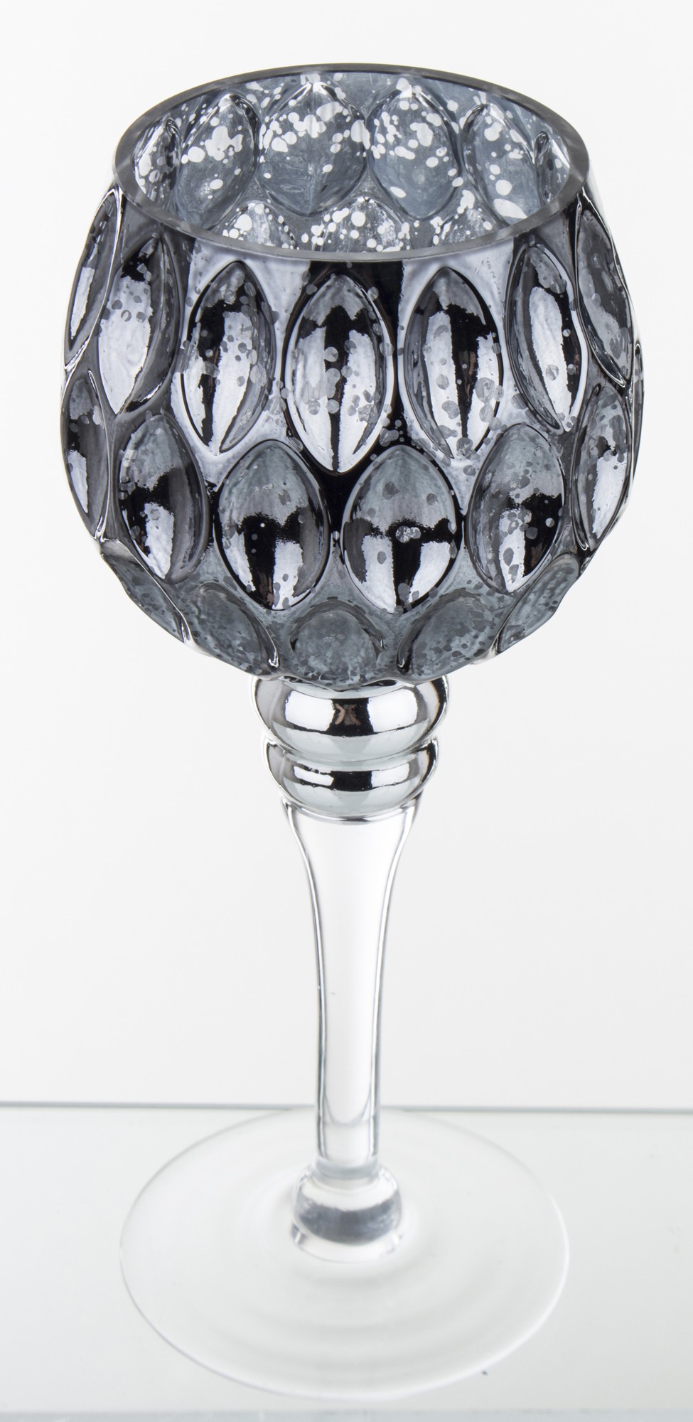 Kielich Grigio to elegancki świecznik o długości 25 cm, wykonany z pięknego szkła w odcieniach szaro-srebrnych. Idealny, by ozdobić Twój stół w domu lub na wyjątkowej imprezie.