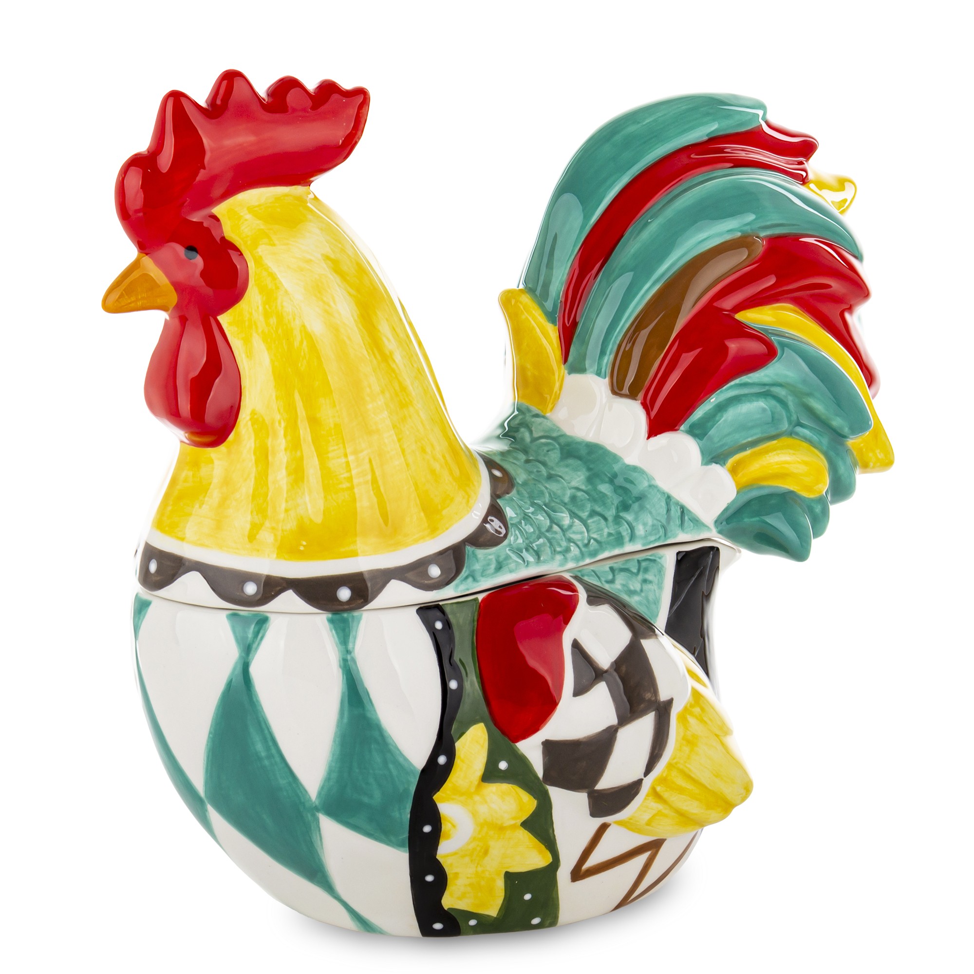 Oferujemy Państwu elegancki, kolorowy ceramiczny kogut z przykrywką, który stanowi doskonały element dekoracyjny do każdego wnętrza. Wykonany z wysokiej jakości ceramiki, ten wyjątkowy produkt łączy w sobie estetykę oraz funkcjonalność. Kogut charakteryzuje się starannym wykonaniem oraz pięknym, żywym kolorem, co sprawia, że stanie się on doskonałym dodatkiem do stołu, kredensu czy kuchennej półki.
