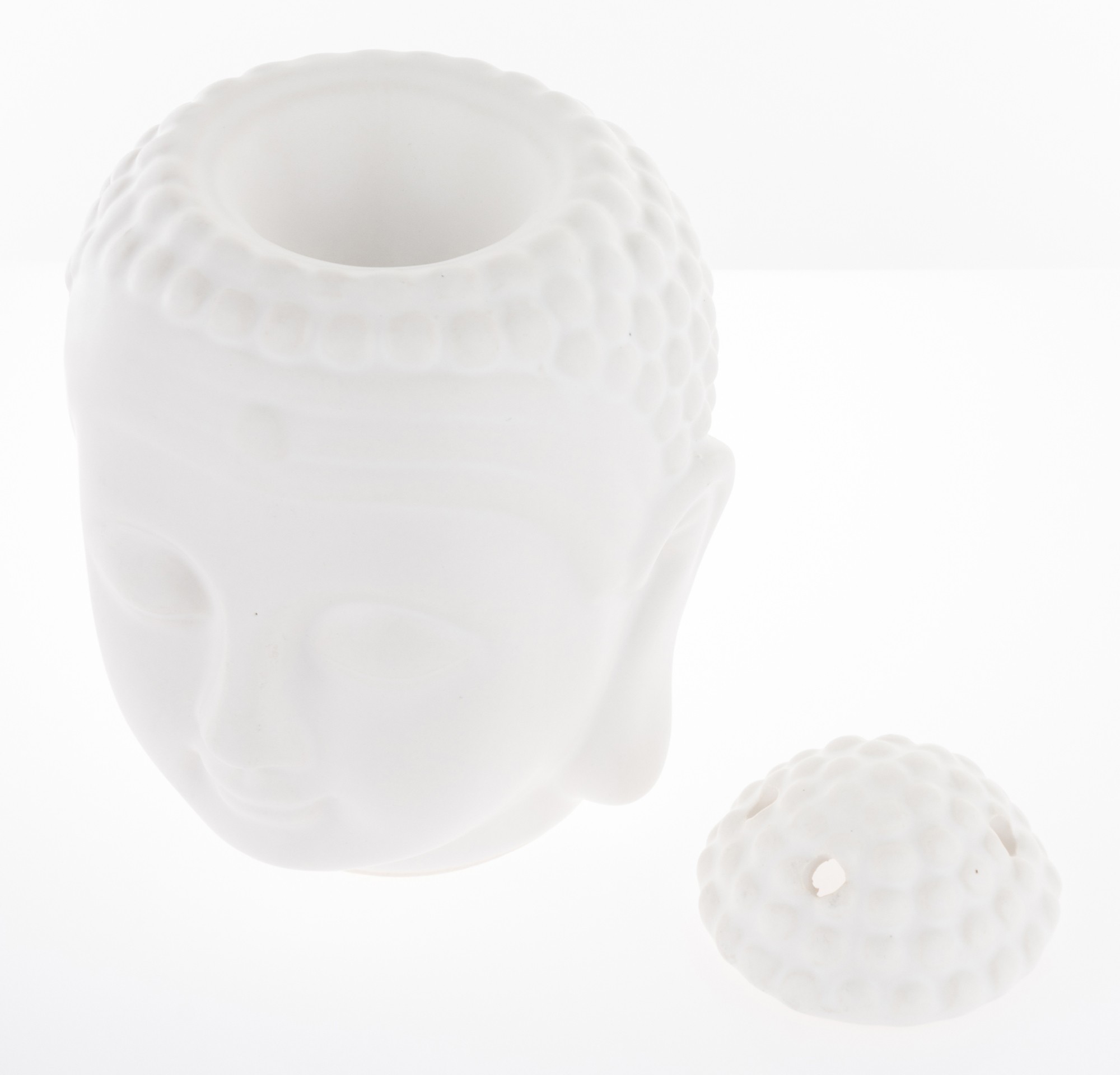 Kominek zapachowy Budda II ceramiczny biały to wyjątkowa kombinacja funkcjonalności i estetyki. Ten piękny kominek, wykonany z białej ceramiki w formie postaci Buddy, jest zarówno elementem dekoracyjnym, jak i narzędziem do tworzenia relaksującej atmosfery. Budda, jako symbol spokoju i harmonii, doskonale oddaje charakter tego kominka. Kominek ten posiada otwierane uszy, za którymi znajduje się przestrzeń na świeczkę typu tealight. Po umieszczeniu świecy i jej zapaleniu, kominek zaczyna pełnić rolę aromaterapii. Delikatny i relaksujący zapach wypełnia pomieszczenie, tworząc atmosferę spokoju i odprężenia.