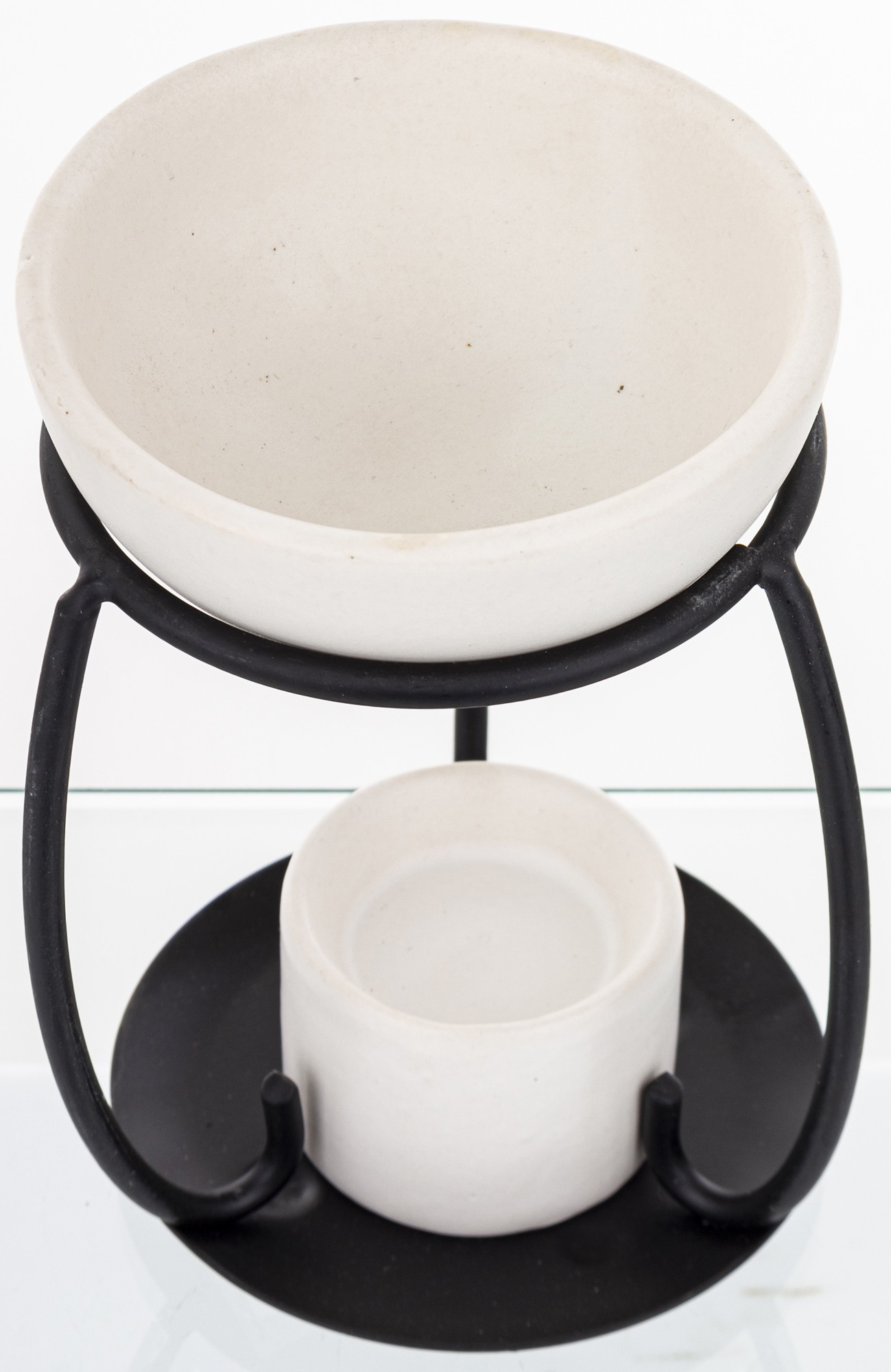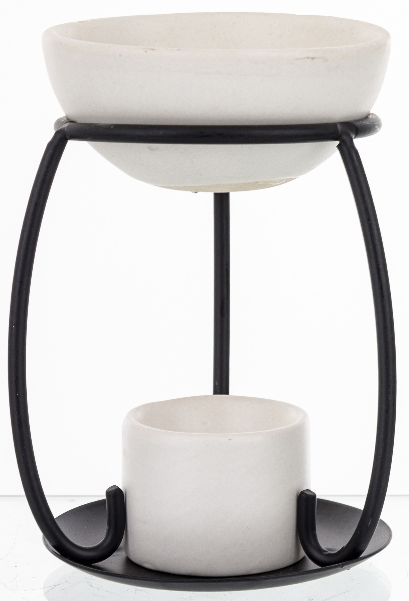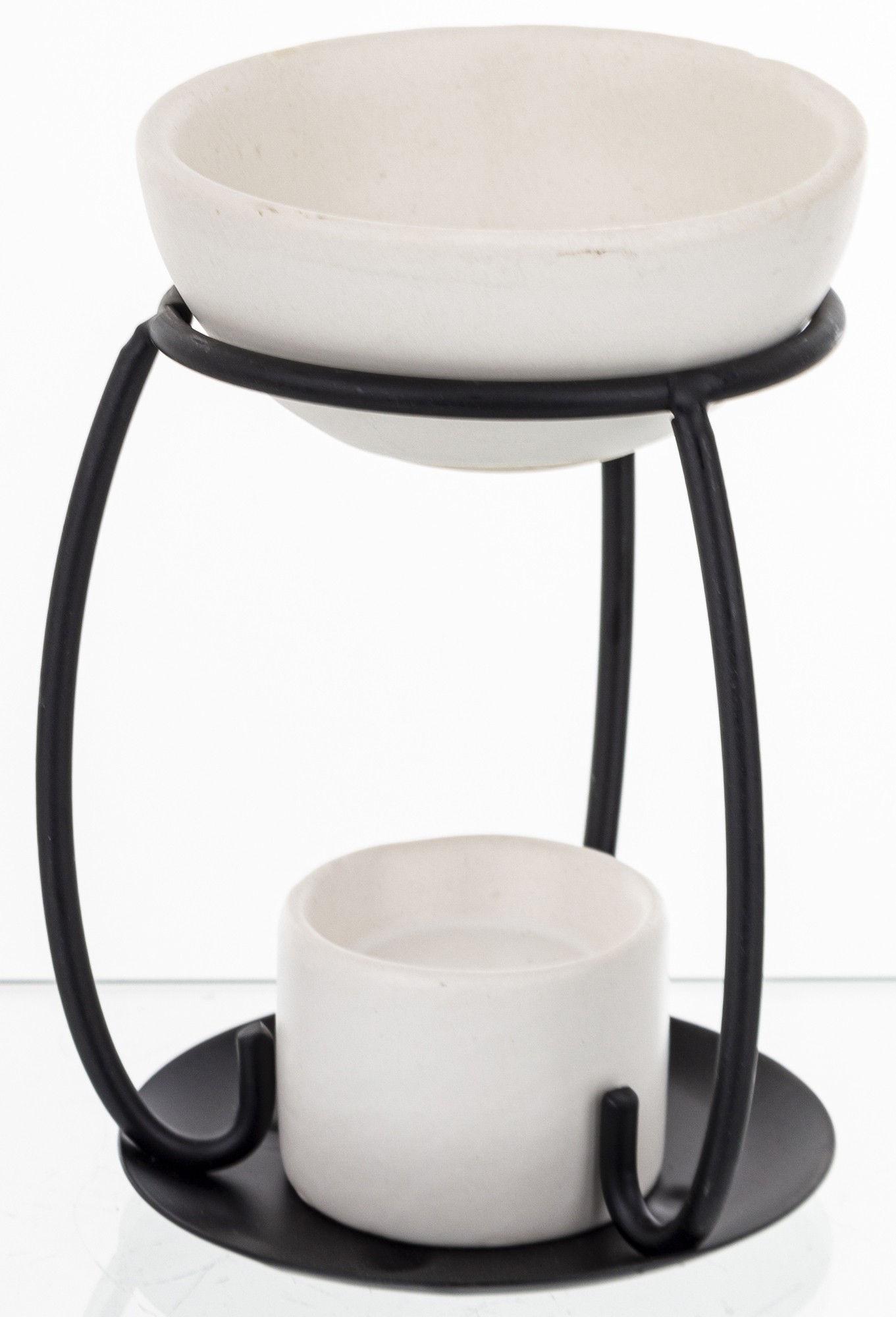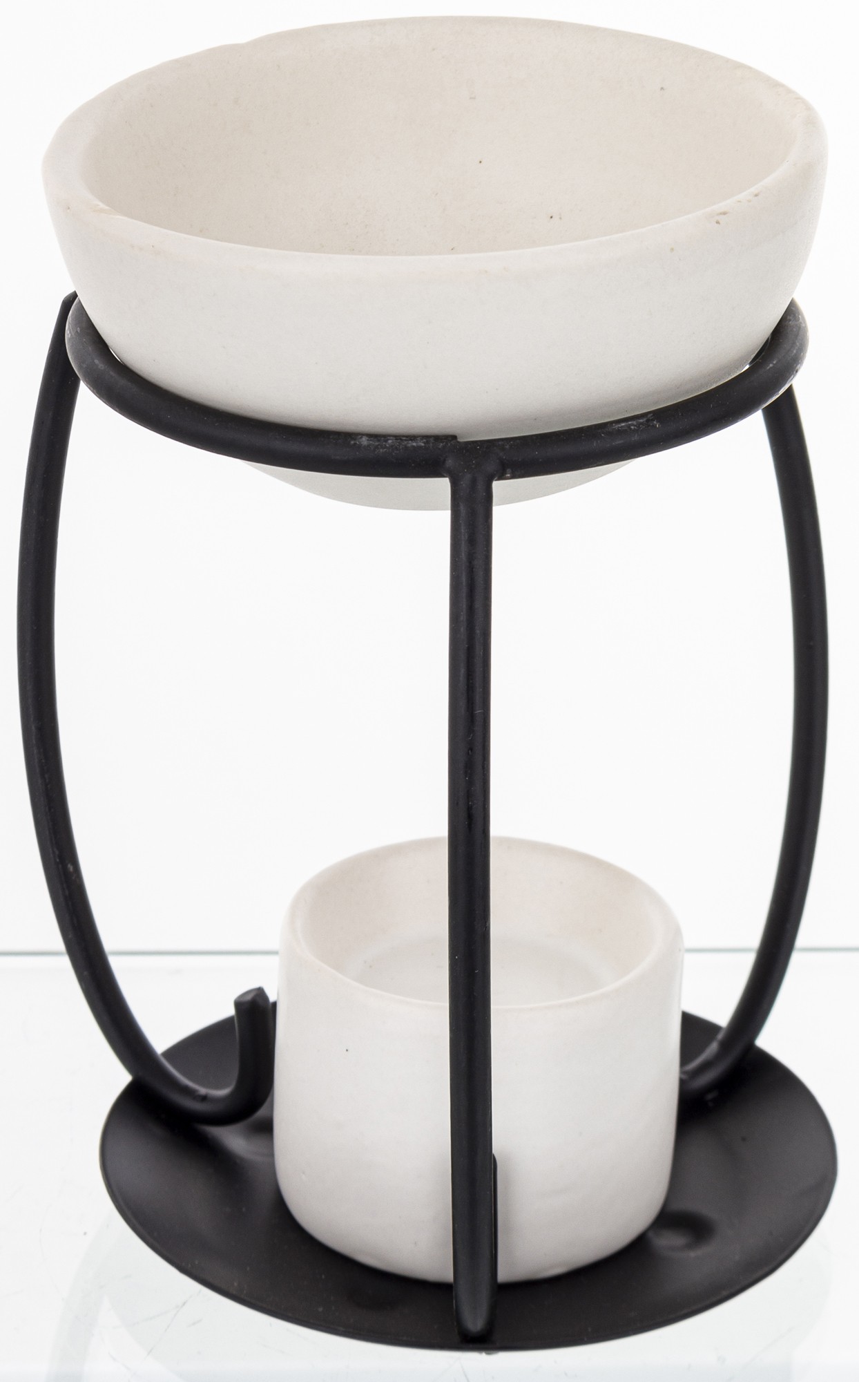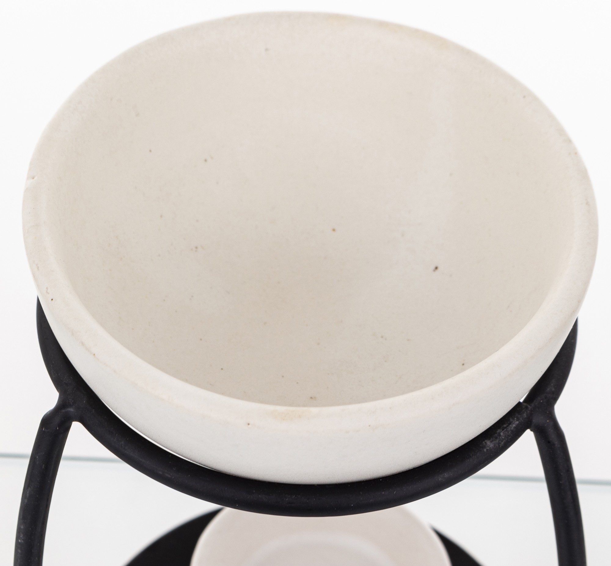 Kominek zapachowy Lilla ceramiczny to wyjątkowy element dekoracyjny, który wnosi urok i elegancję do Twojego wnętrza. Wykonany z białej ceramiki i osadzony na stylowym czarnym stelażu, ten kominek łączy w sobie funkcjonalność i estetykę. Jedną z głównych cech tego kominka jest jego wielofunkcyjność. Wewnątrz kominka znajduje się miejsce na świeczkę typu tealight. Gdy zapalisz świeczkę, kominek zaczyna rozprzestrzeniać delikatny zapach, który tworzy atmosferę spokoju i relaksu.
