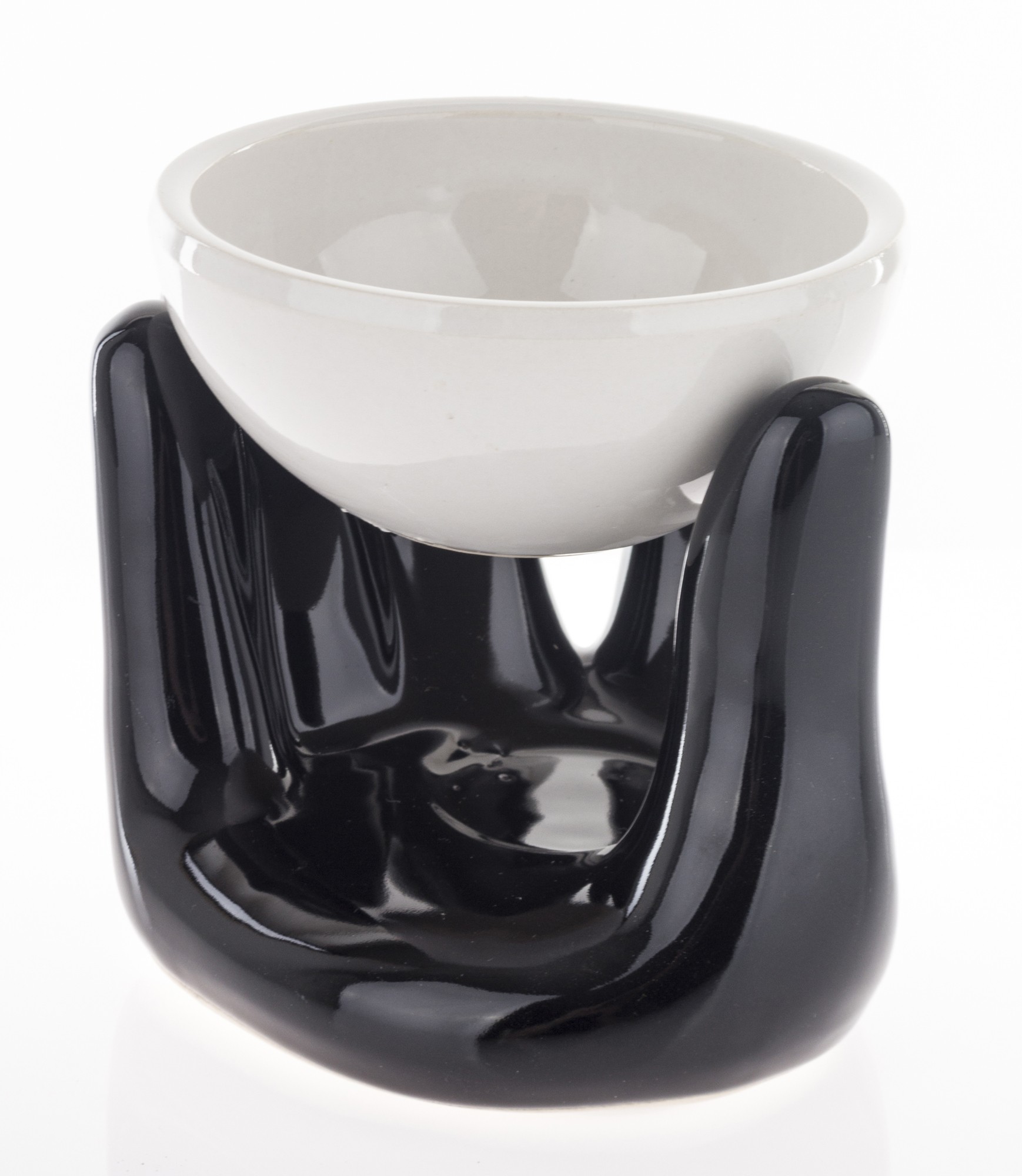 Kominek zapachowy Mano ceramiczny czarno-biały to wyjątkowy element dekoracyjny, który wnosi do Twojego wnętrza zarówno elegancję, jak i relaksujący aromat. Wykonany z ceramiki, kominek ten przedstawia pięknie ukształtowaną dłoń w kolorze czarnym, trzymającą pojemnik na olejek lub świeczkę zapachową w intensywnym odcieniu białym. Ten kominek łączy w sobie funkcję zapachową i estetyczną. Po umieszczeniu olejku zapachowego lub zapaleniu świeczki typu tealight w pojemniku, kominek zaczyna rozprzestrzeniać relaksujący aromat, który tworzy atmosferę spokoju i odprężenia. To idealne rozwiązanie po długim dniu, kiedy chcesz stworzyć sobie chwilę relaksu.