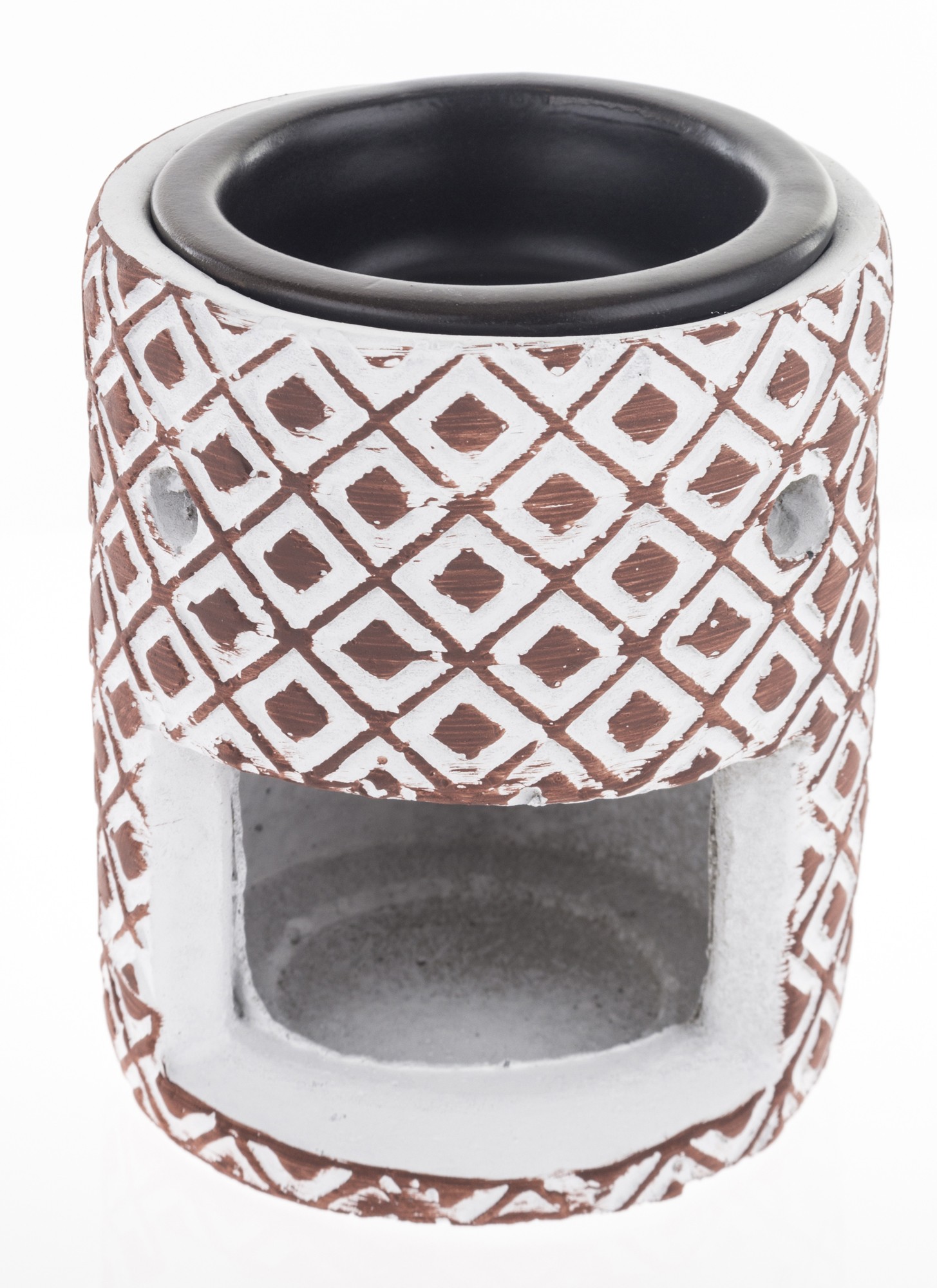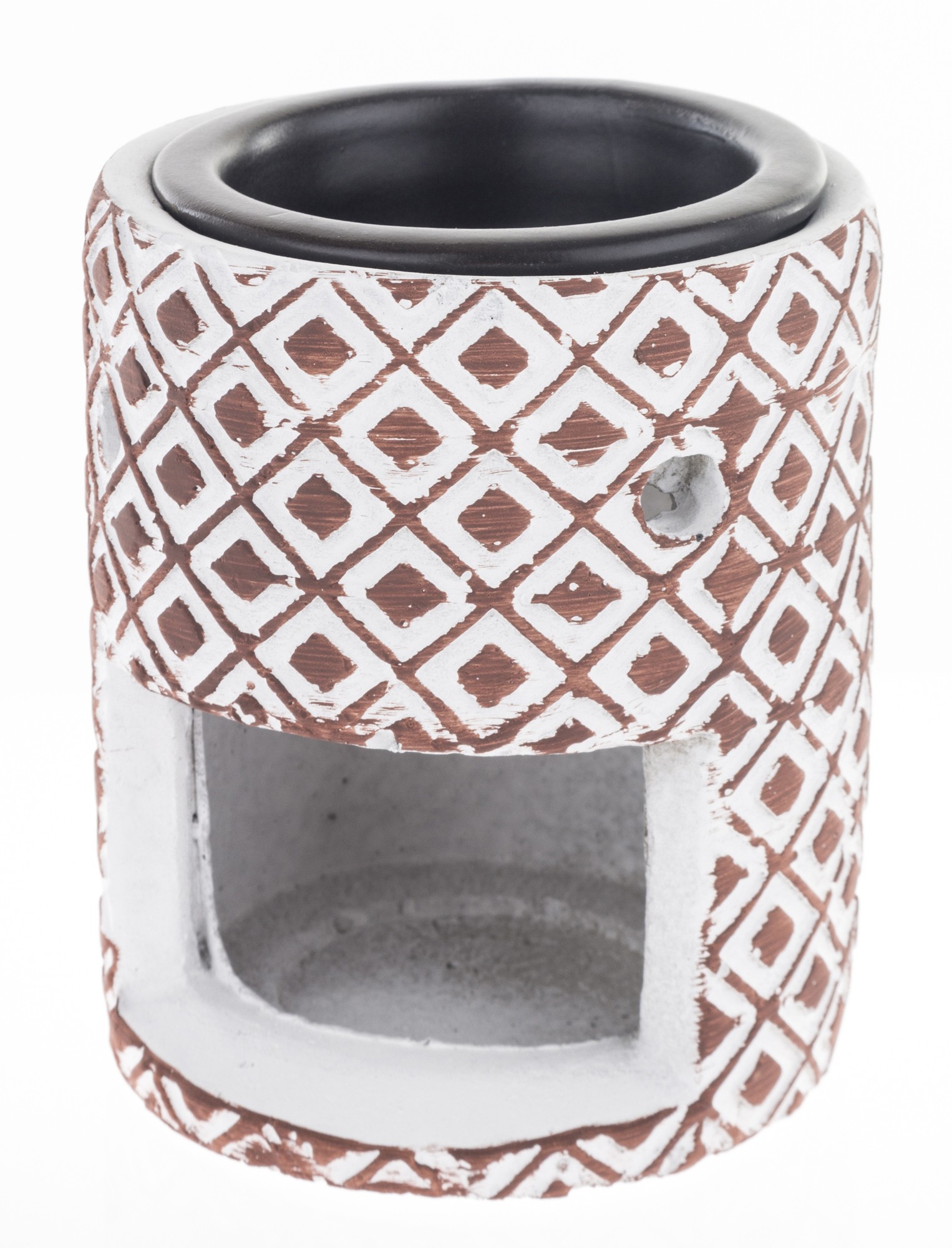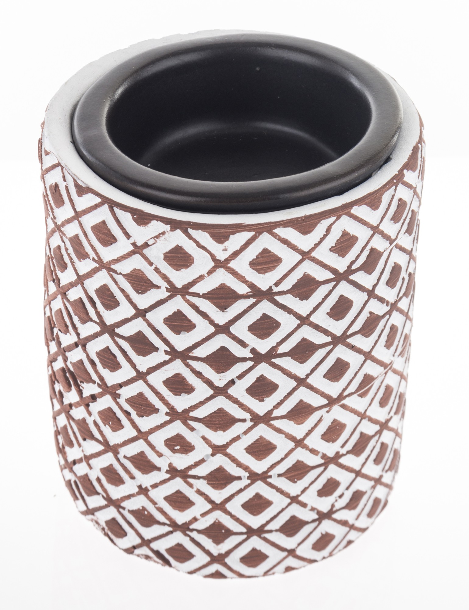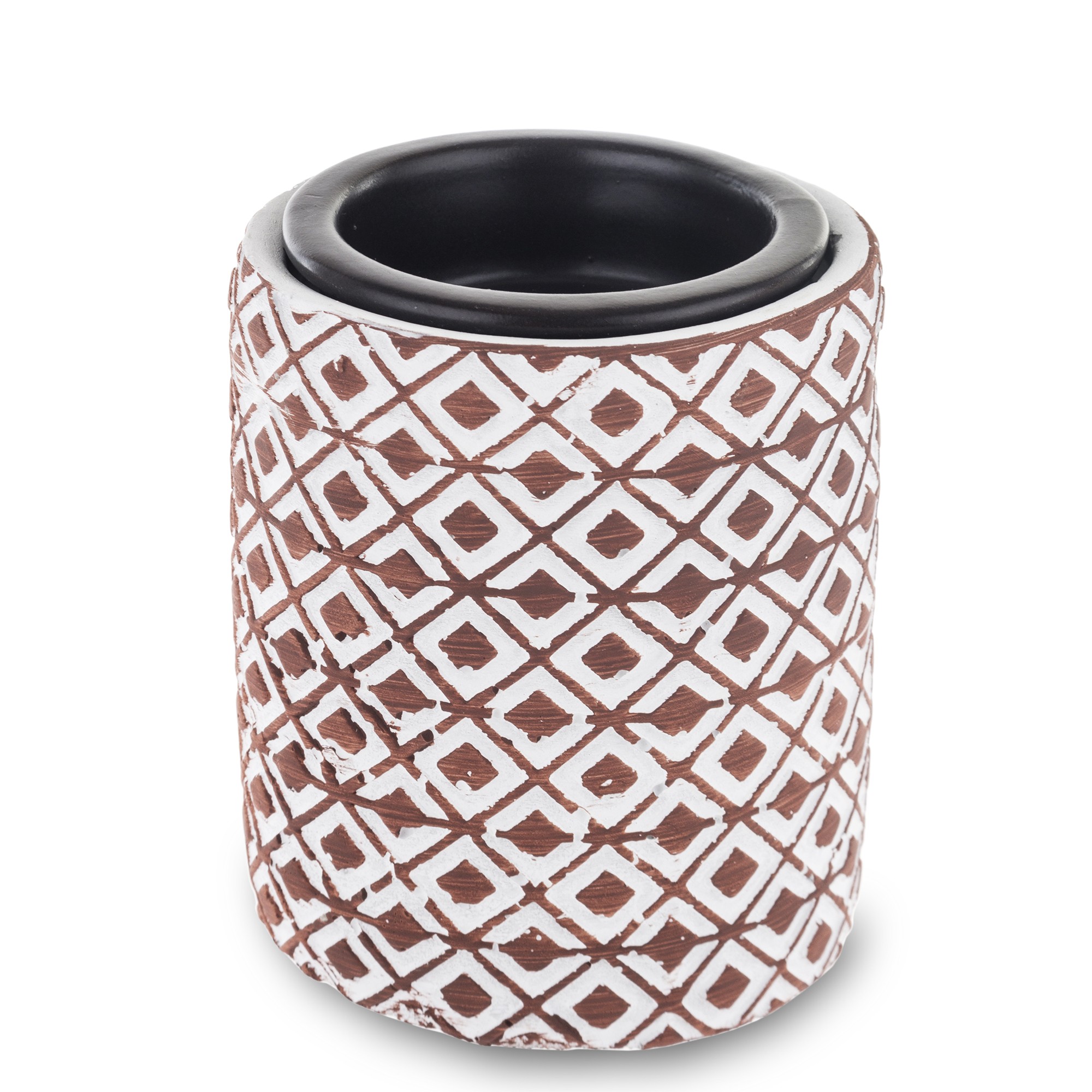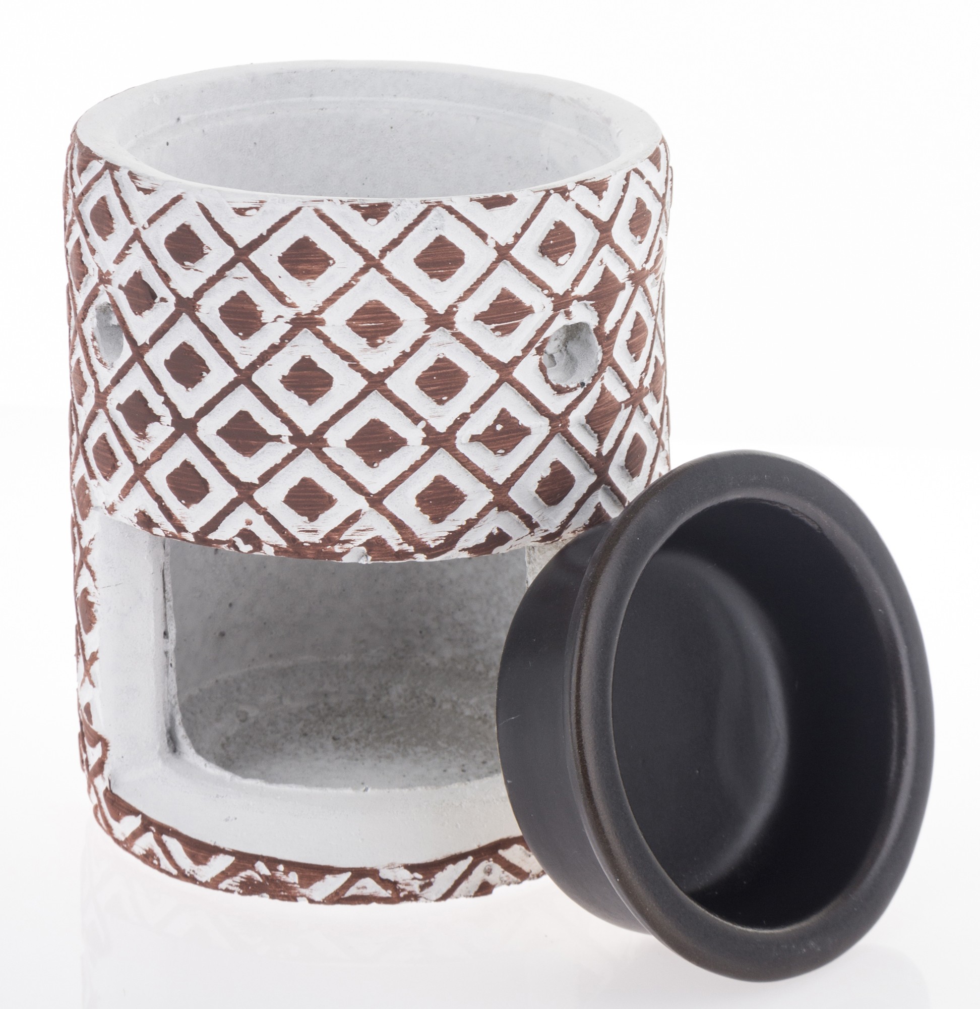 Kominek zapachowy Salva II ceramiczny to wyjątkowy element dekoracyjny, który wnosi do Twojego wnętrza zarówno styl, jak i aromatyczny relaks. Wykonany z ceramiki w kolorze białym z geometrycznymi brązowymi wzorkami, ten kominek stanowi harmonijną połączenie elegancji i funkcjonalności. Jednym z kluczowych atutów tego kominka jest jego zdolność do tworzenia przyjemnego zapachu. Wewnątrz kominka znajduje się miejsce na świeczkę typu tealight. Po jej zapaleniu, kominek zaczyna rozprzestrzeniać delikatny, relaksujący aromat, co tworzy atmosferę spokoju i odprężenia.