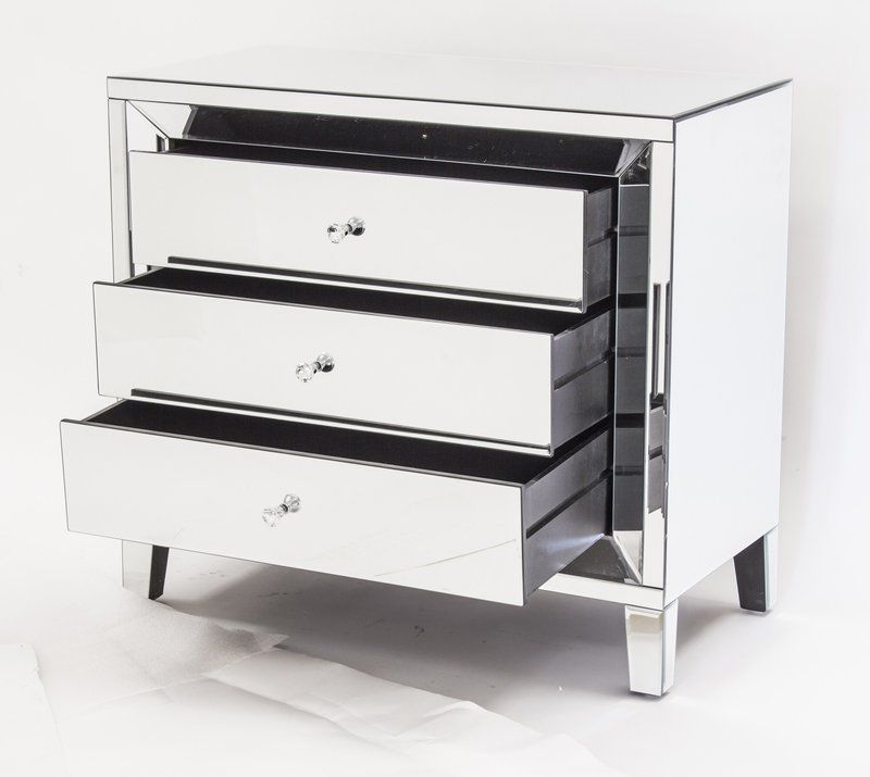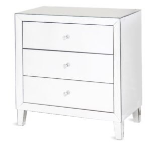 Komoda Moico to elegancka i nowoczesna szklana komoda, która dodaje przestrzeni luksusowy wygląd. Wyposażona w trzy szuflady na prowadnicach, zapewnia wystarczającą przestrzeń do przechowywania.