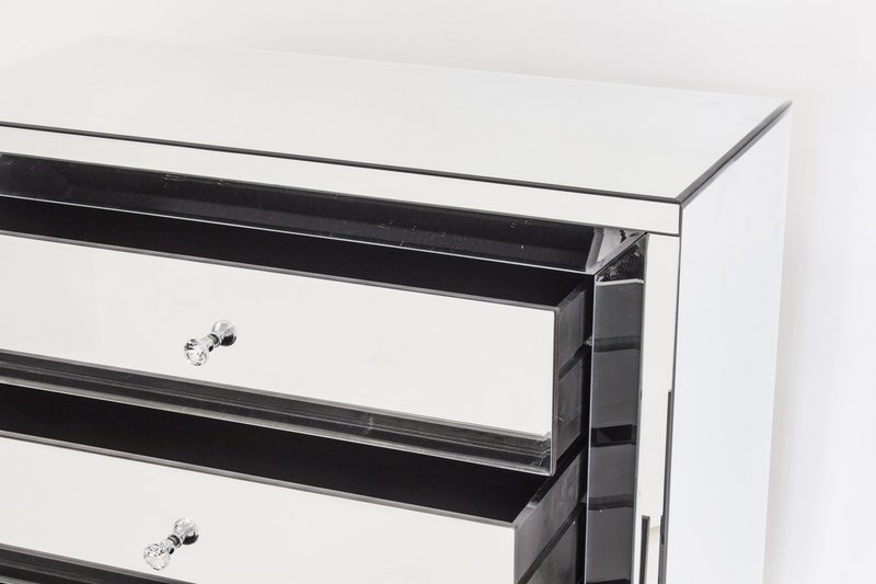 Jeśli szukasz komody, która dodaje przestrzeni luksusowy wygląd, to komoda Moico jest właśnie dla Ciebie. Wykonana z połączenia szkła i MDF w kolorze srebrnym, ta nowoczesna komoda idealnie wpasuje się w każde eleganckie wnętrze. Komoda Moico posiada trzy szuflady na prowadnicach, które umożliwiają łatwe otwieranie i zamykanie. Dzięki wystarczającej przestrzeni wewnątrz szuflad, łatwo przechowasz różne przedmioty, bez konieczności dodatkowego bałaganu. Komoda Moico to doskonały wybór dla tych, którzy cenią sobie nowoczesny styl oraz funkcjonalność.