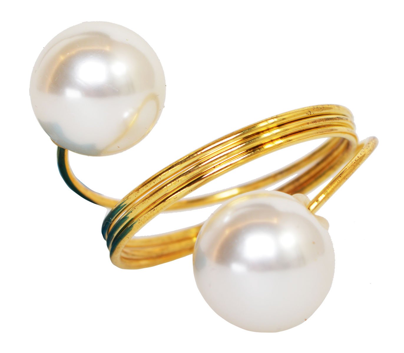 Ten zestaw czterech serwetników to idealny sposób, aby dodać nakryciu stołu subtelnego blasku i wyrafinowania. Każdy serwetnik wykonany jest z metalicznej, złotej obrączki o spiralnym kształcie, zakończonej dwiema dekoracyjnymi perłami. Połączenie złota i perłowej bieli tworzy ponadczasowy, biżuteryjny efekt, który pięknie prezentuje się zarówno w codziennych, jak i uroczystych aranżacjach.