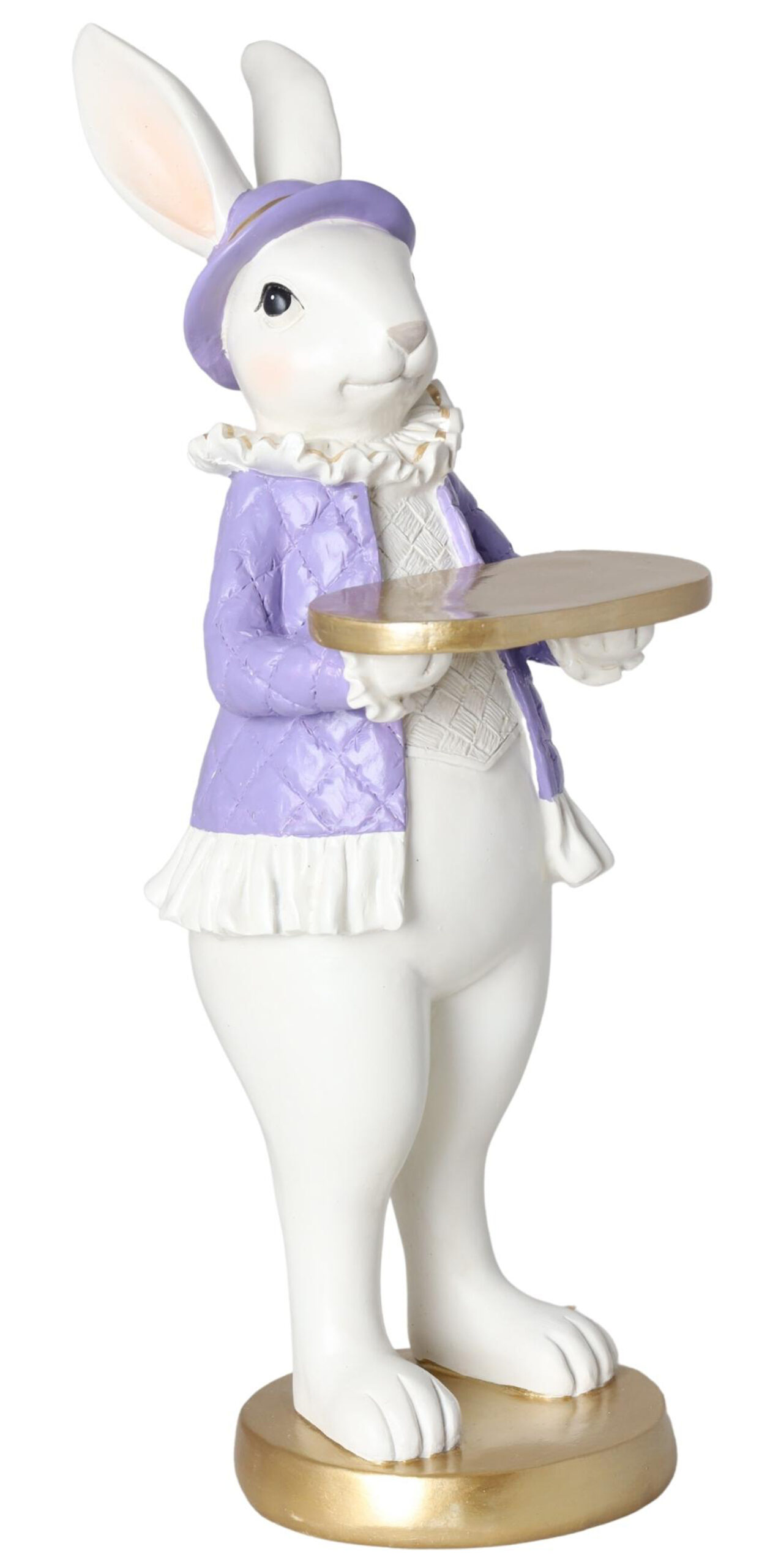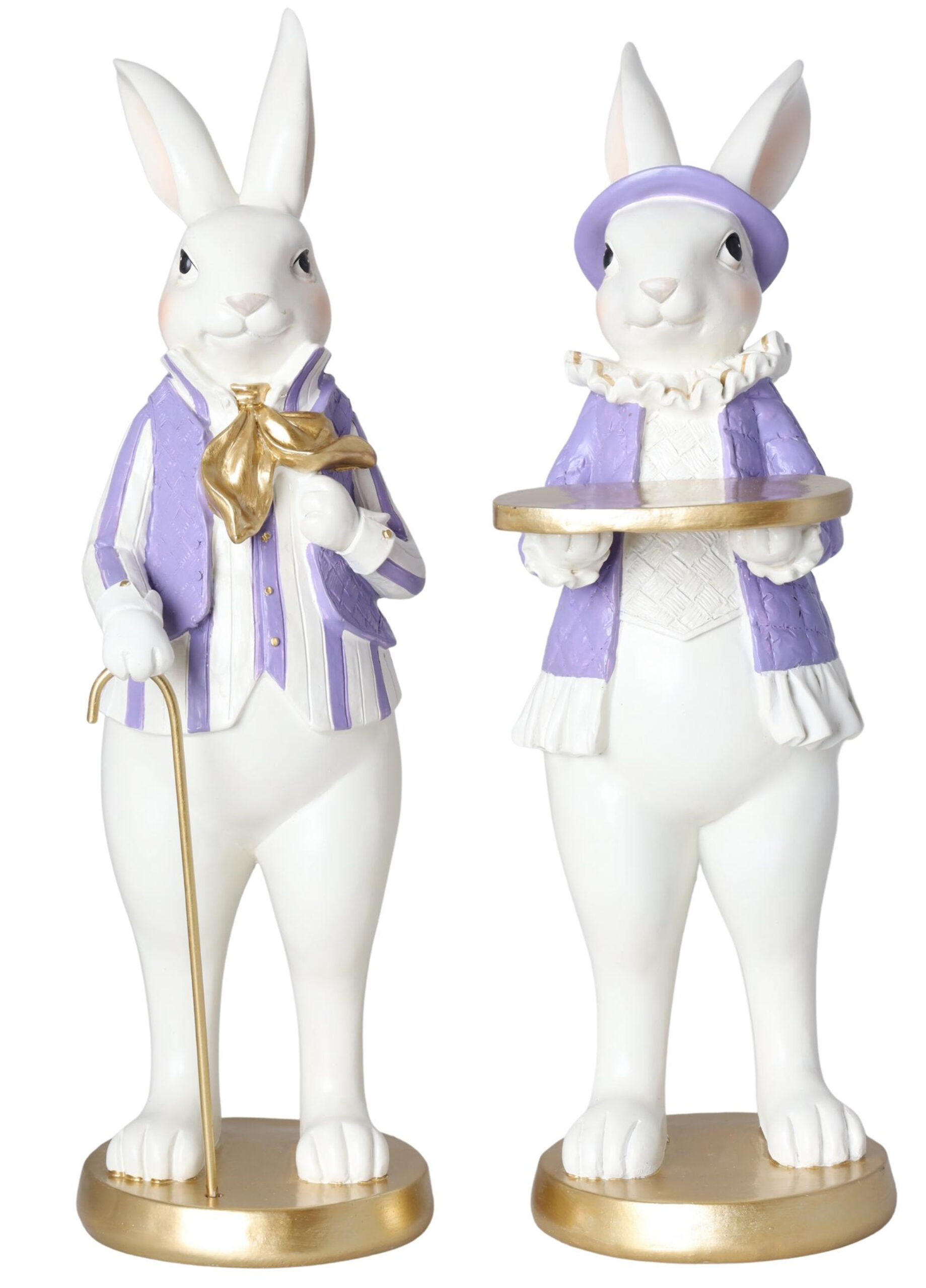 Komplet królik stojący lawendowo-złoty to wyjątkowa dekoracja, która wprowadza do wnętrza elegancję i wyrafinowanie podczas świąt wielkanocnych. Te urocze króliki wykonane z poliresingu są prawdziwym dziełem sztuki, łącząc w sobie delikatność lawendowego odcienia z subtelnym blaskiem złotych akcentów.