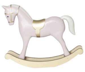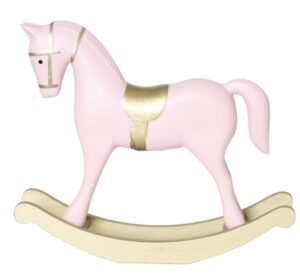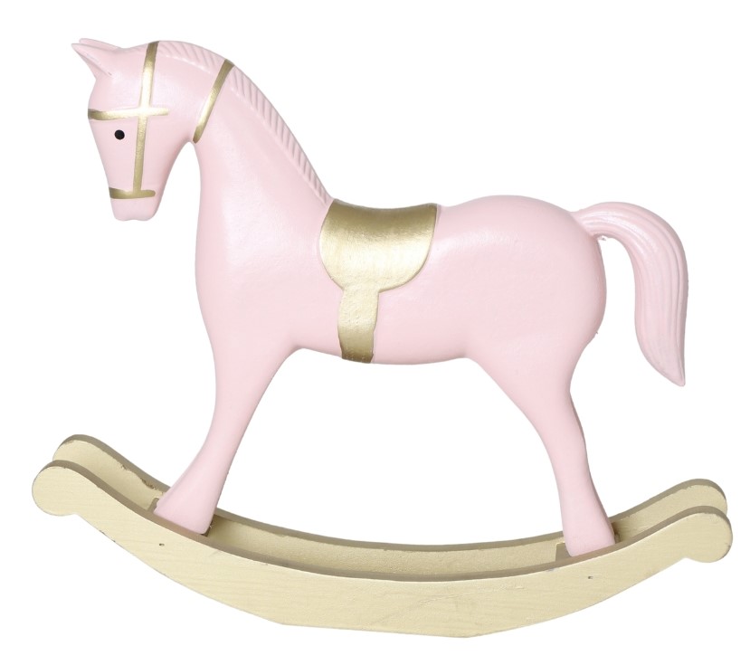 Koń na biegunach drewniany różowy APAL duży to urokliwa dekoracja w formie klasycznego konika na biegunach, wykonana z drewna i wykończona w pastelowym różu ze złotymi detalami. Idealna do świątecznych aranżacji — wprowadza ciepło, nostalgię i odrobinę bajkowego uroku do każdego wnętrza.