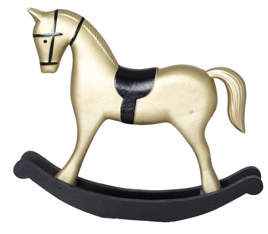Koń na biegunach drewniany złoty BALO duży– klasyczna dekoracja z duszą.