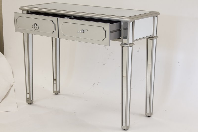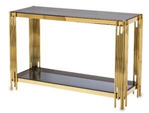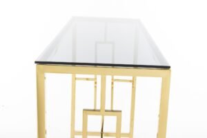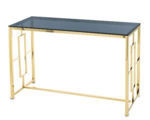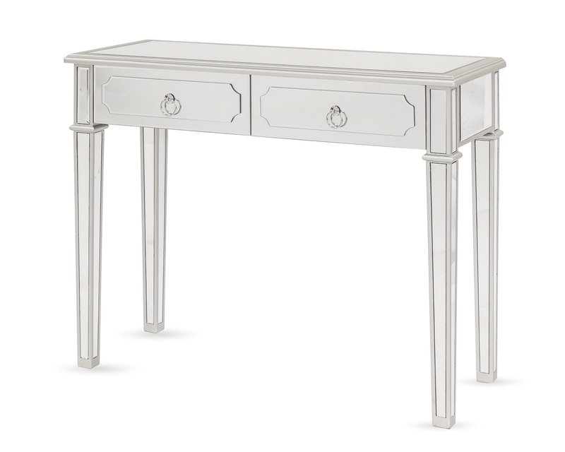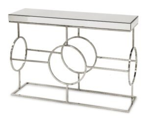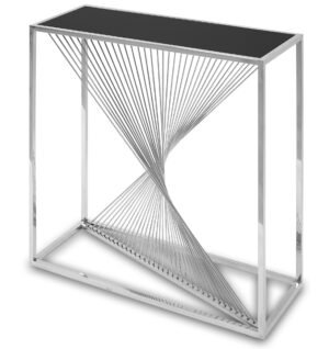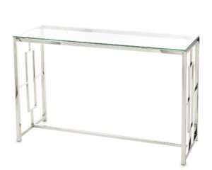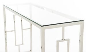 Konsola szklana Ballanti srebrna – stylowy mebel nowoczesny glamour. Wykonana ze szkła i MDF w kolorze srebrnym. Doskonale sprawdzi się w eleganckim salonie.