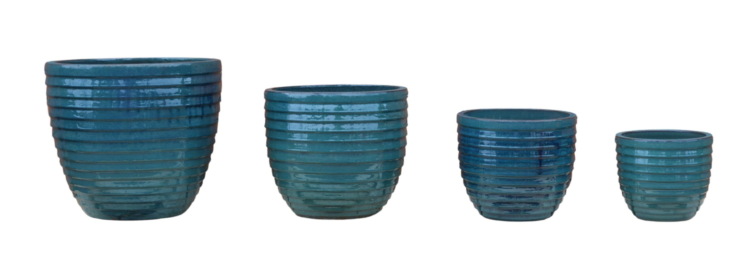 Kpl. 4 donic ceramicznych SHADOW turkusowych to wyjątkowy zestaw donic, które łączą minimalistyczną formę z efektownym, artystycznym wykończeniem. Każda donica zachwyca intensywnym, nasyconym odcieniem turkusu, który w świetle zyskuje subtelny połysk, podkreślając ich elegancki i nowoczesny charakter. Poziome żłobienia nadają powierzchni wyrazistą strukturę, dzięki czemu donice prezentują się stylowo i ponadczasowo.